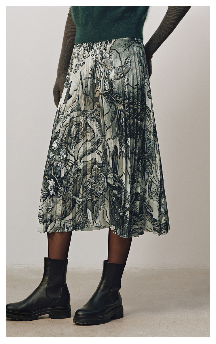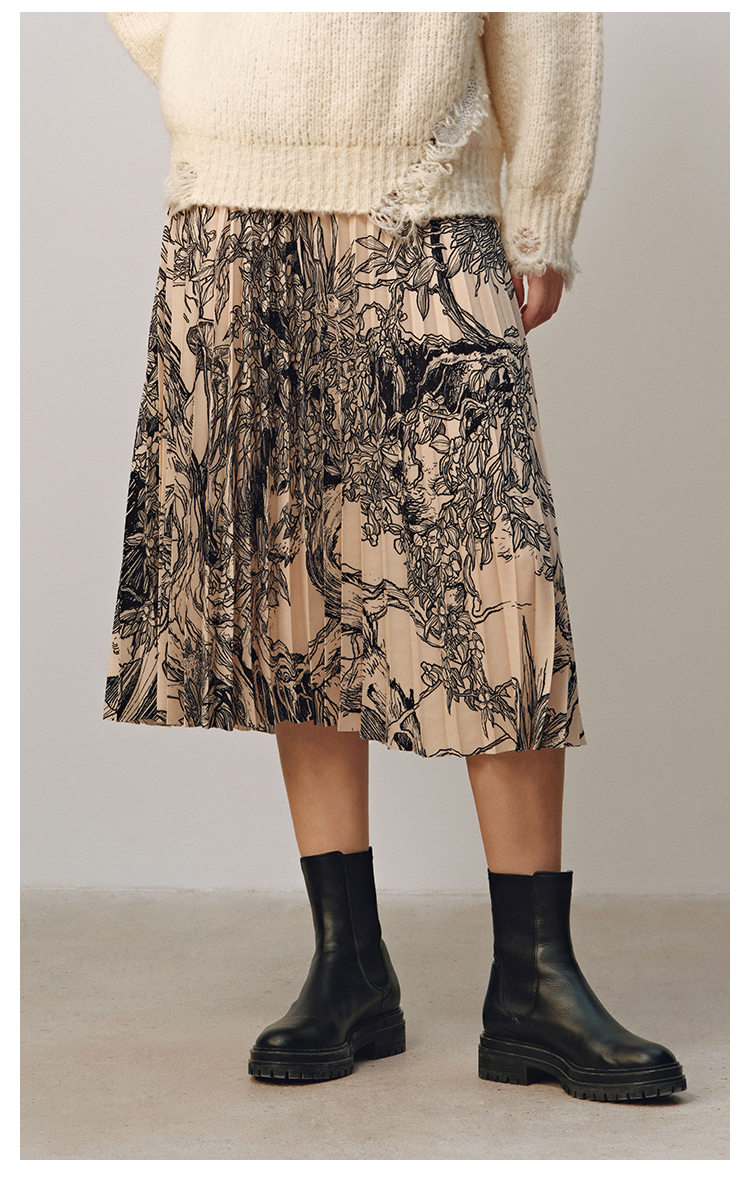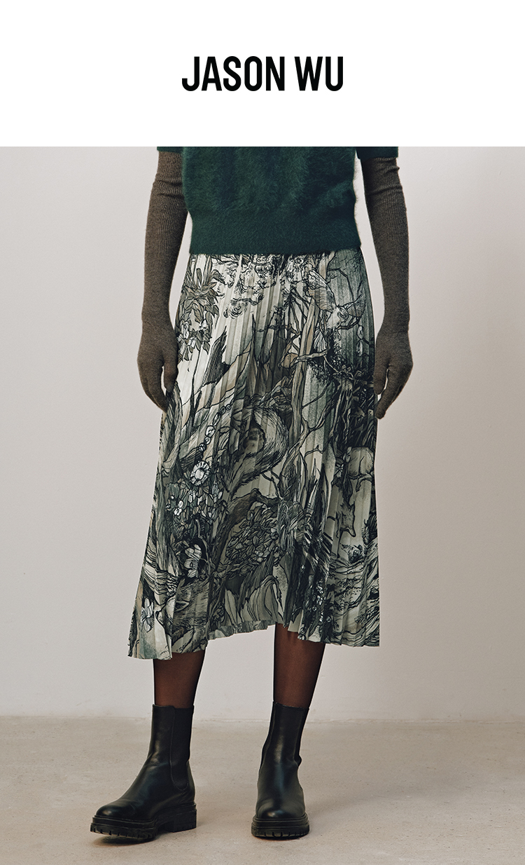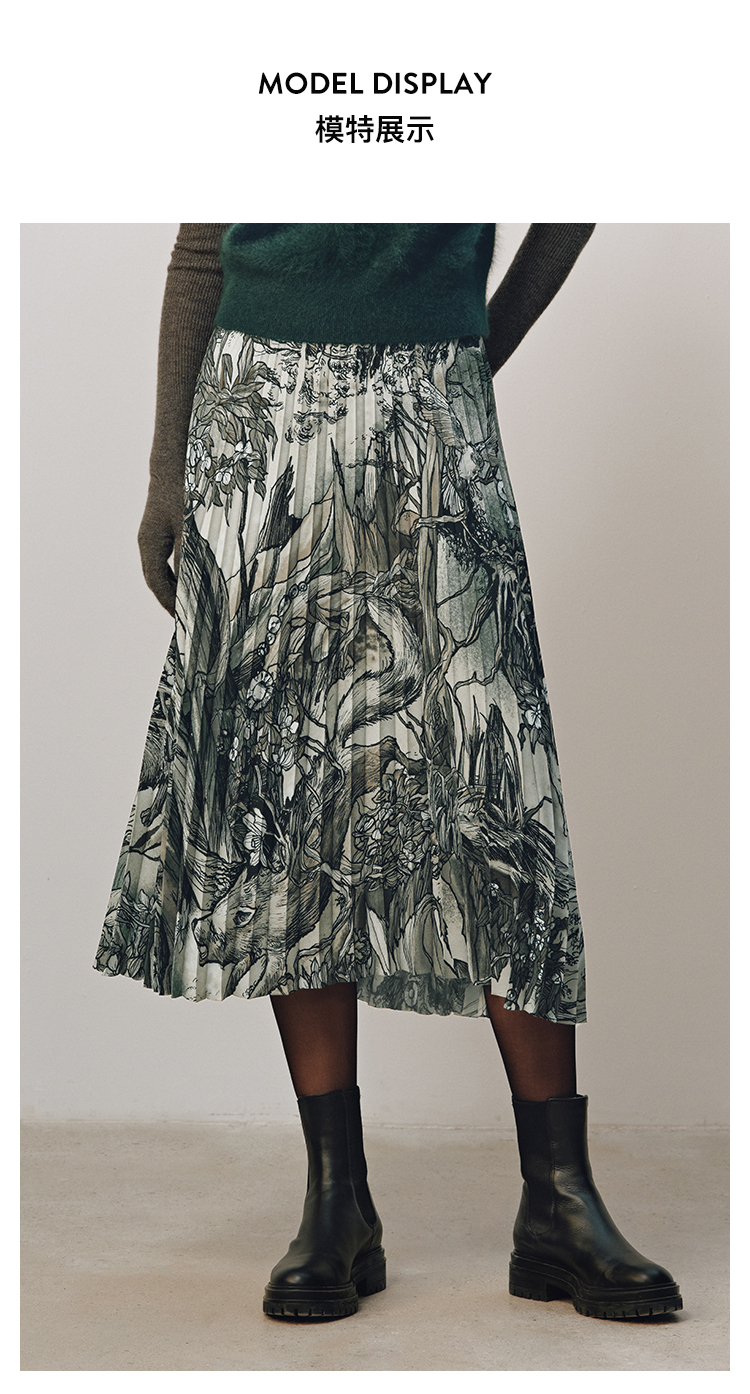 【JASON WU】(多色)夏季新款森林童话印花通勤百搭简约裙子半身裙百褶裙