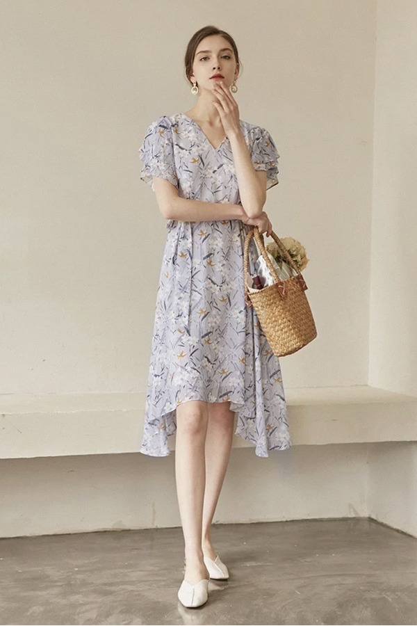 SINGLY 印花V领雪纺连衣裙 1173