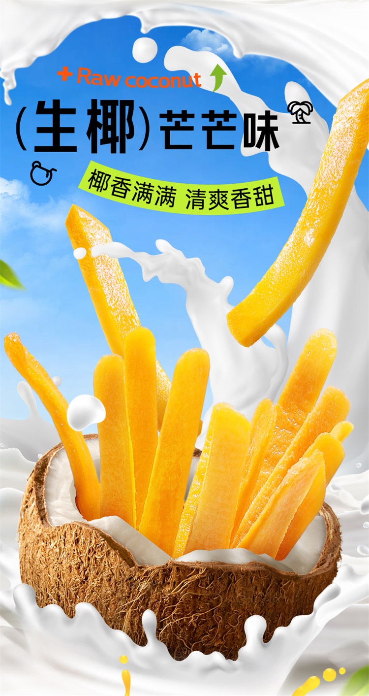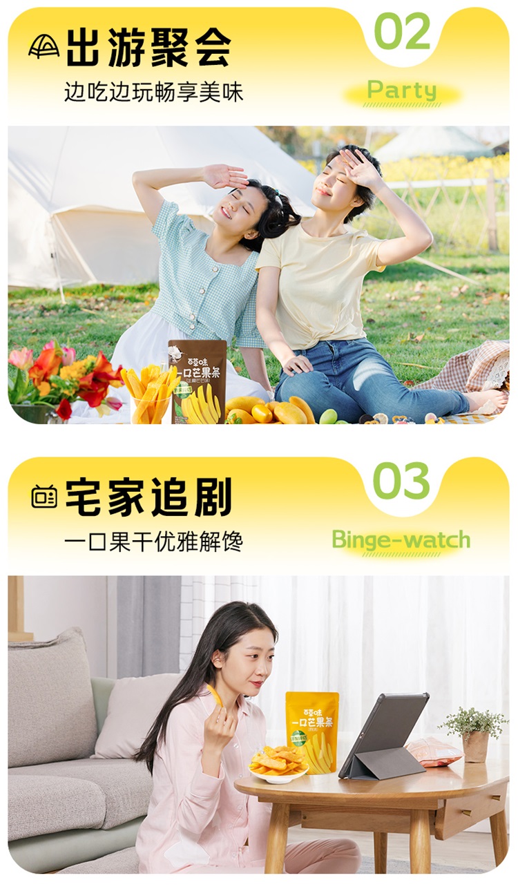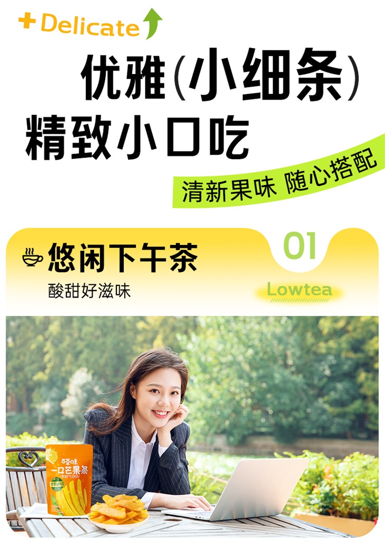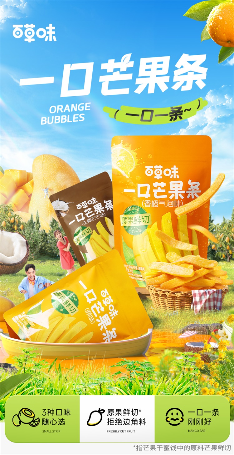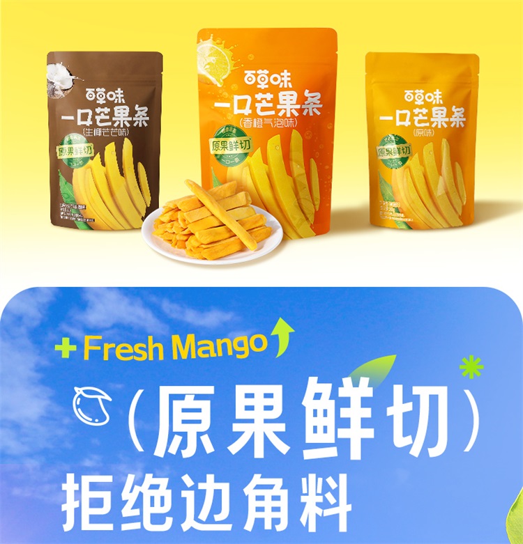 【满299减210】百草味一口芒果条80g(多口味)原果鲜切 一口一条 三种口味