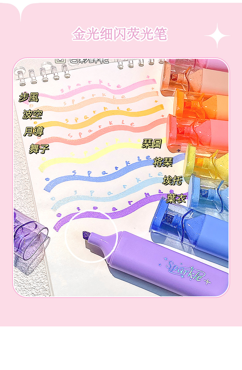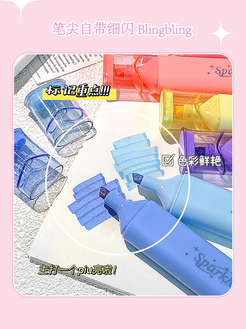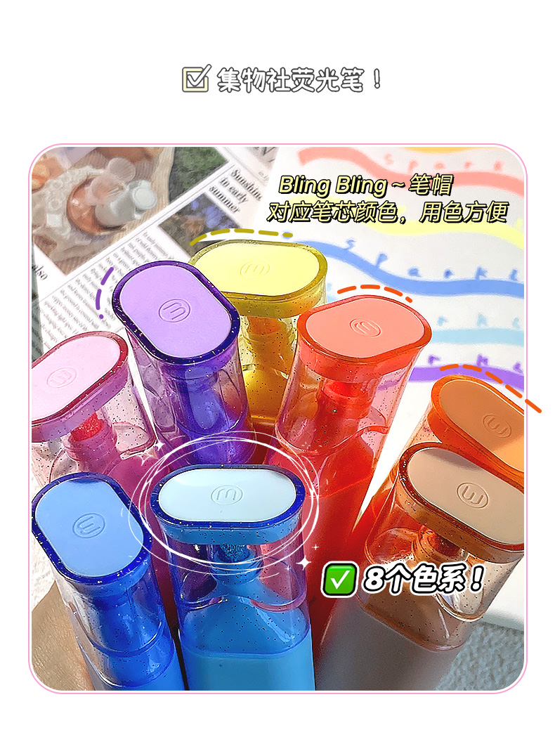 集物社新款闪光荧光笔学生用记号笔彩色小学生初中生手抄报专用笔多色高颜值荧光笔记重点颜色自选