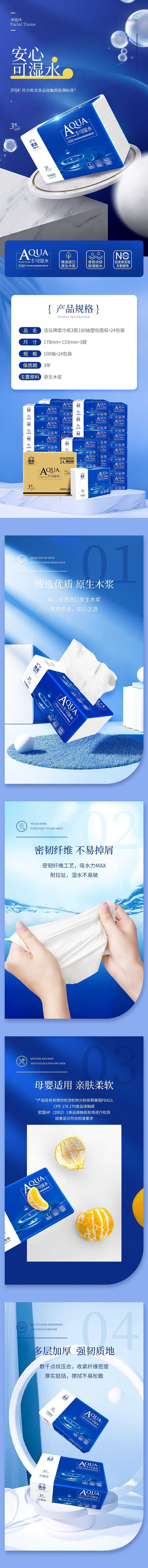洁云AQUA 3层100抽塑包面纸-24包