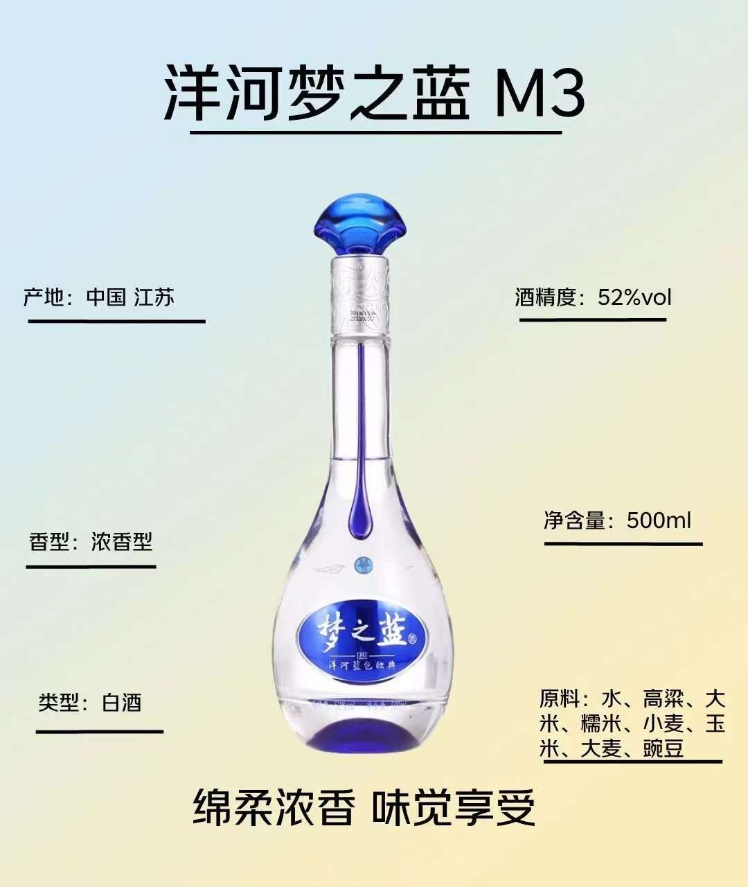 洋河梦之蓝水晶版M3 52°550ml