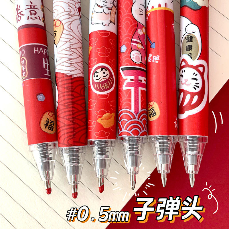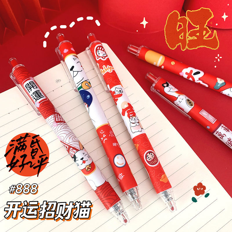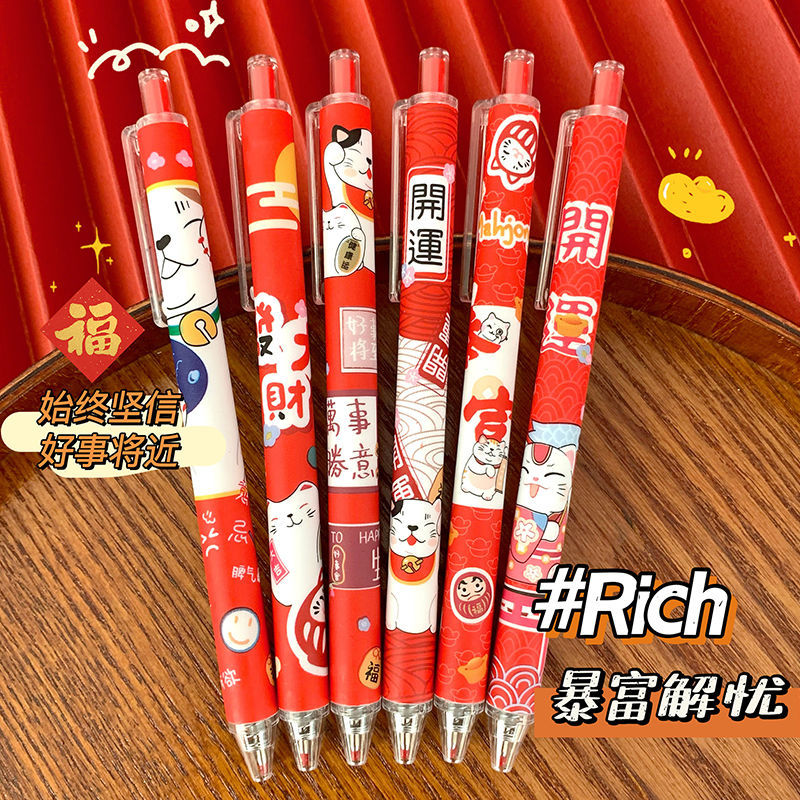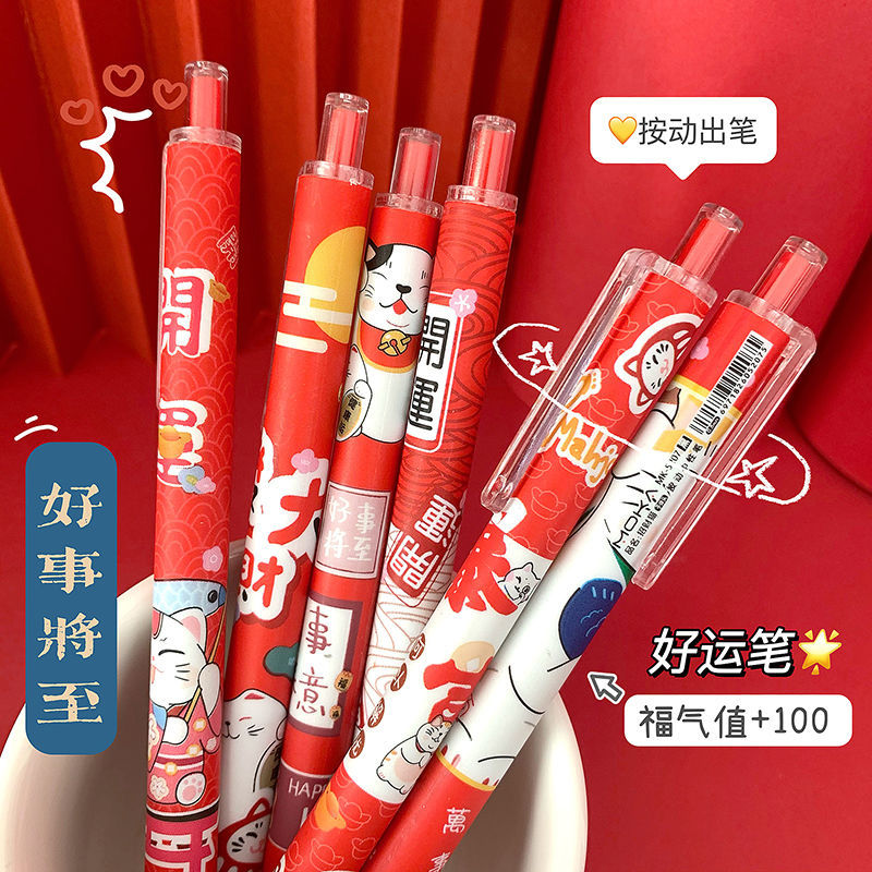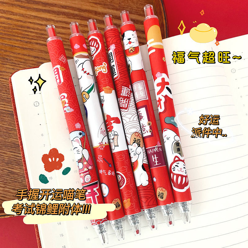 【超值选择】「新年元气满满!一套6支装」招财猫限定笔ins学生国风过年笔按动式中性笔黑色速干水笔