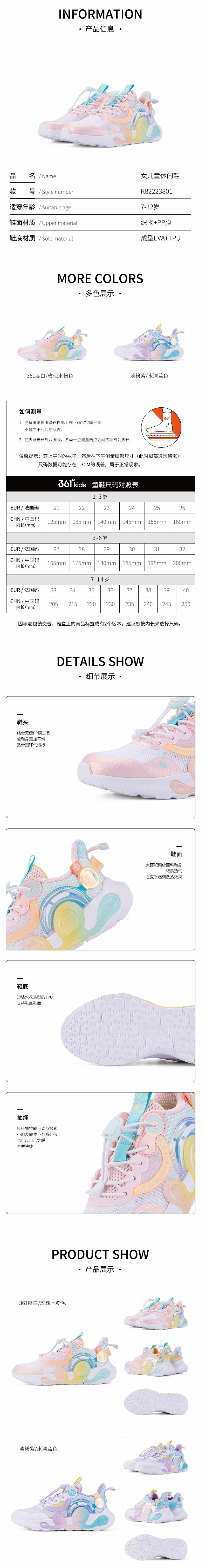 小361女童鞋儿童运动鞋2022夏秋季新款网面中大童休闲鞋子K82223801
