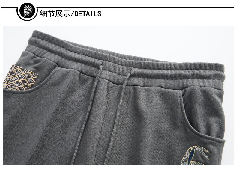 ONIARAI/鬼洗秋冬24泥棒蓝竹影刺绣休闲长款男式针织裤 N540157