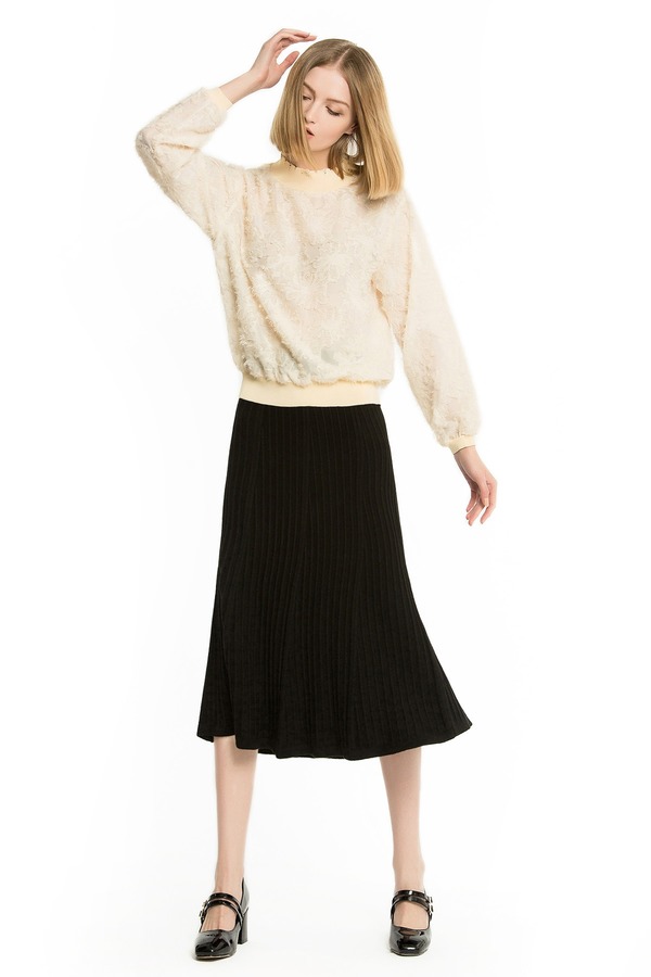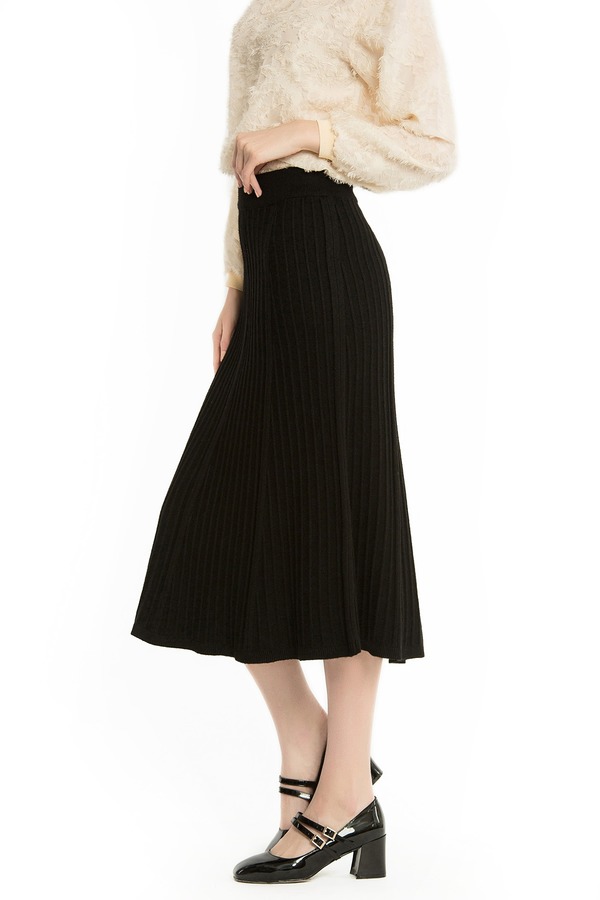 NOIR 黑色九分A字针织裙 1025