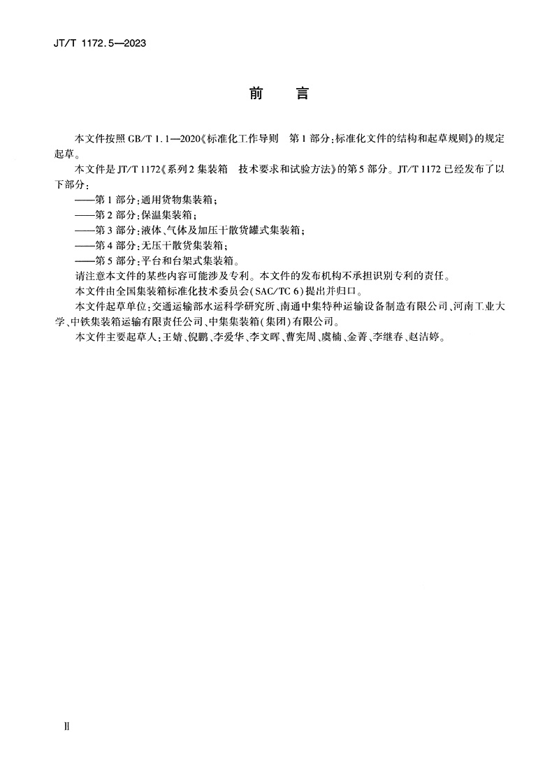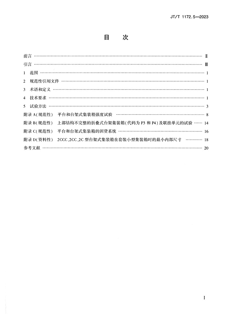 书名:系列2集装箱 技术要求和试验方法 第5部分:平台和台架式集装箱(JT/T 1172.5—2023)