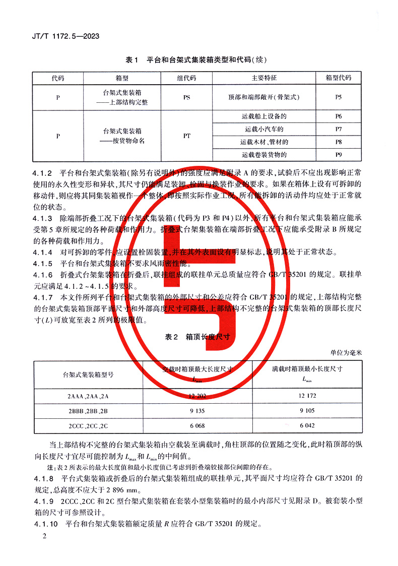 系列2集装箱 技术要求和试验方法 第5部分:平台和台架式集装箱(JT/T 1172.5—2023)