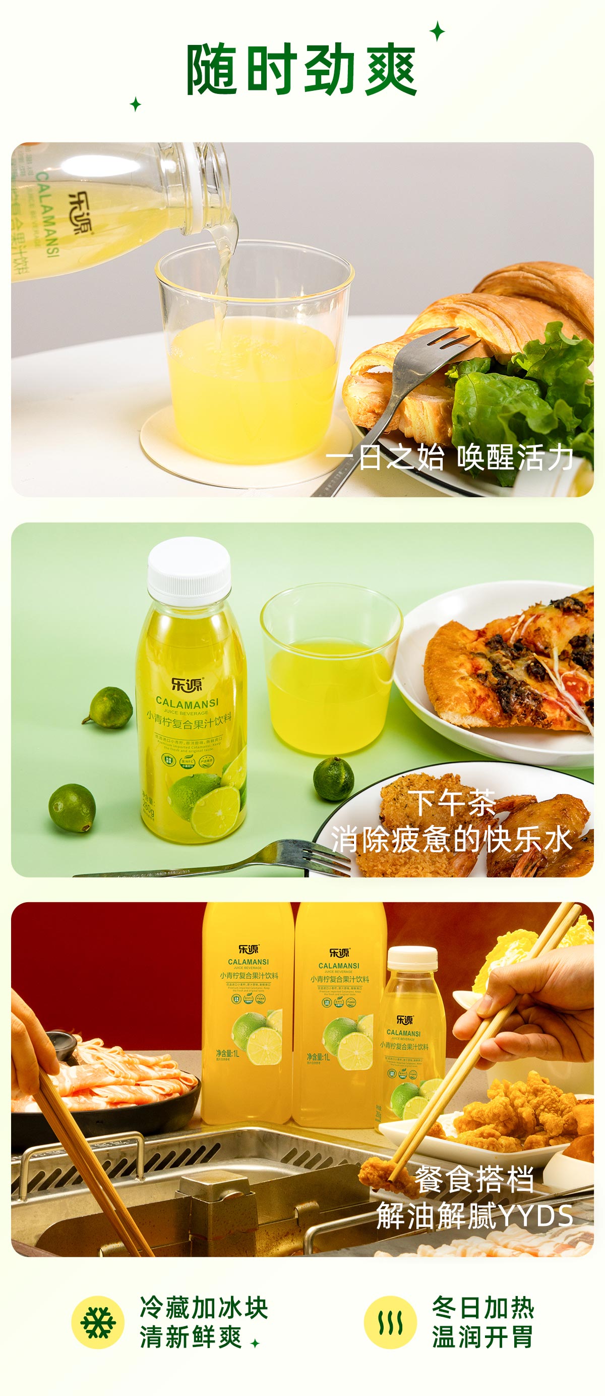【自营】乐源 小青柠复合果汁280g*8瓶