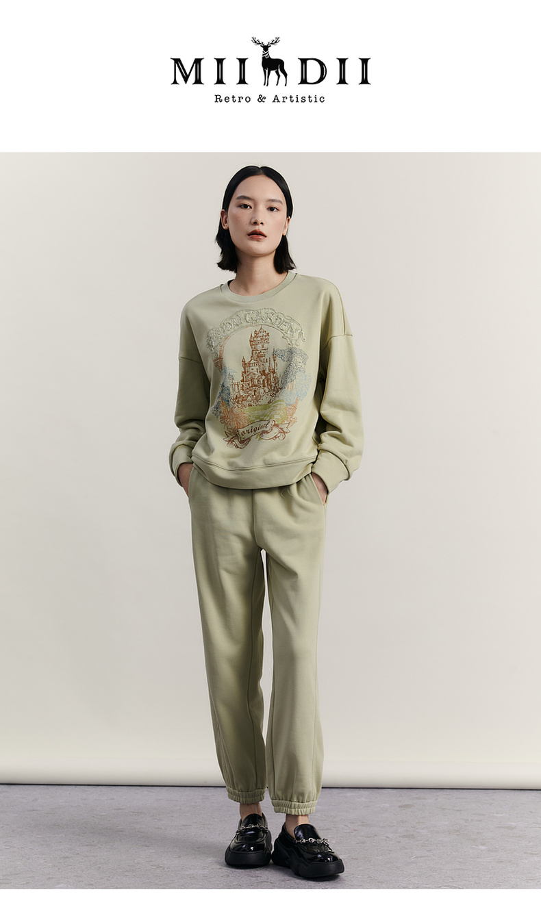 谜底束脚休闲裤女2023冬季新款时尚百搭亲肤绣花萝卜裤234MK1571