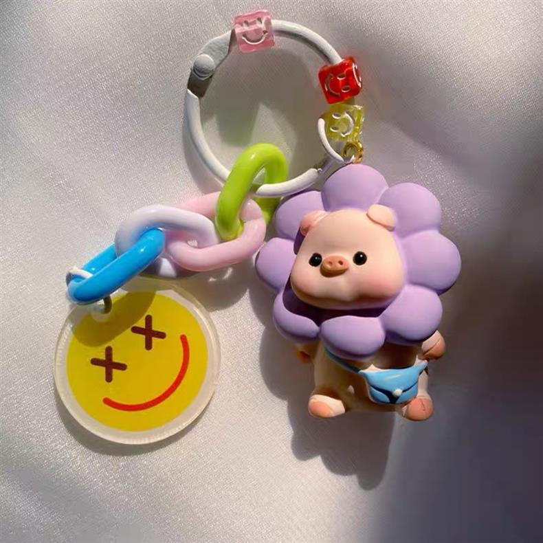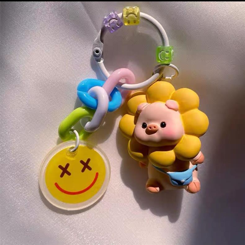 9.9包邮!热卖ins超萌太阳花猪可爱简约网红清新钥匙扣书包挂件车钥匙链硅