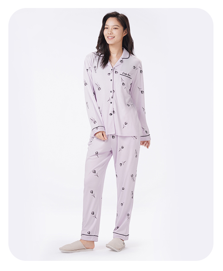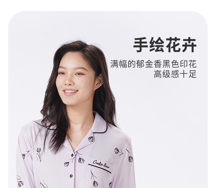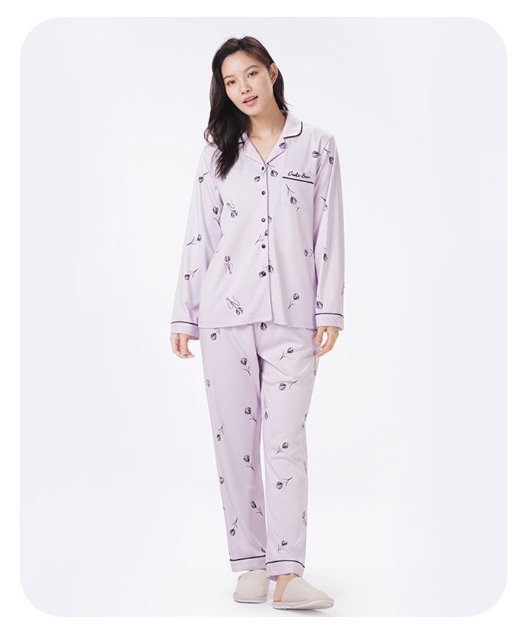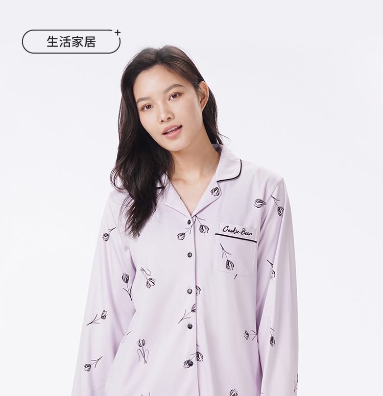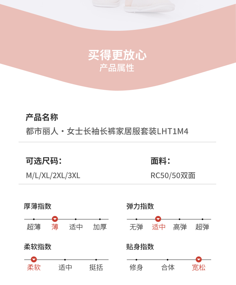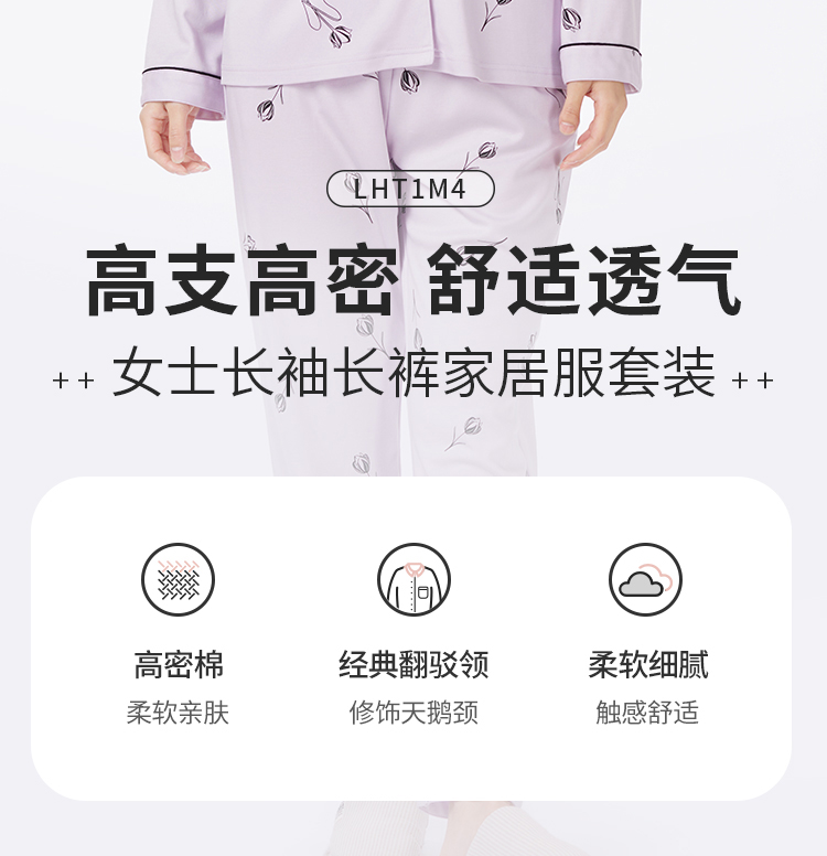 都市丽人睡衣生活家居长袖家居服RC50/50双面薄女士棉质套装LHT1M4