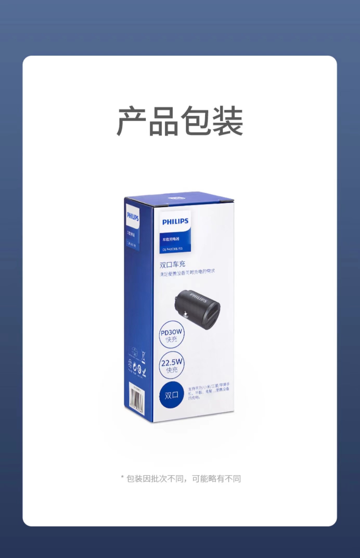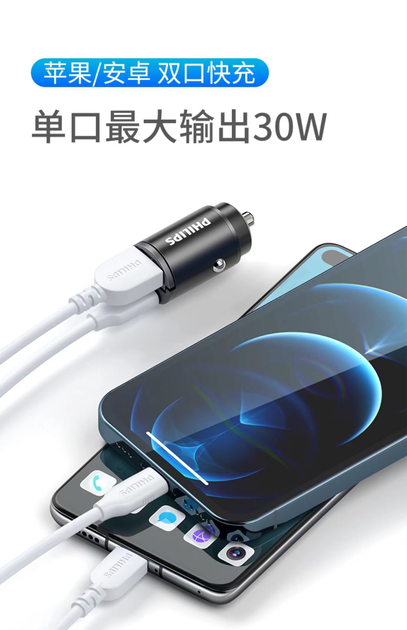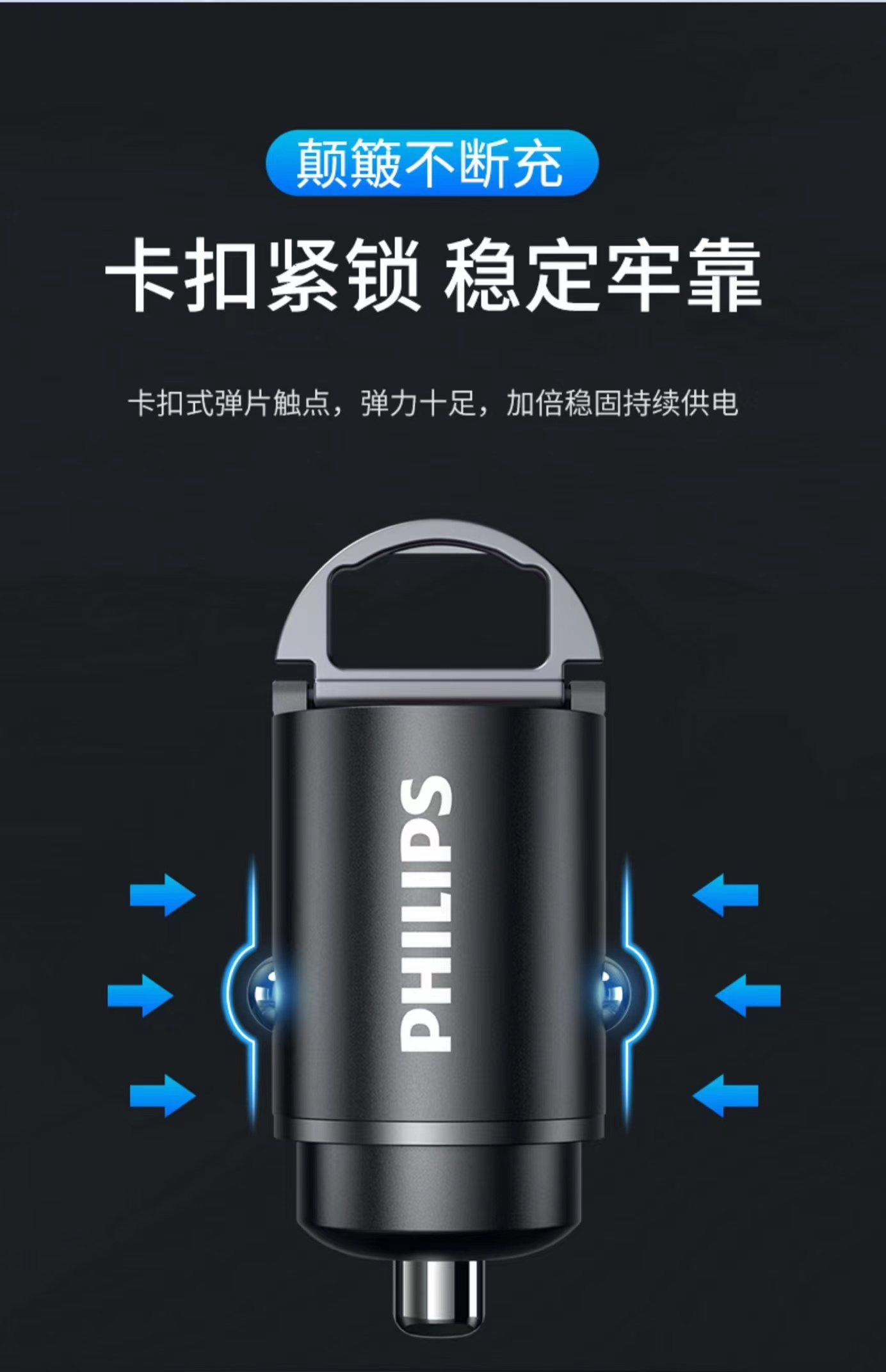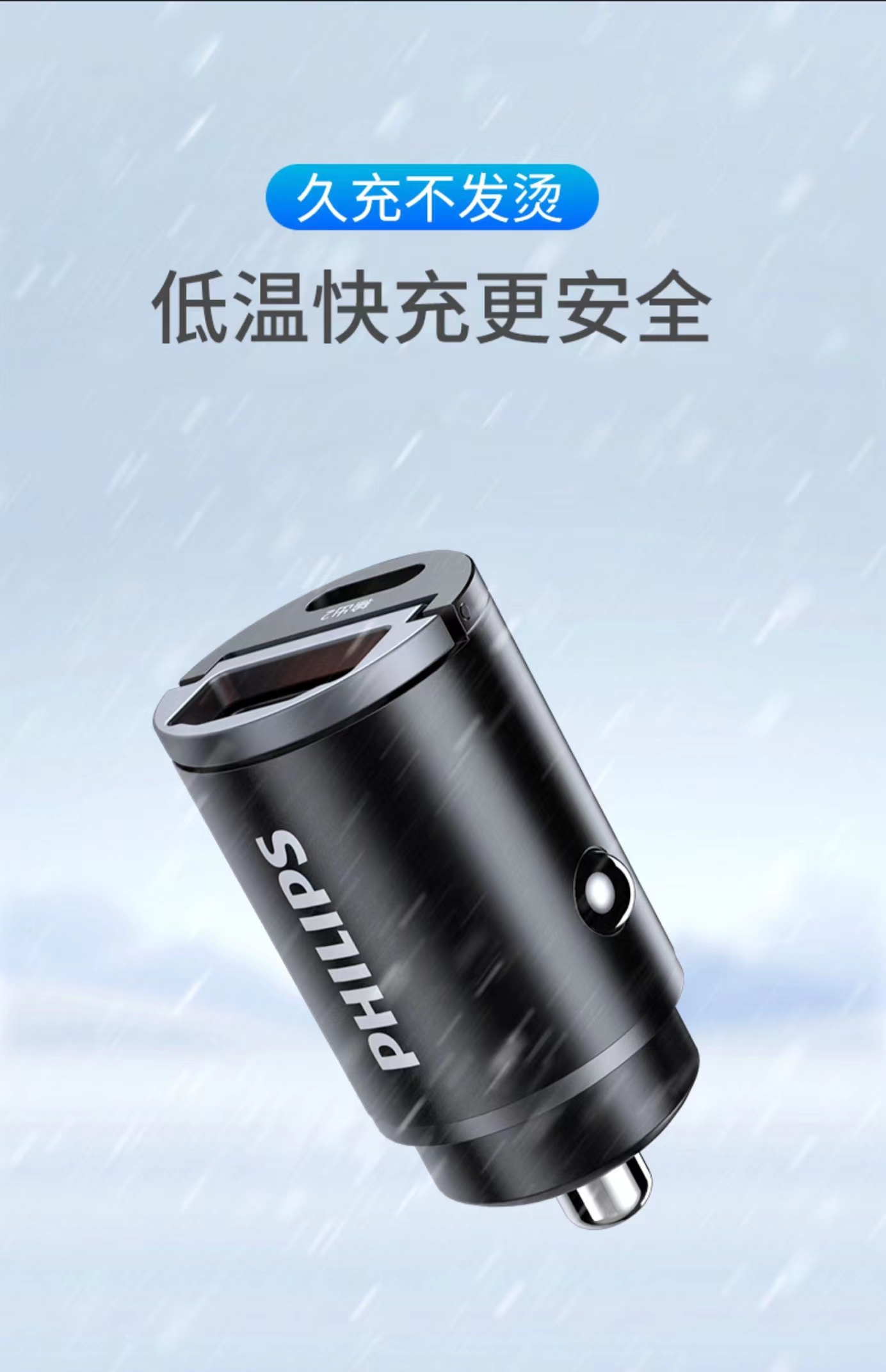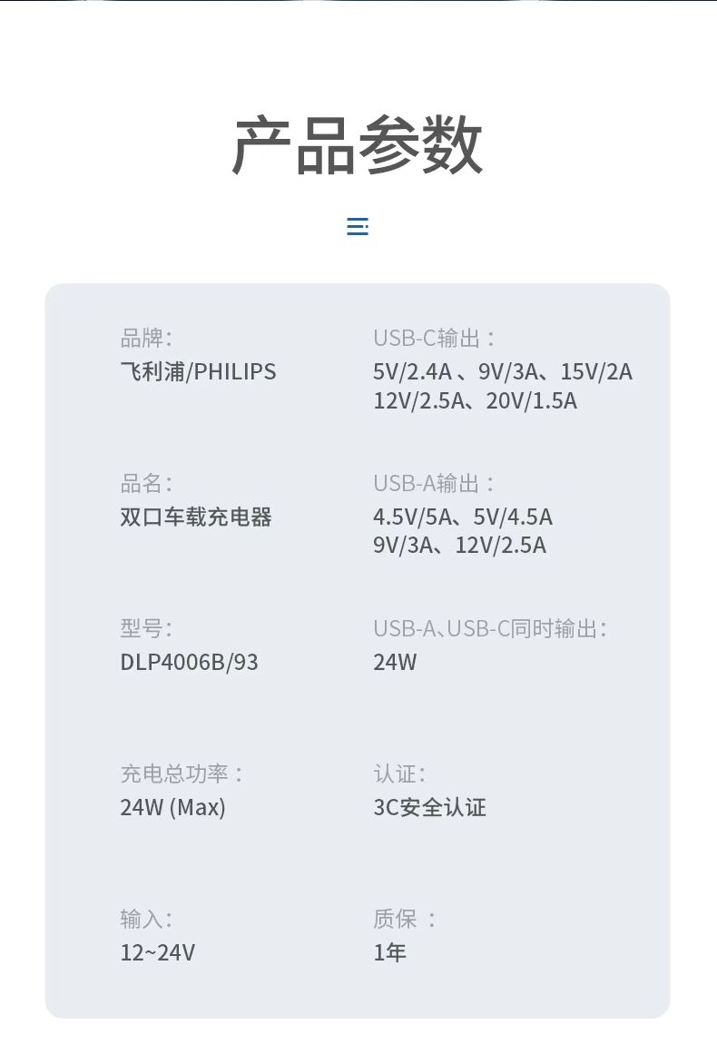 【有品】 飞利浦车载充电器 点烟器转换插头 羽墨黑