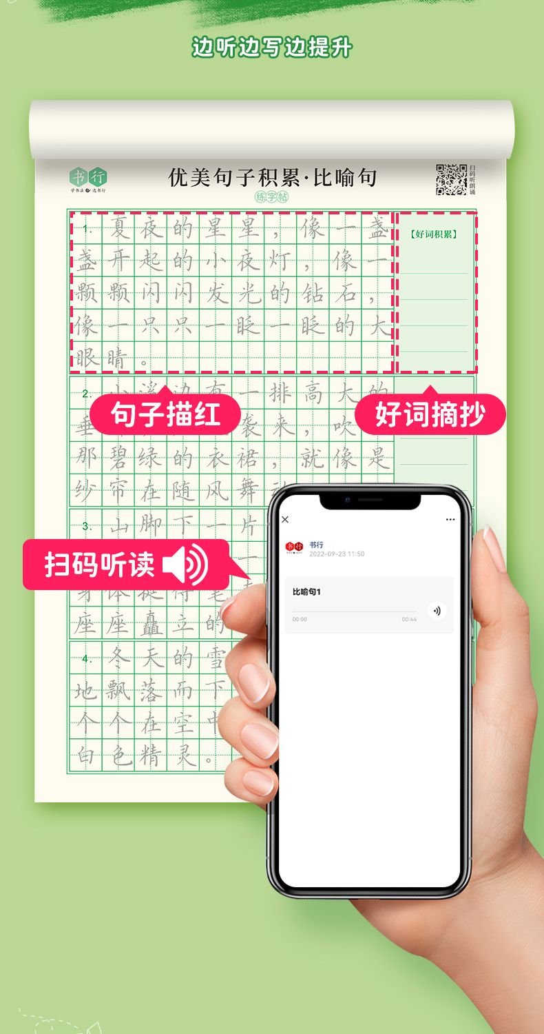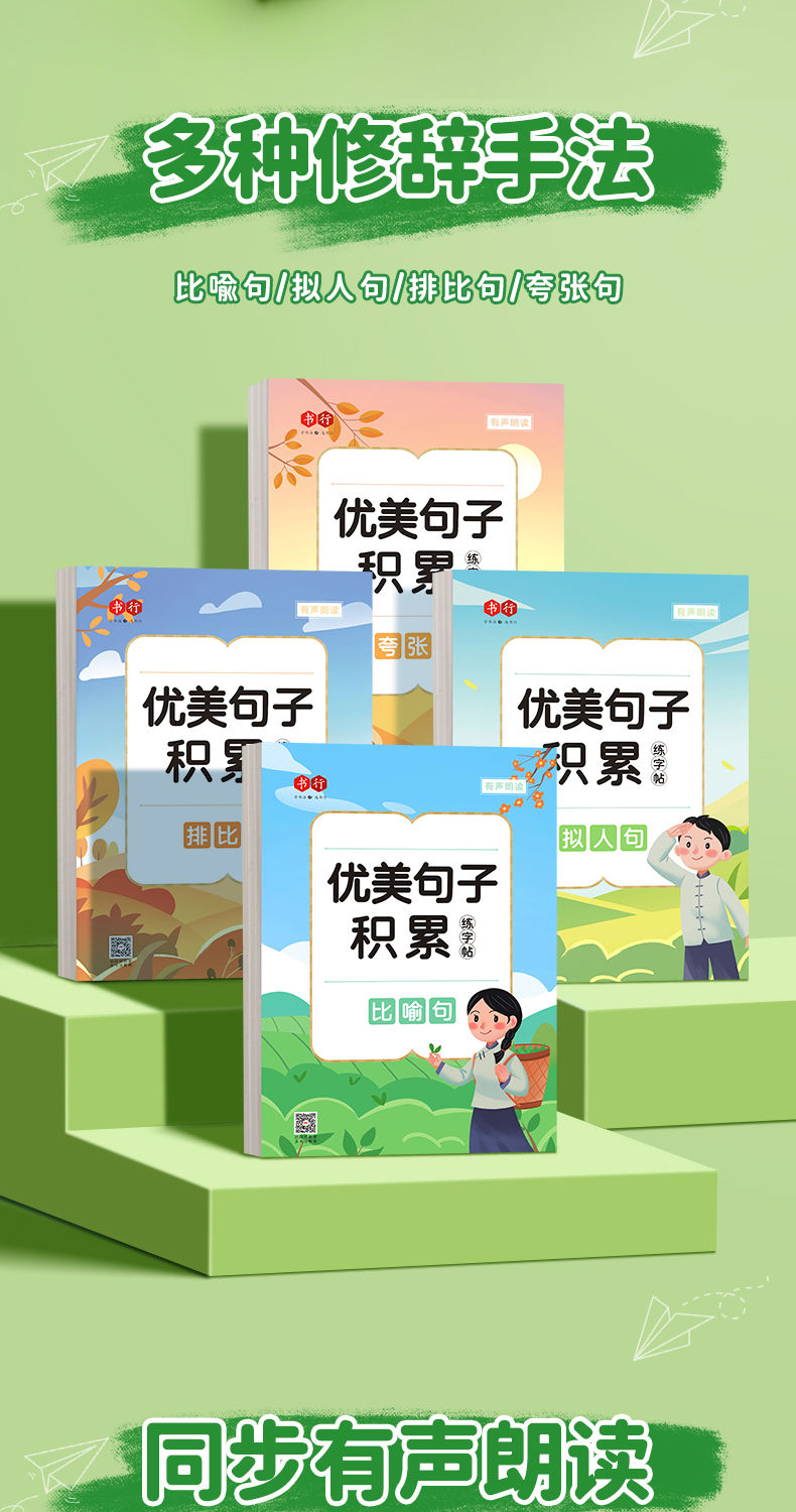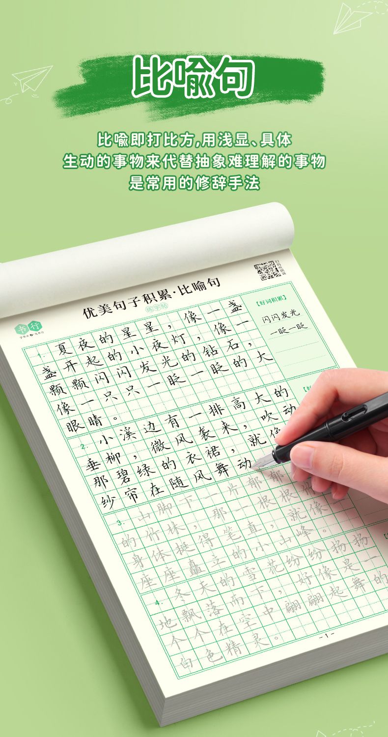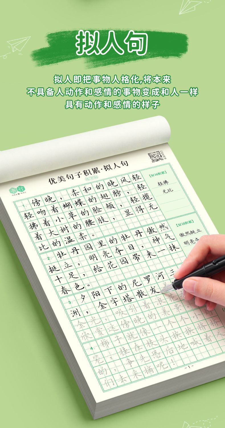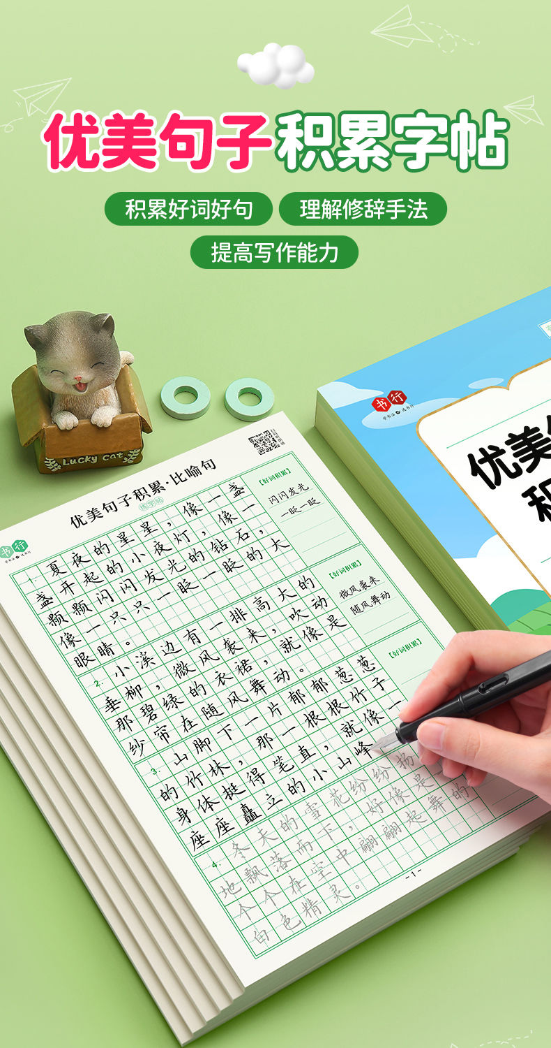 优美句子积累练字帖比喻拟人排比夸张好词好句积累小学生作文练习