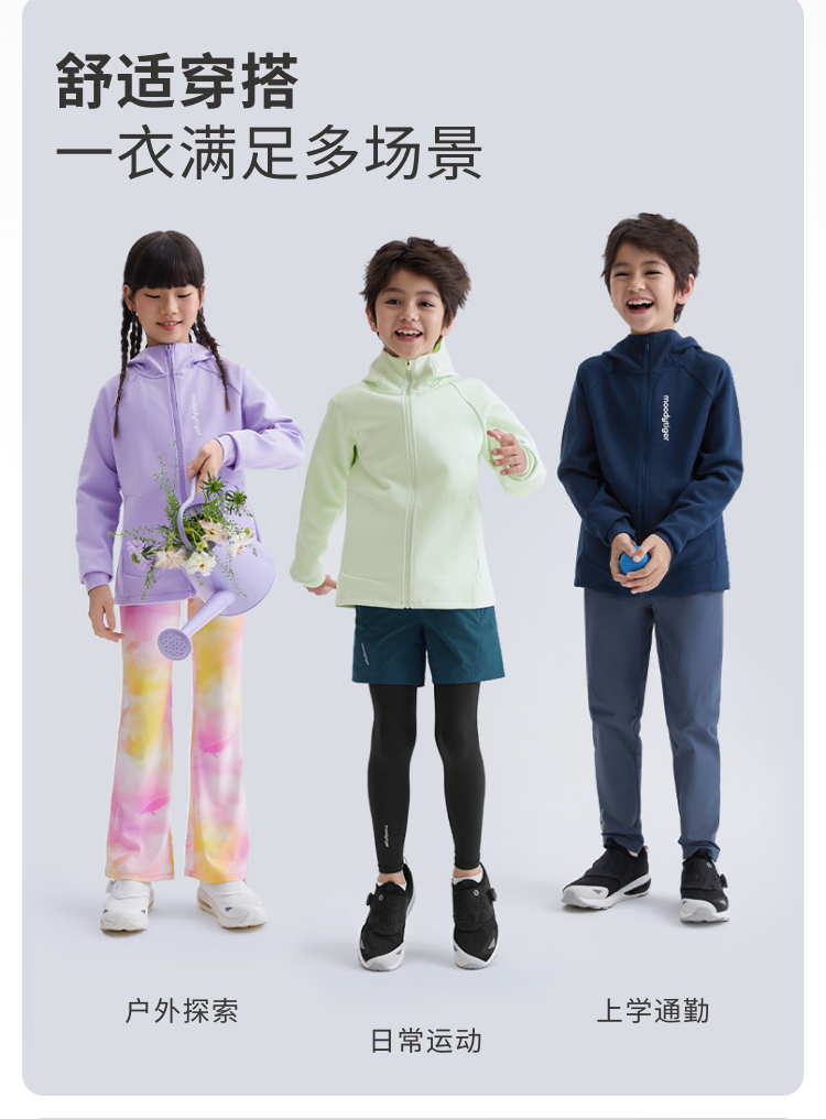 moodytiger儿童外套25春新男女童舒适柔软户外运动上衣【DR】