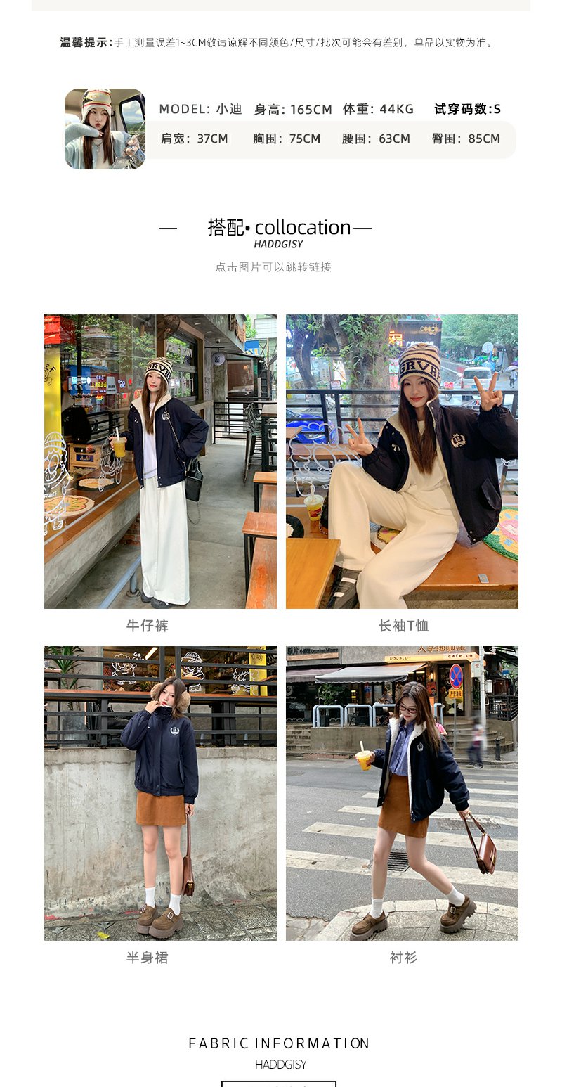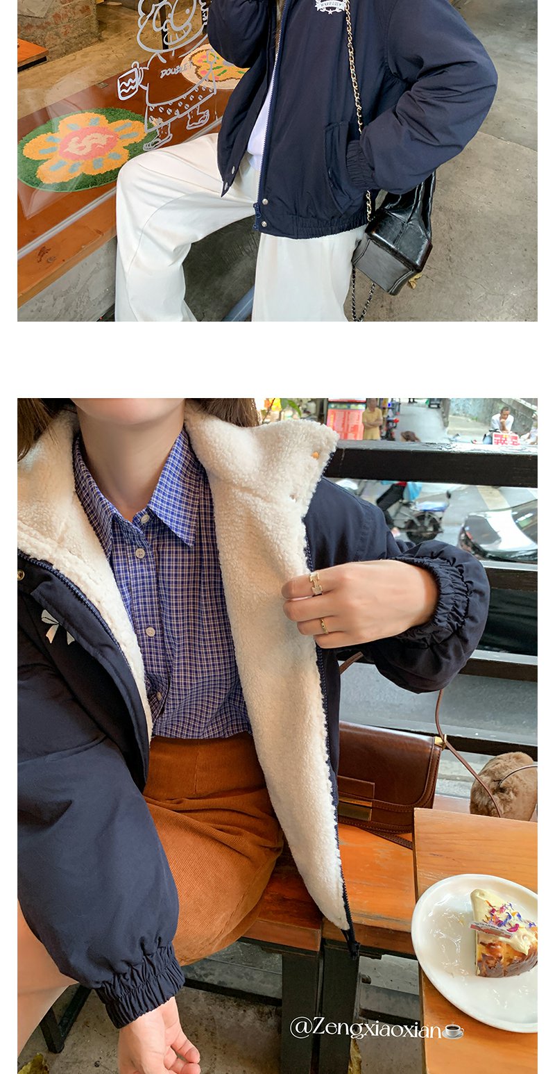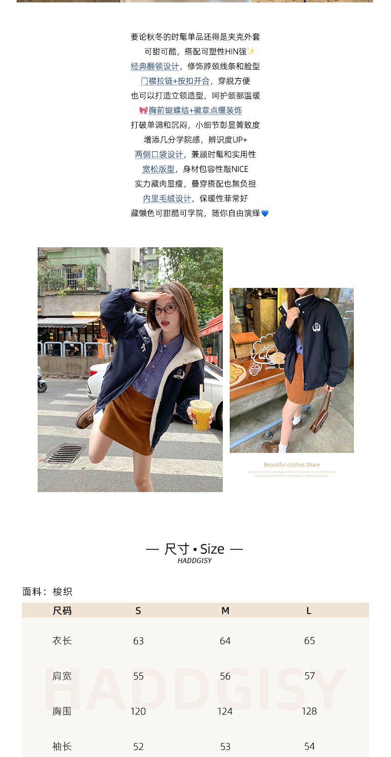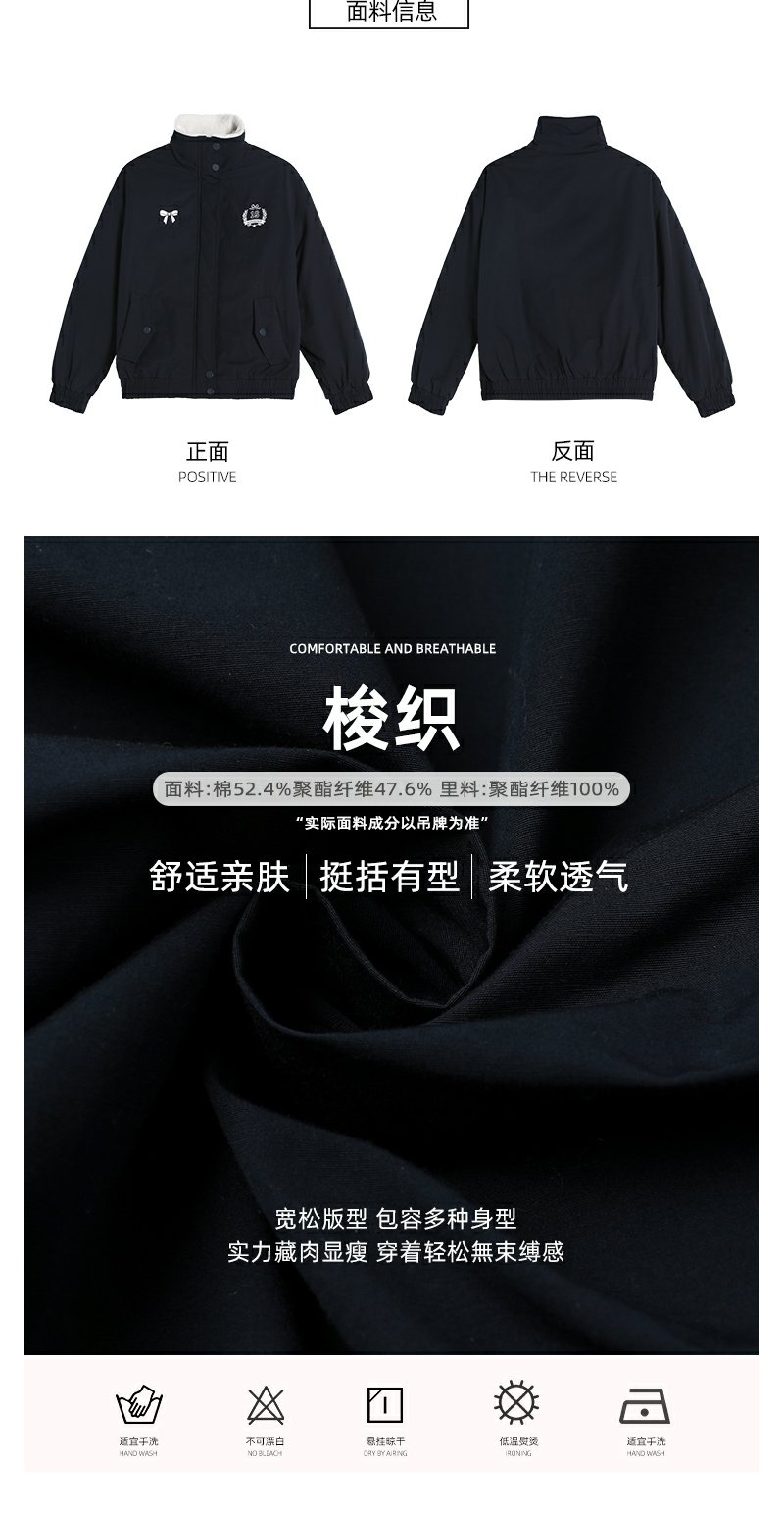 <曾小咸推荐>学院风藏蓝色加绒宽松夹克外套 日常299.99 立减140 秒杀159.99!!