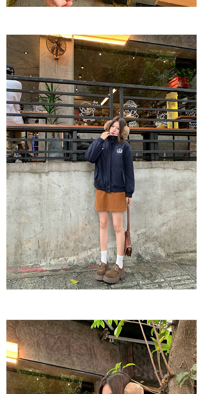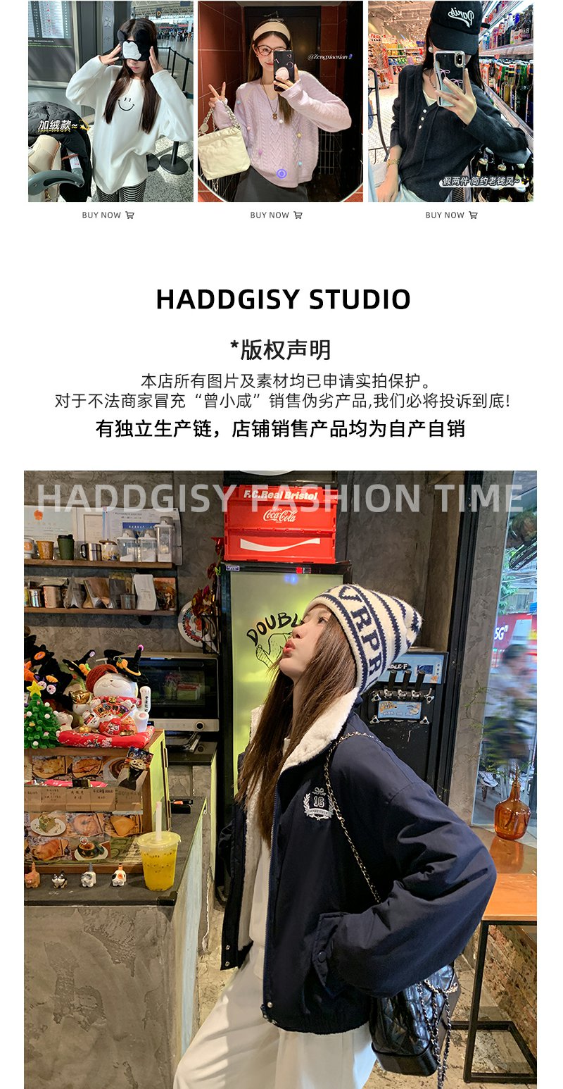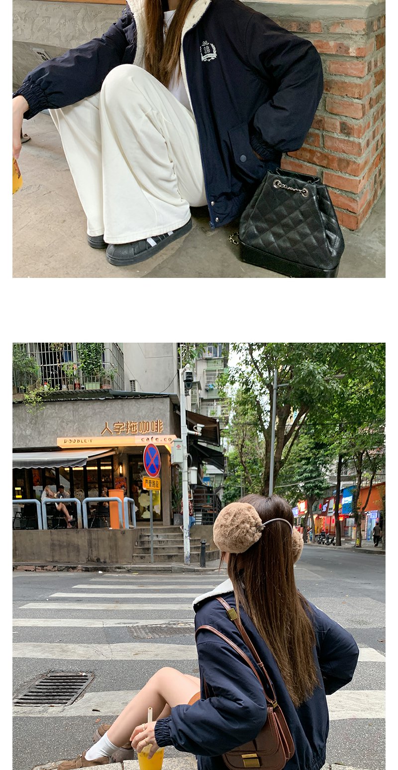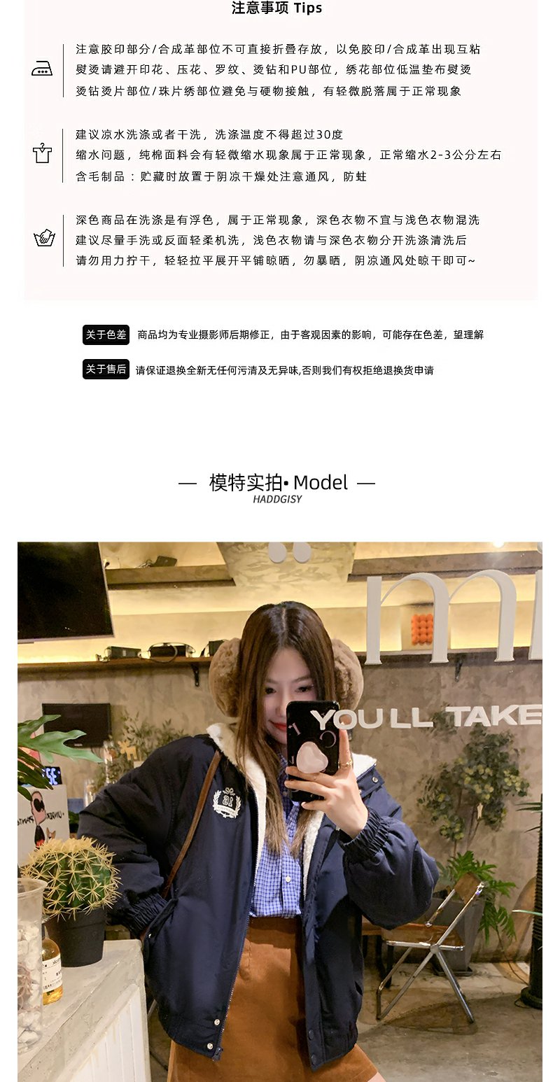 <曾小咸推荐>学院风藏蓝色加绒宽松夹克外套 日常299.99 立减140 秒杀159.99!!