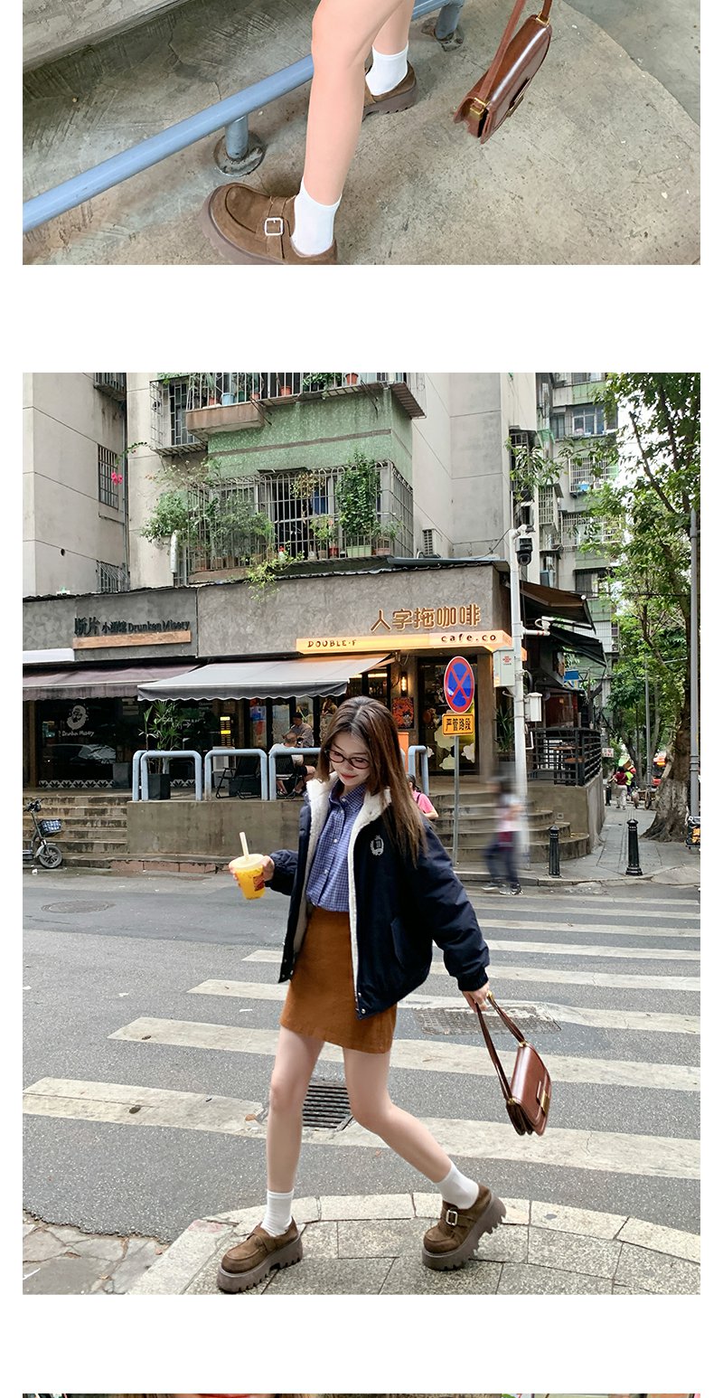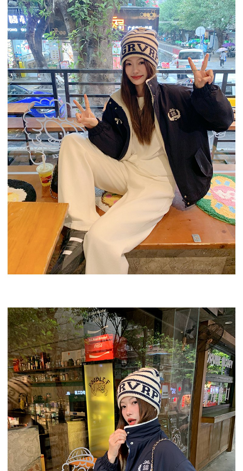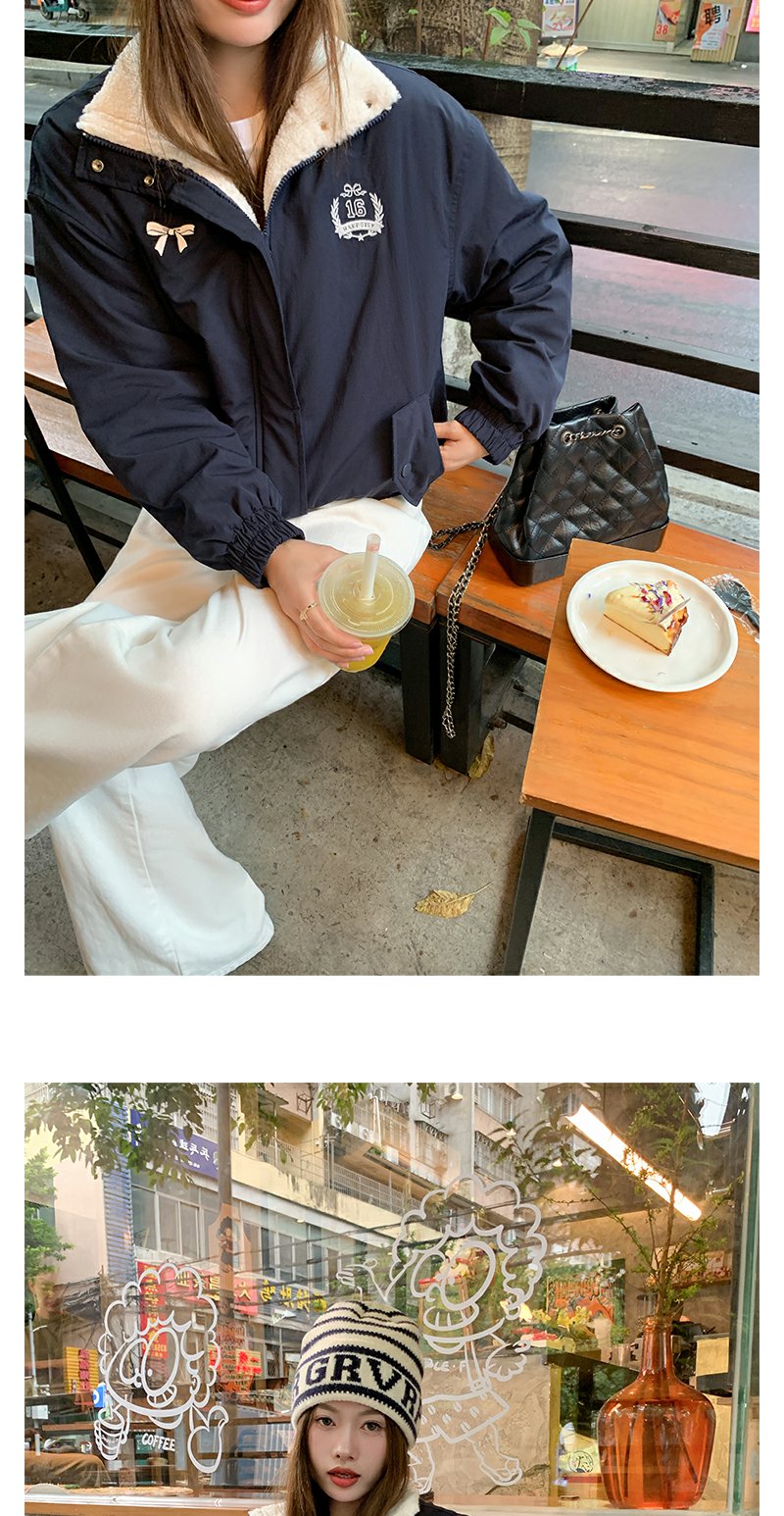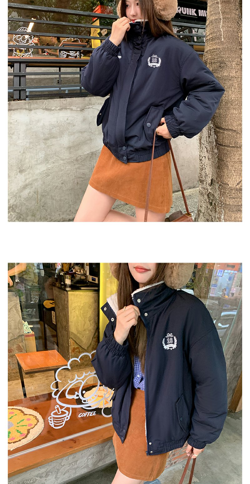 <曾小咸推荐>学院风藏蓝色加绒宽松夹克外套 日常299.99 立减140 秒杀159.99!!