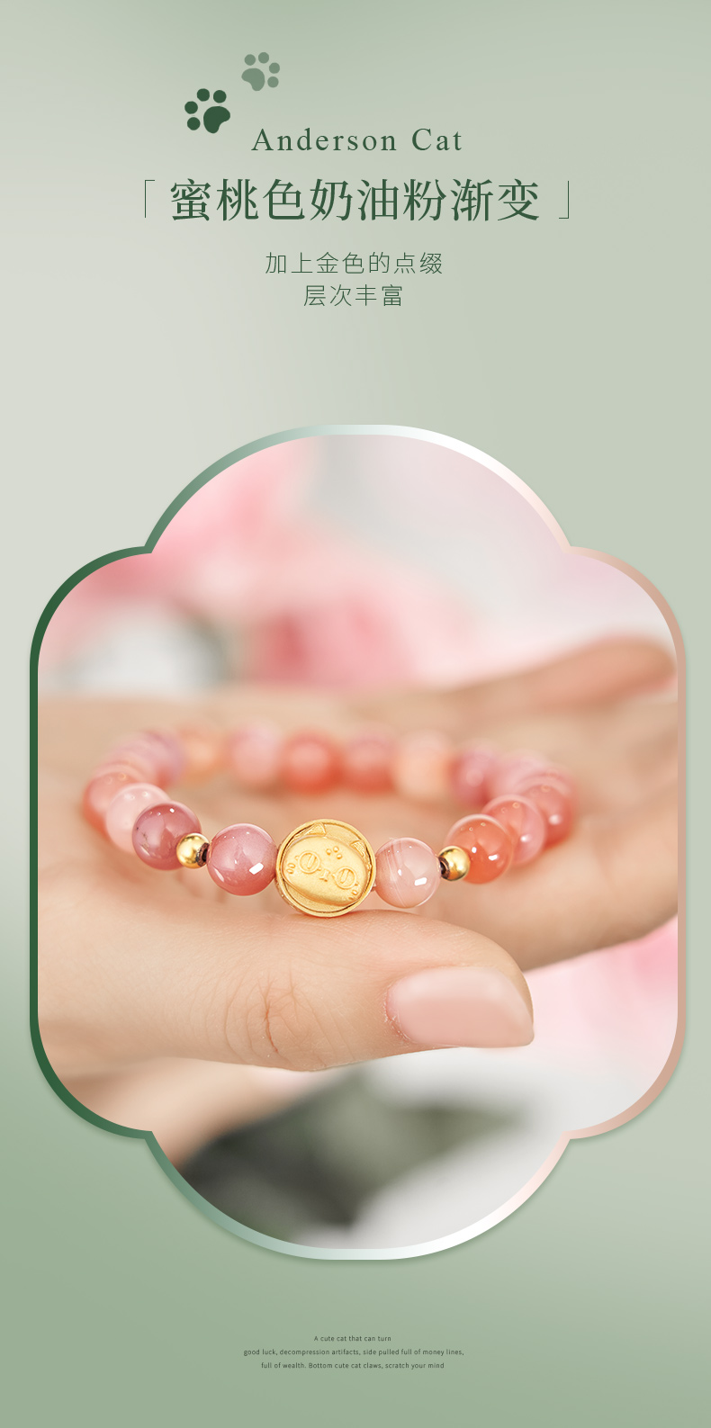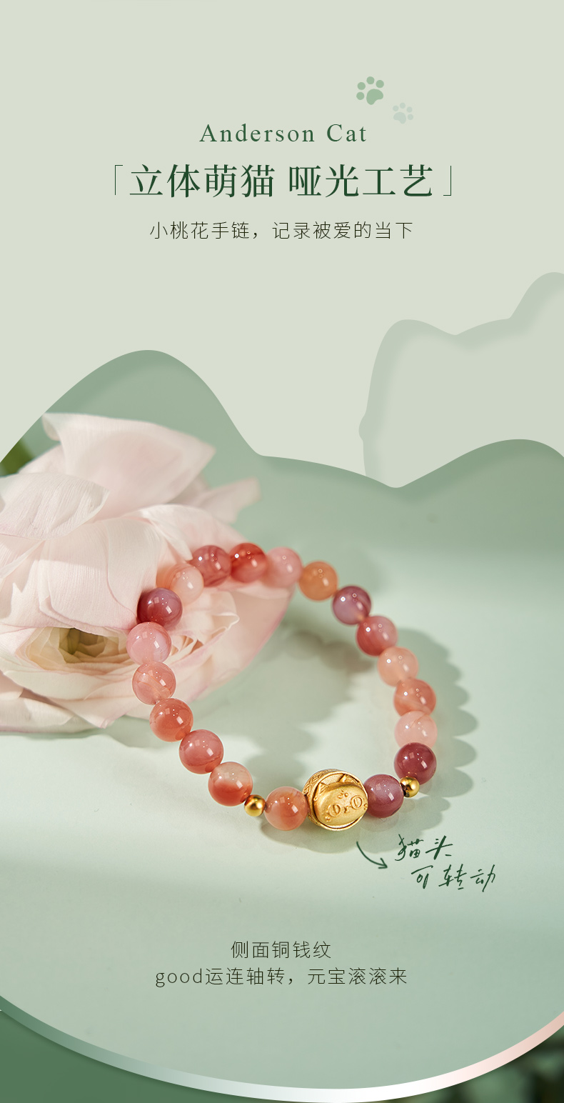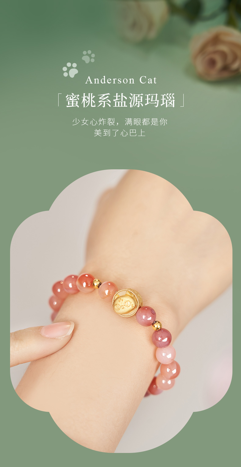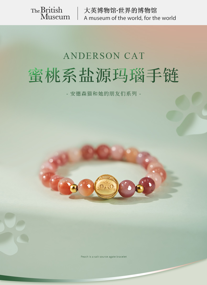 大英博物馆 盖亚·安德森猫和她的朋友们系列 蜜桃系盐源玛瑙 手链 送朋友 送闺蜜 节庆礼物 生日礼物