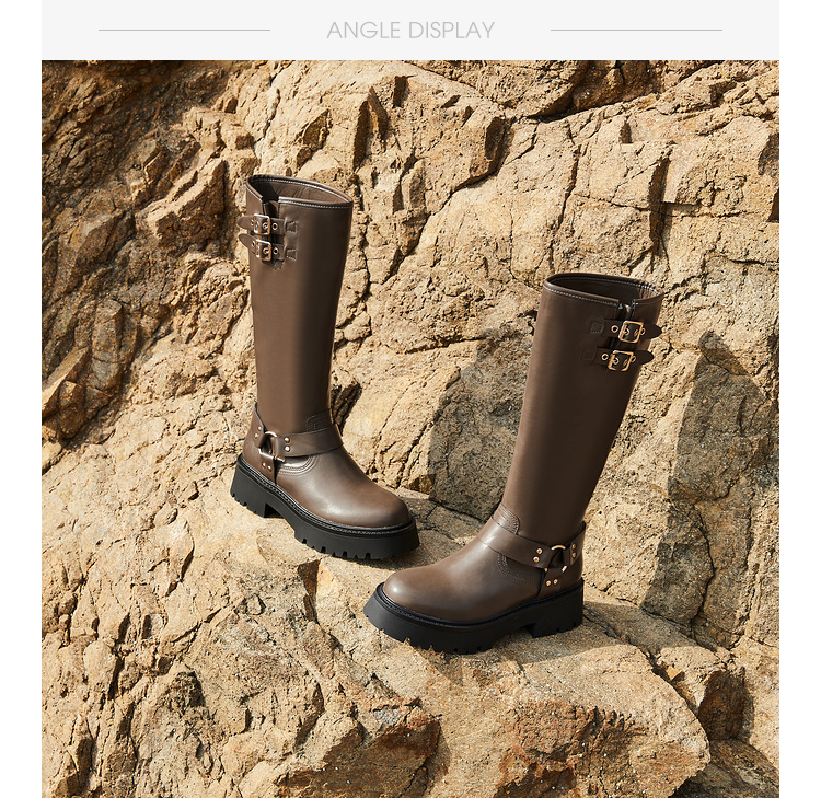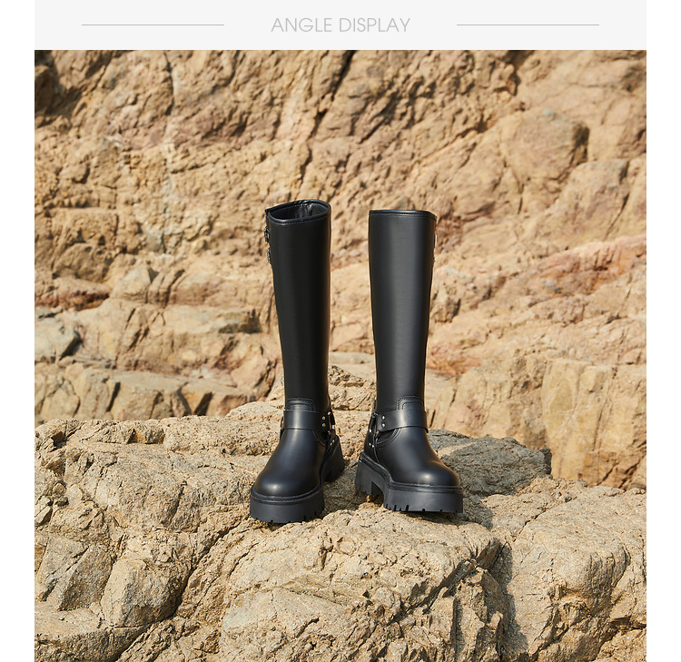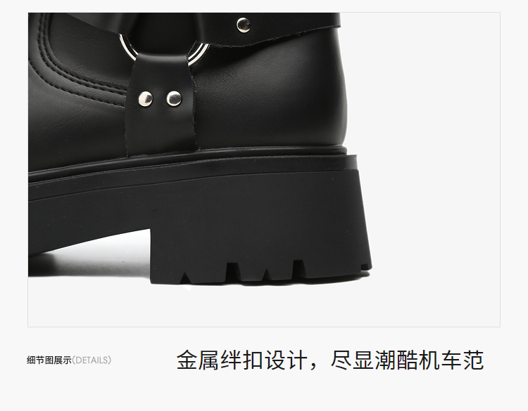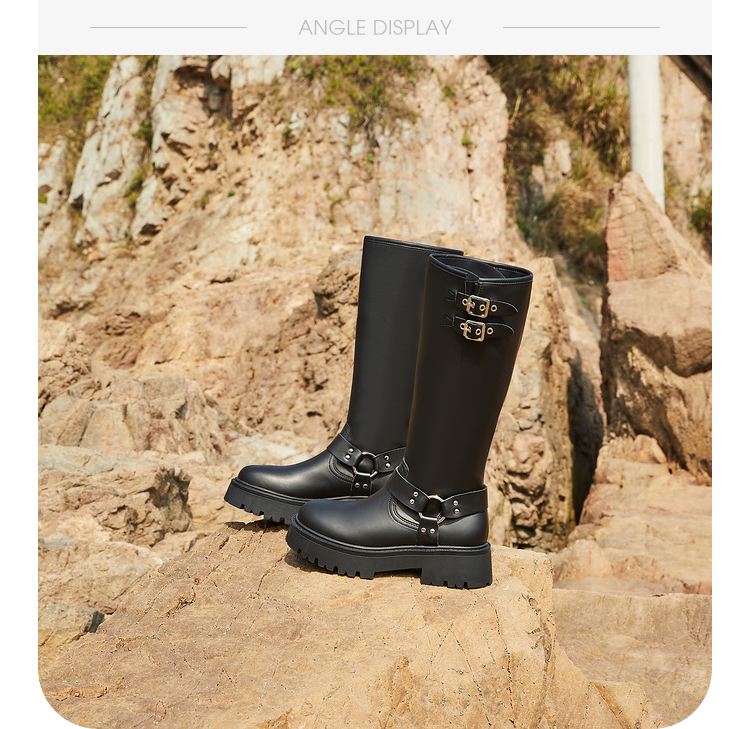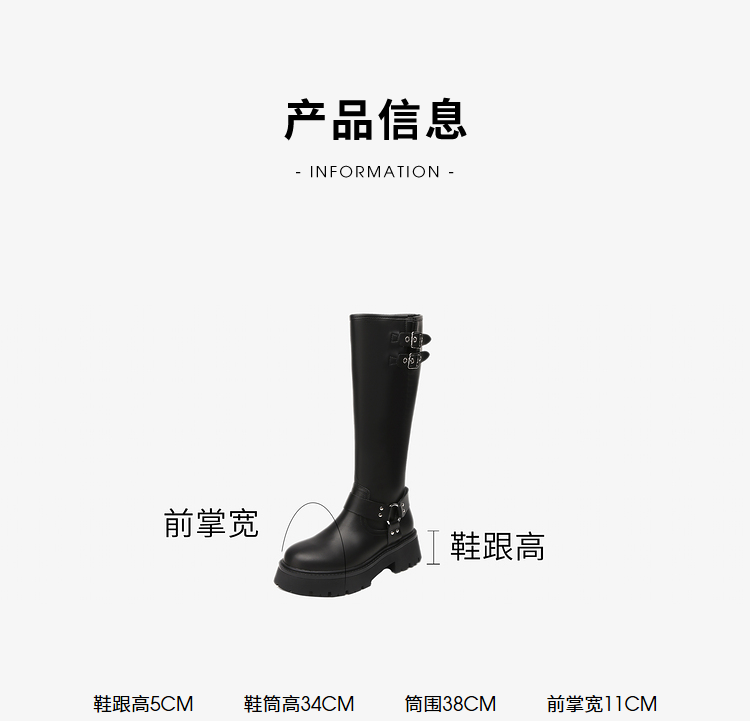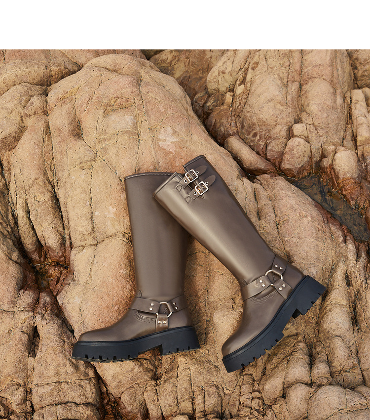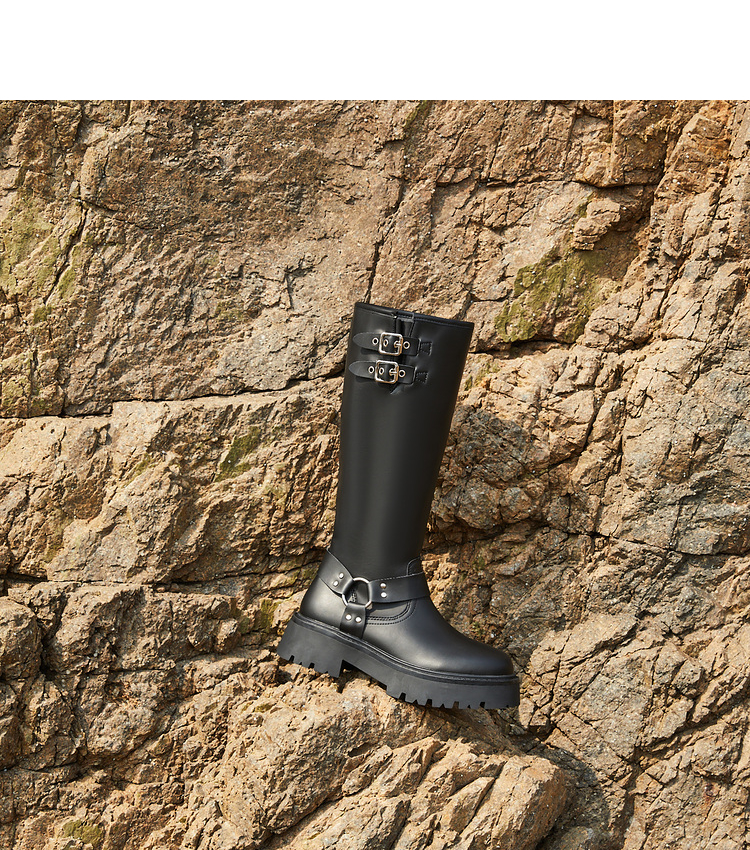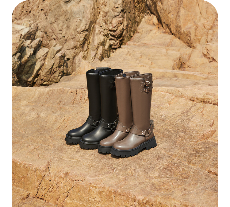 西遇厚底机车靴女新款秋冬美式西部牛仔长筒骑士靴小个子长靴D0034377