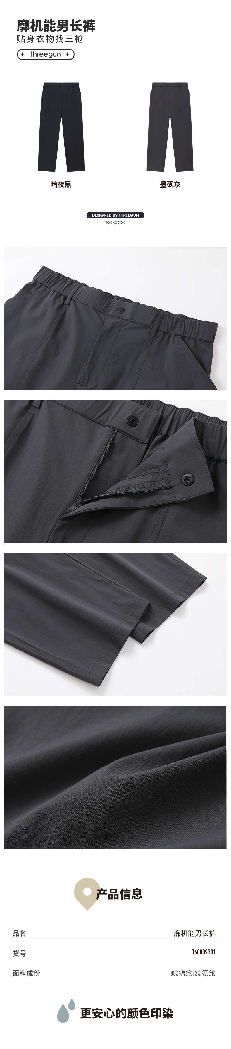 Threegun三枪 廓机能男长裤-T60089B01