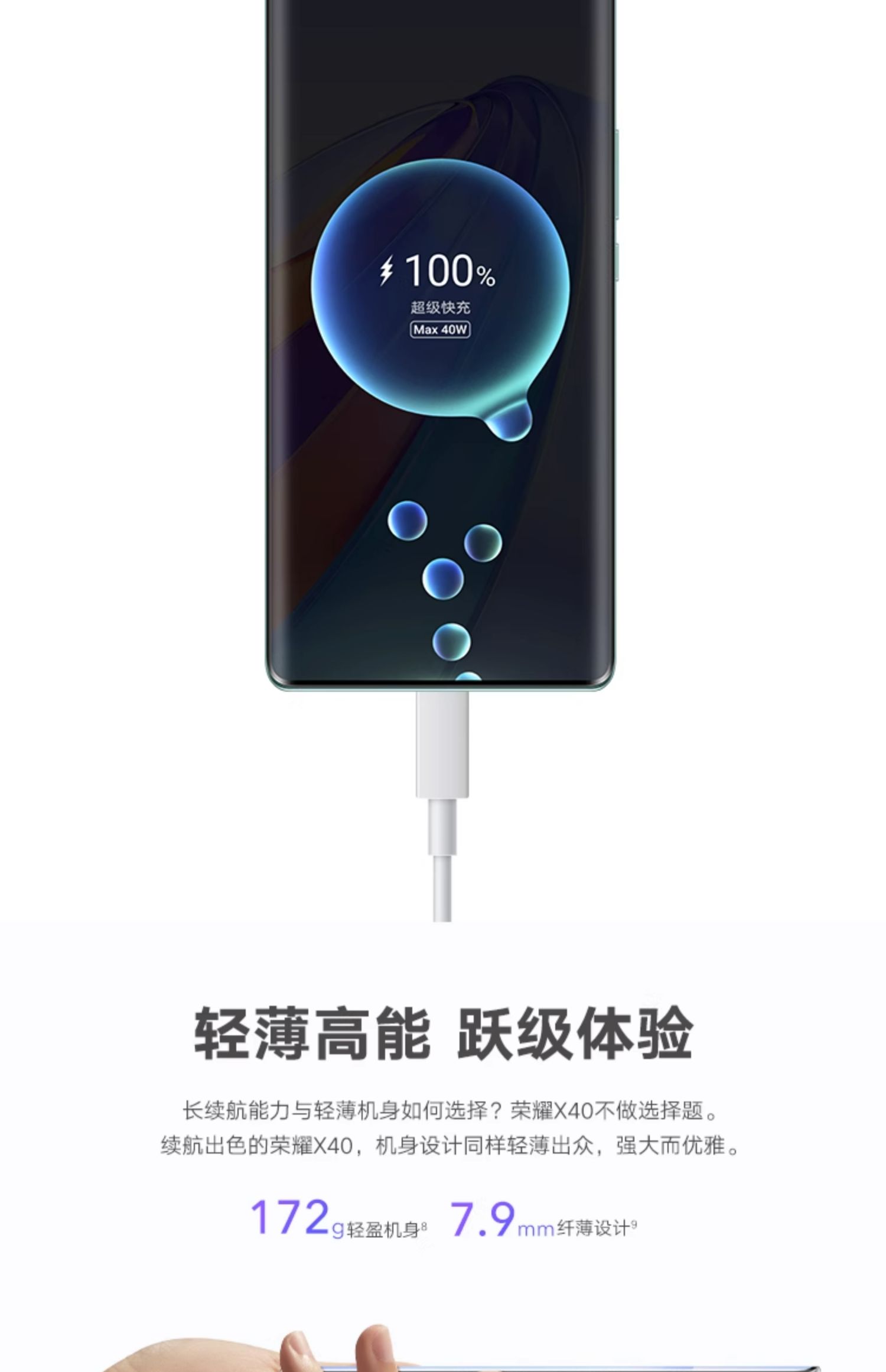 荣耀X40 120Hz OLED硬核曲屏 5100mAh 快充大电池 7.9mm轻薄设计 5G手机 12+256G