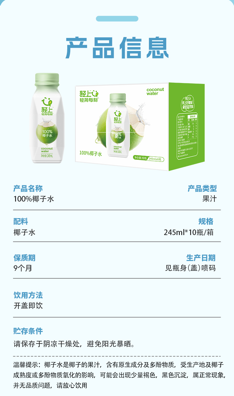 轻上 椰汁水245ml*10瓶