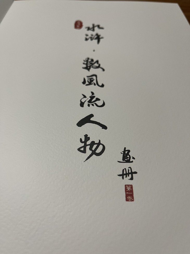 《南漫水浒-数风流人物》画册第一卷,画册封面以硬皮烫金,内页采用厚卡纸艺术级精装,以及蝶型锁线全展开工艺,多度工序均采用手工制作,尽显诚意。