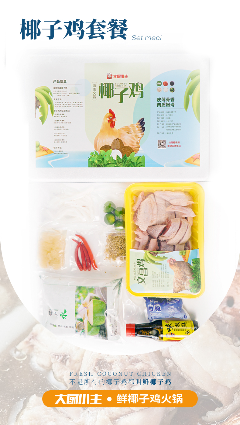 重量:2.5KG(鸡1kg+配料+椰汁)不含冰袋和外包装