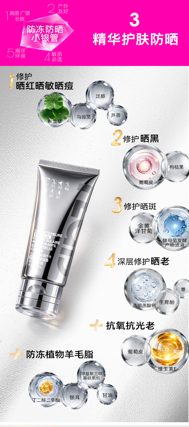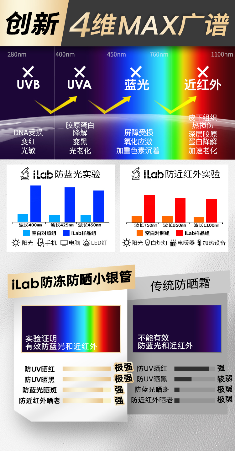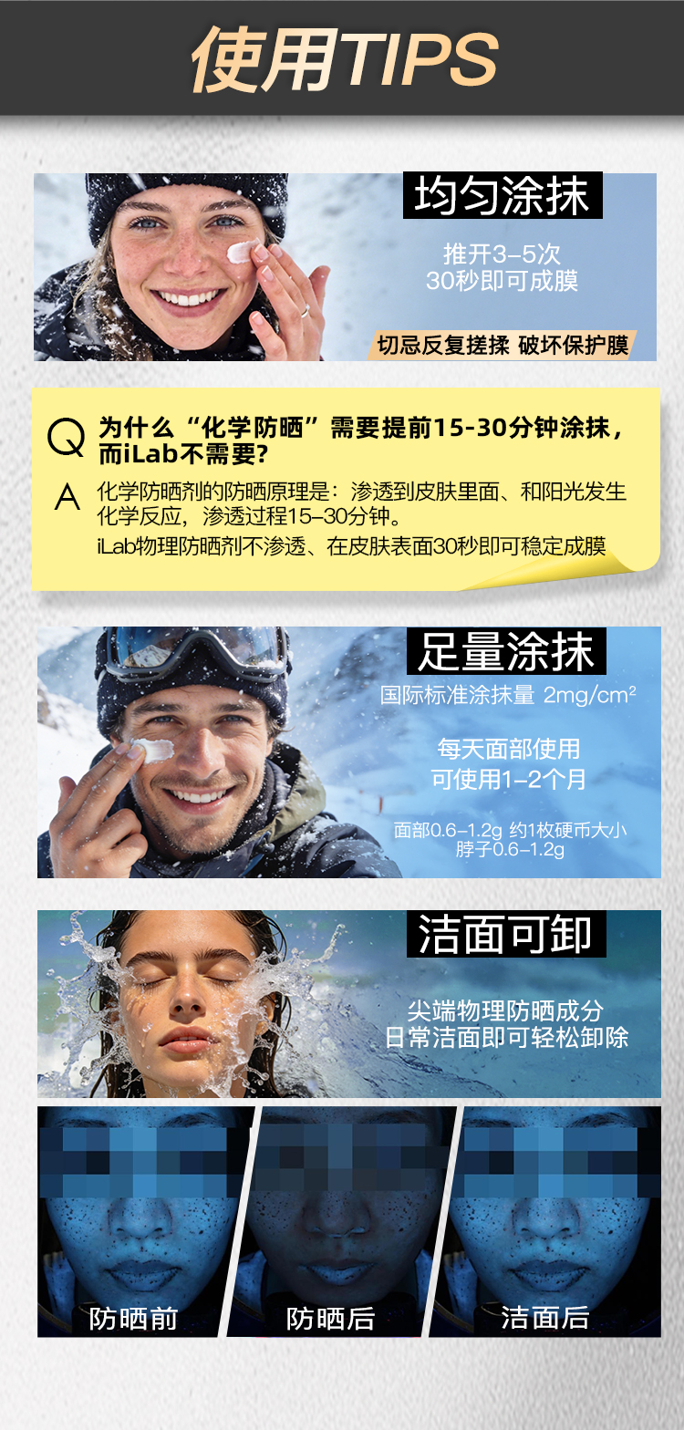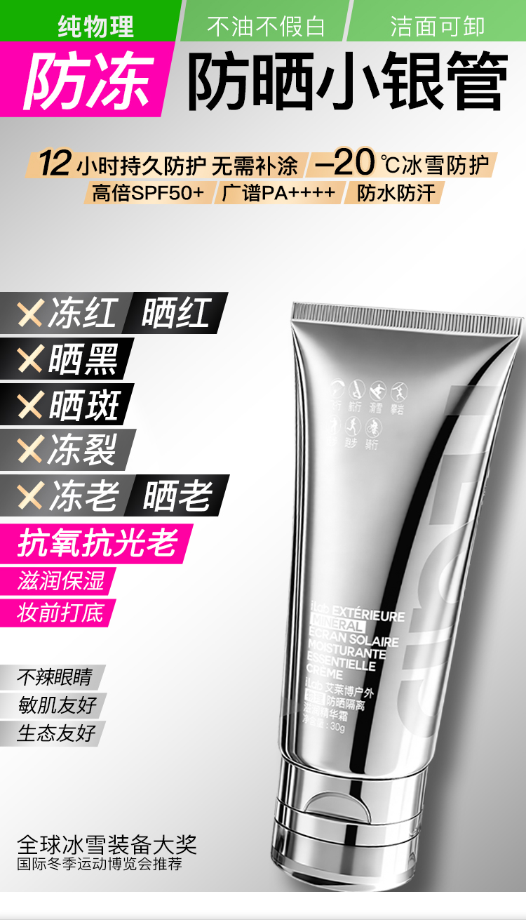 iLab艾莱博防晒小银管(防冻)精华霜/12小时/防水防汗/不辣眼睛 30g