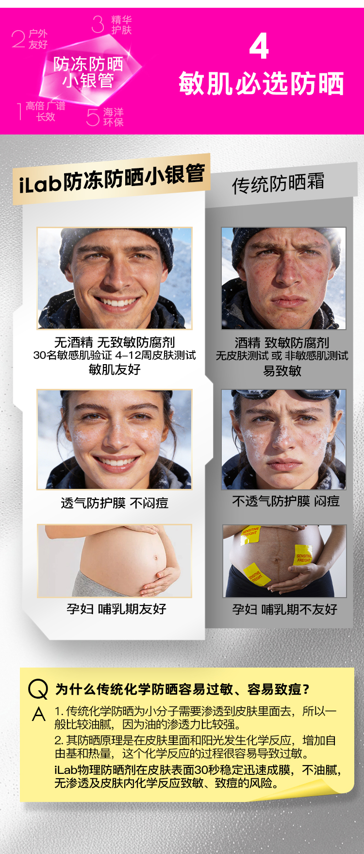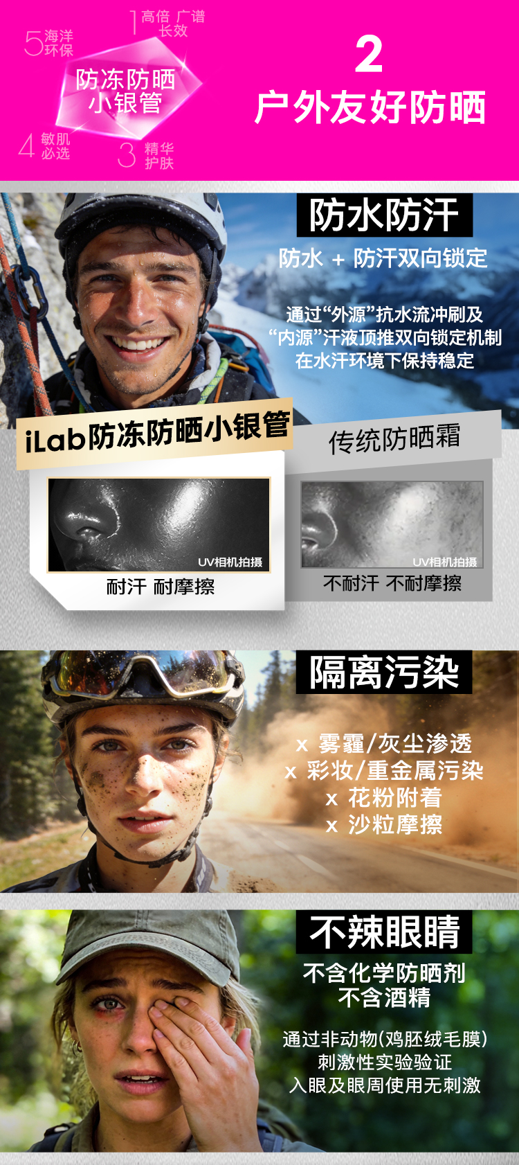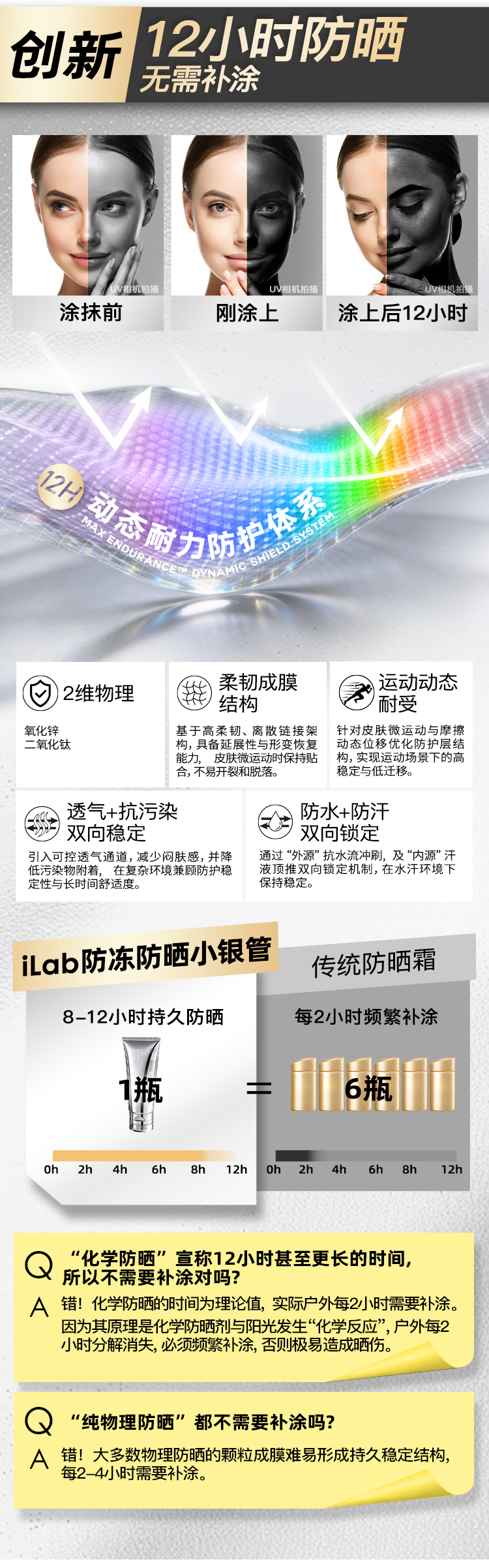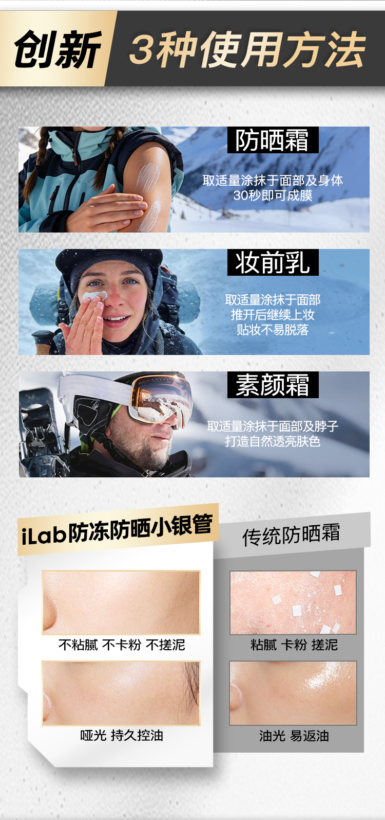 iLab艾莱博防晒小银管(防冻)精华霜/12小时/防水防汗/不辣眼睛 30g