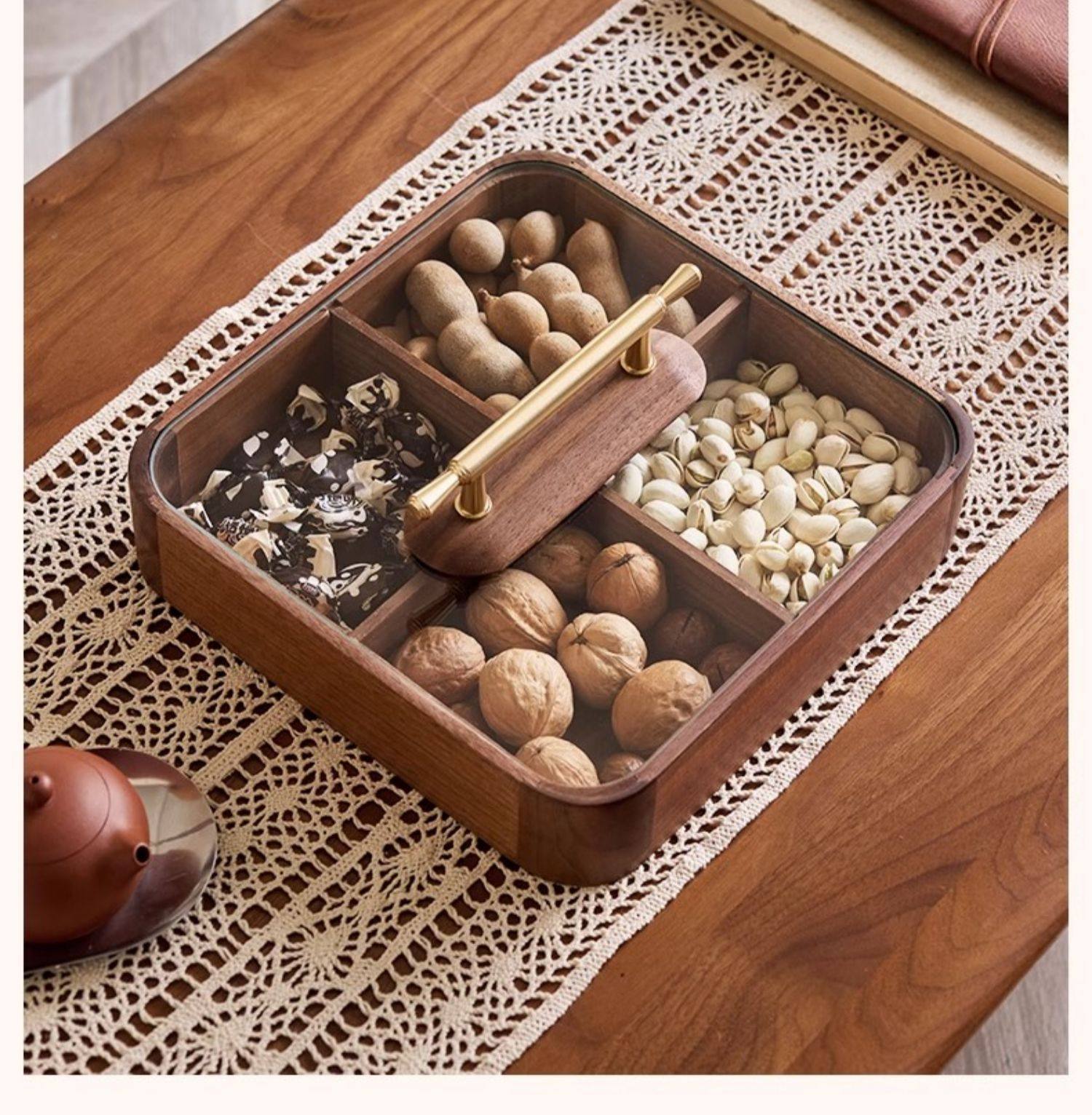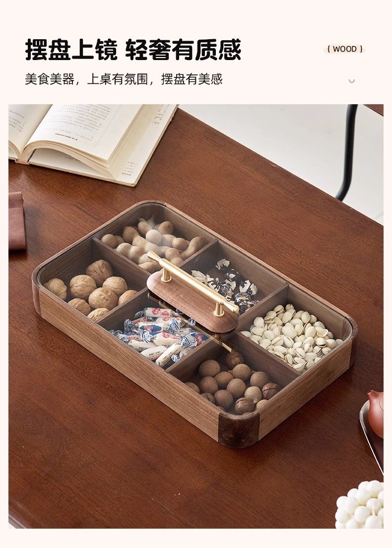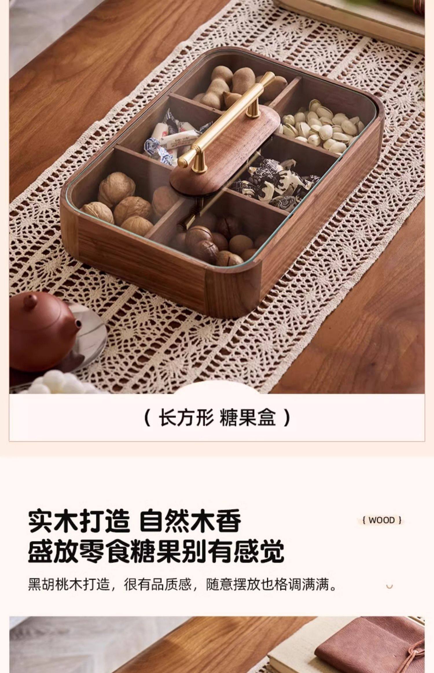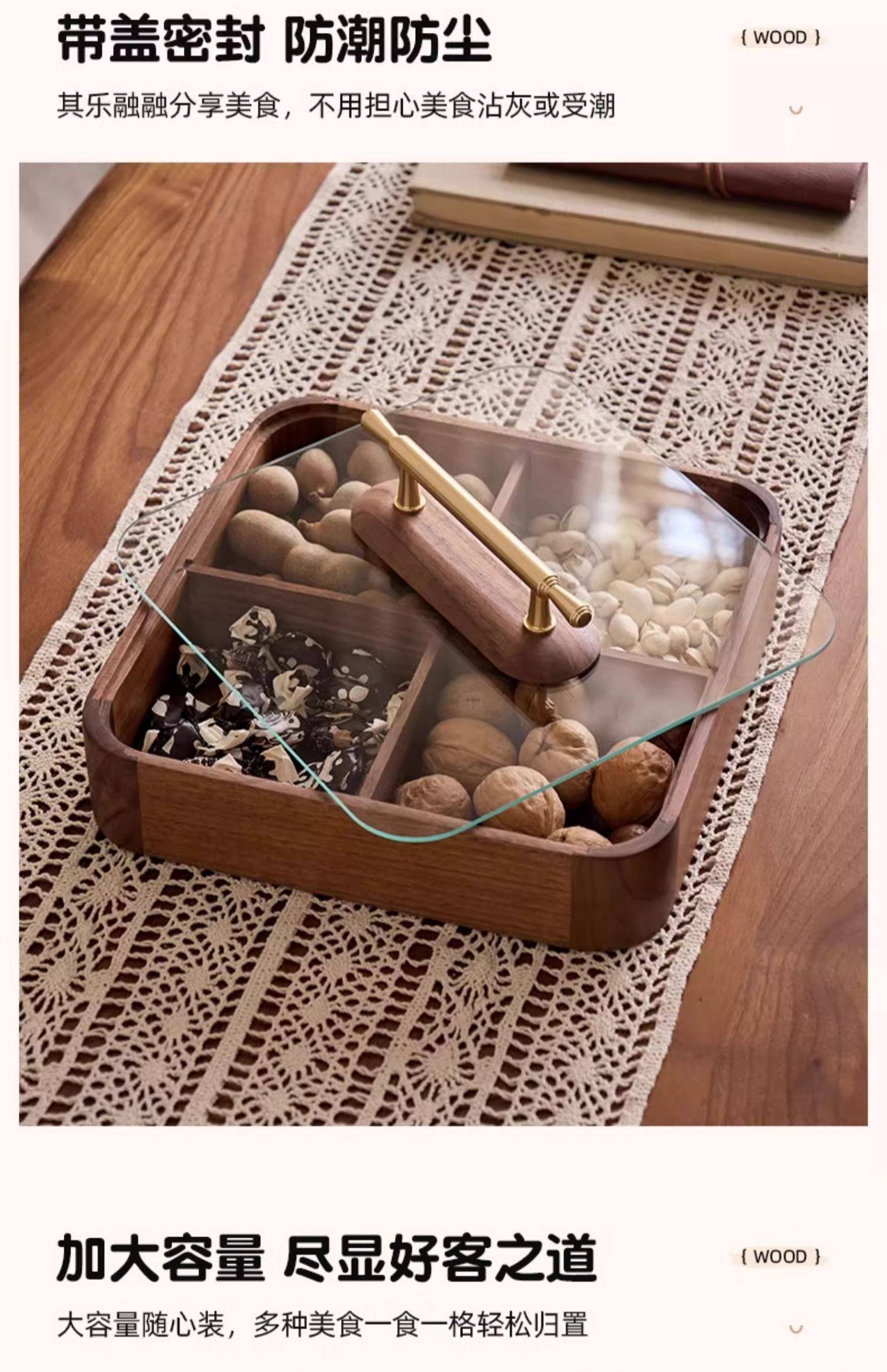 【多样屋专柜】实木方形干果盒高品轻奢家用客厅糖果盘零食坚果收纳盒