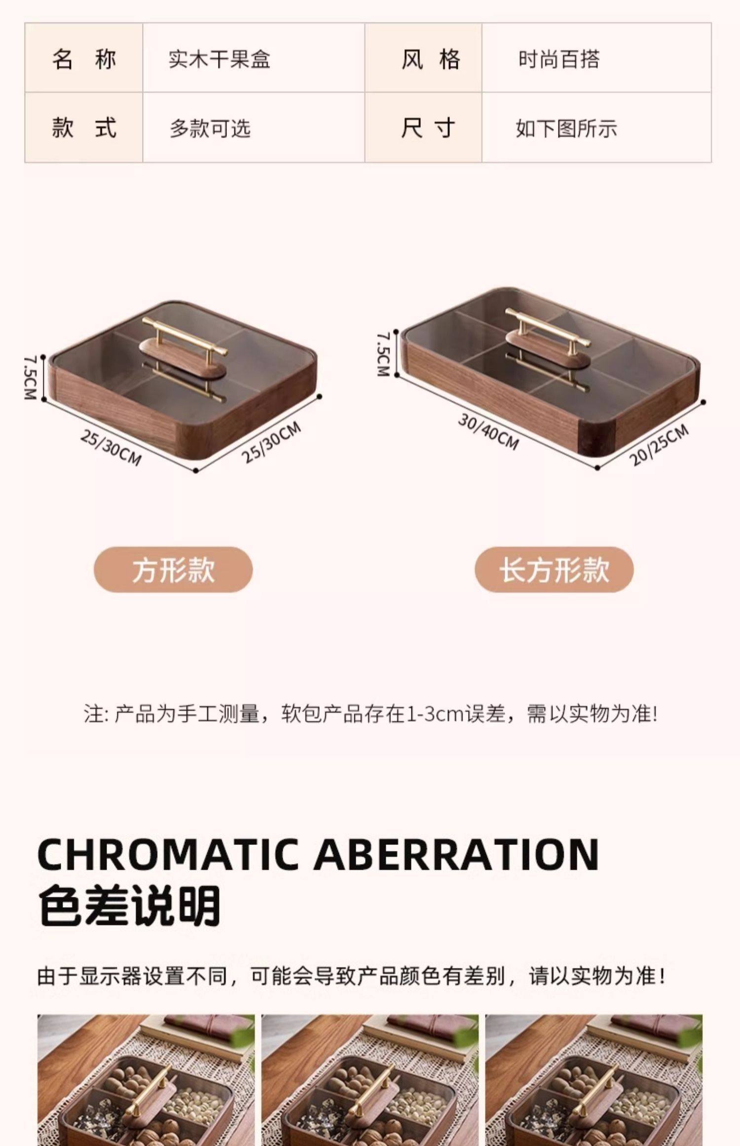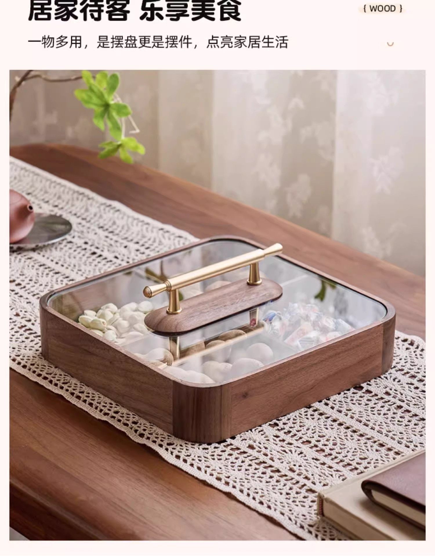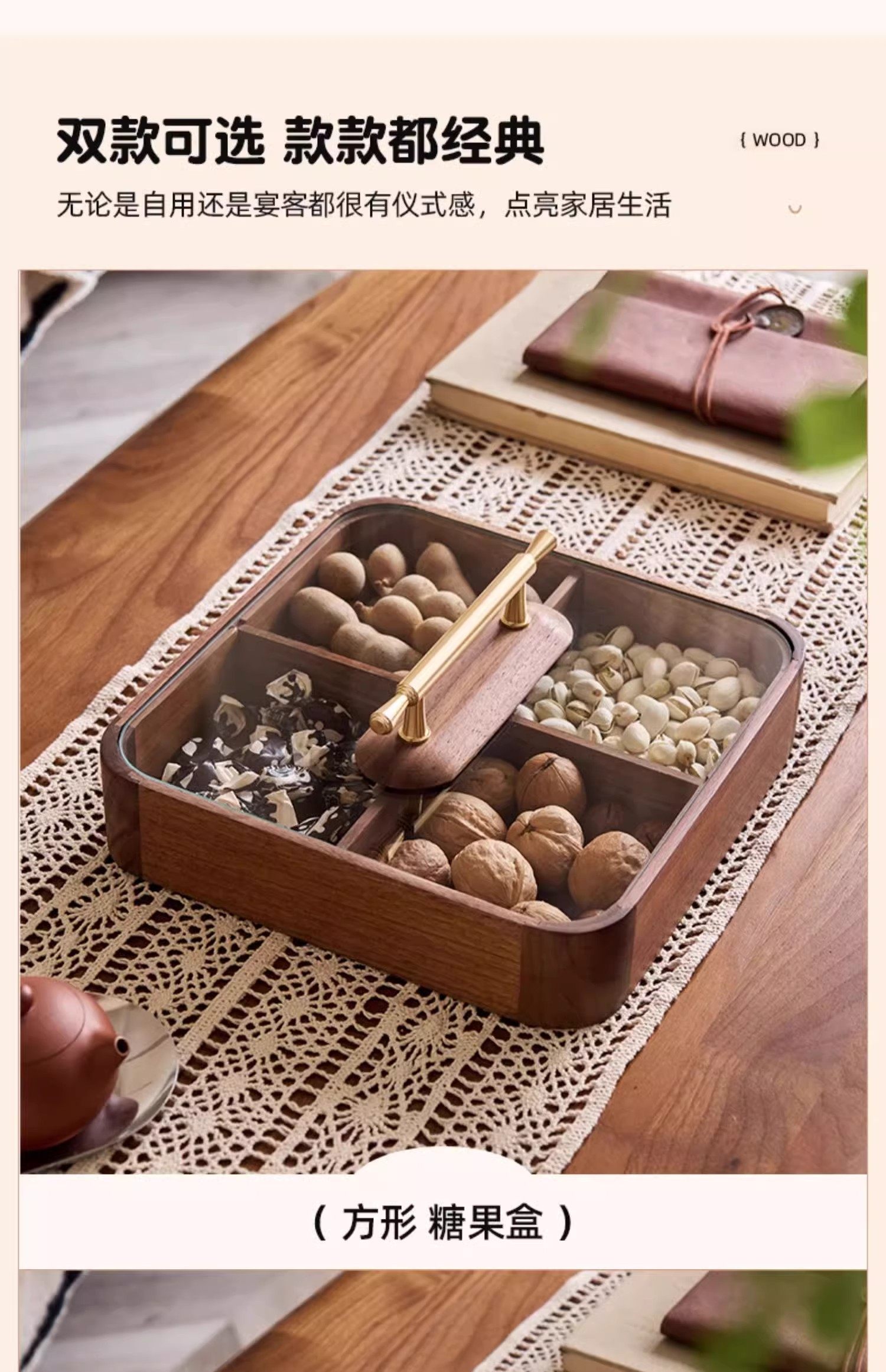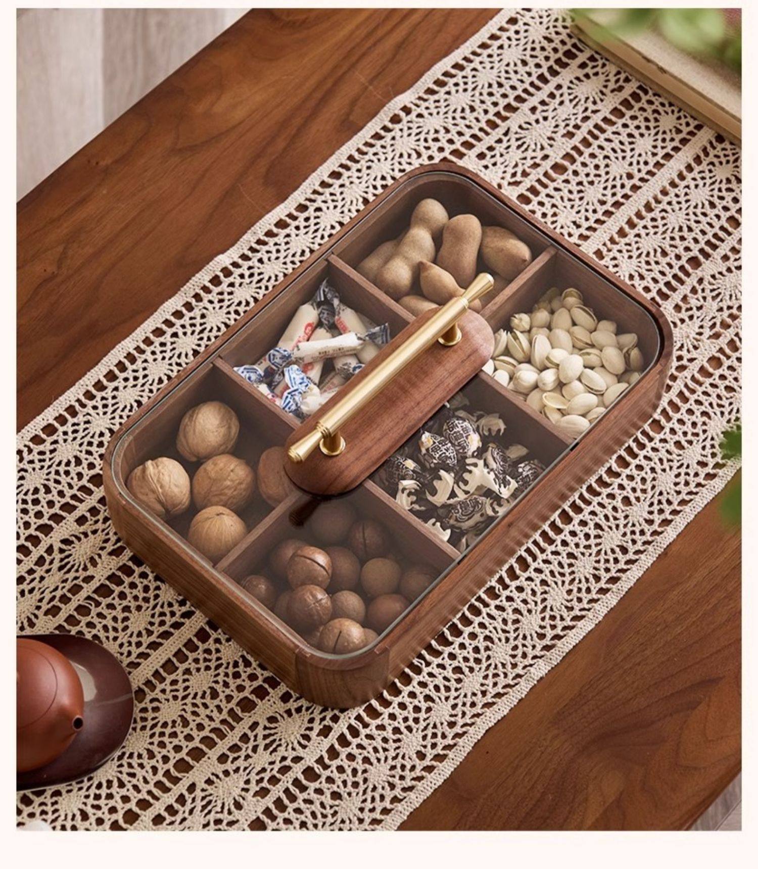 【多样屋专柜】实木方形干果盒高品轻奢家用客厅糖果盘零食坚果收纳盒