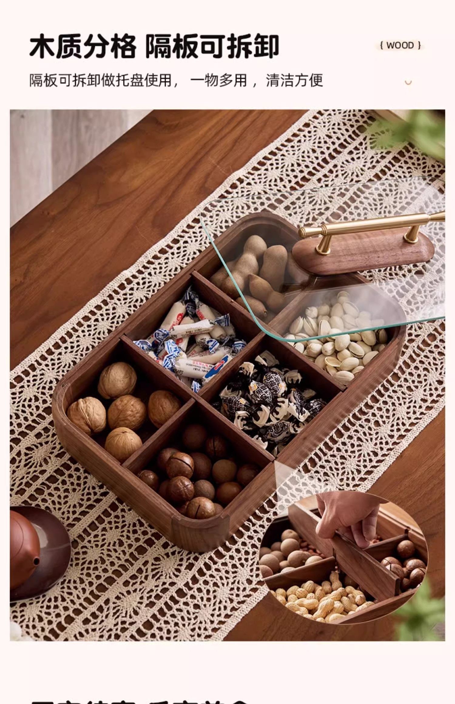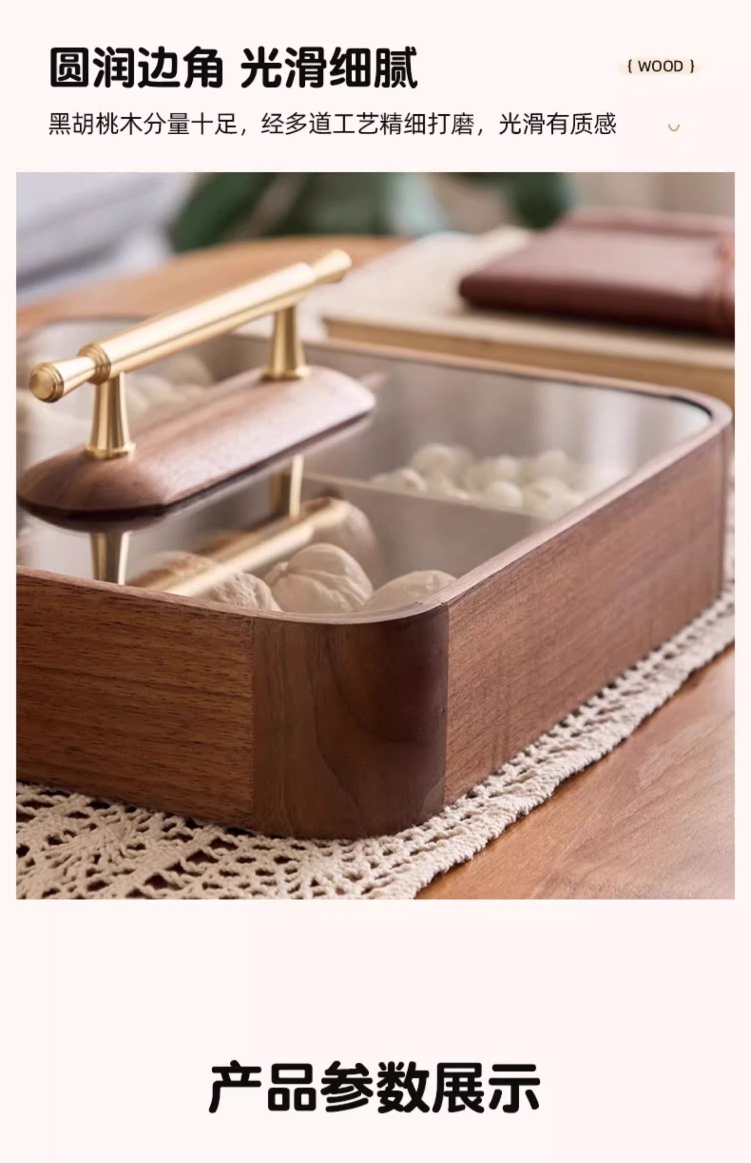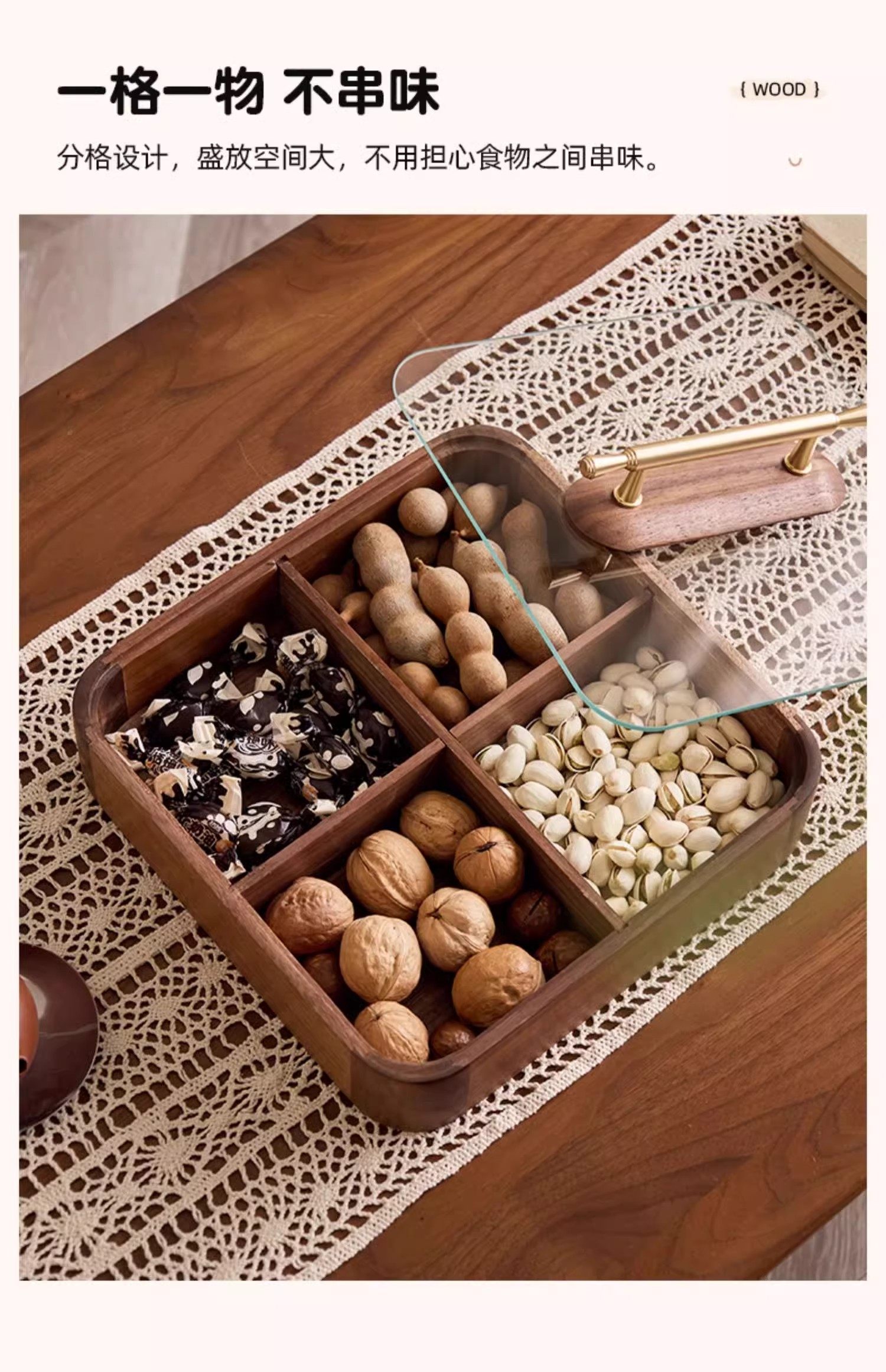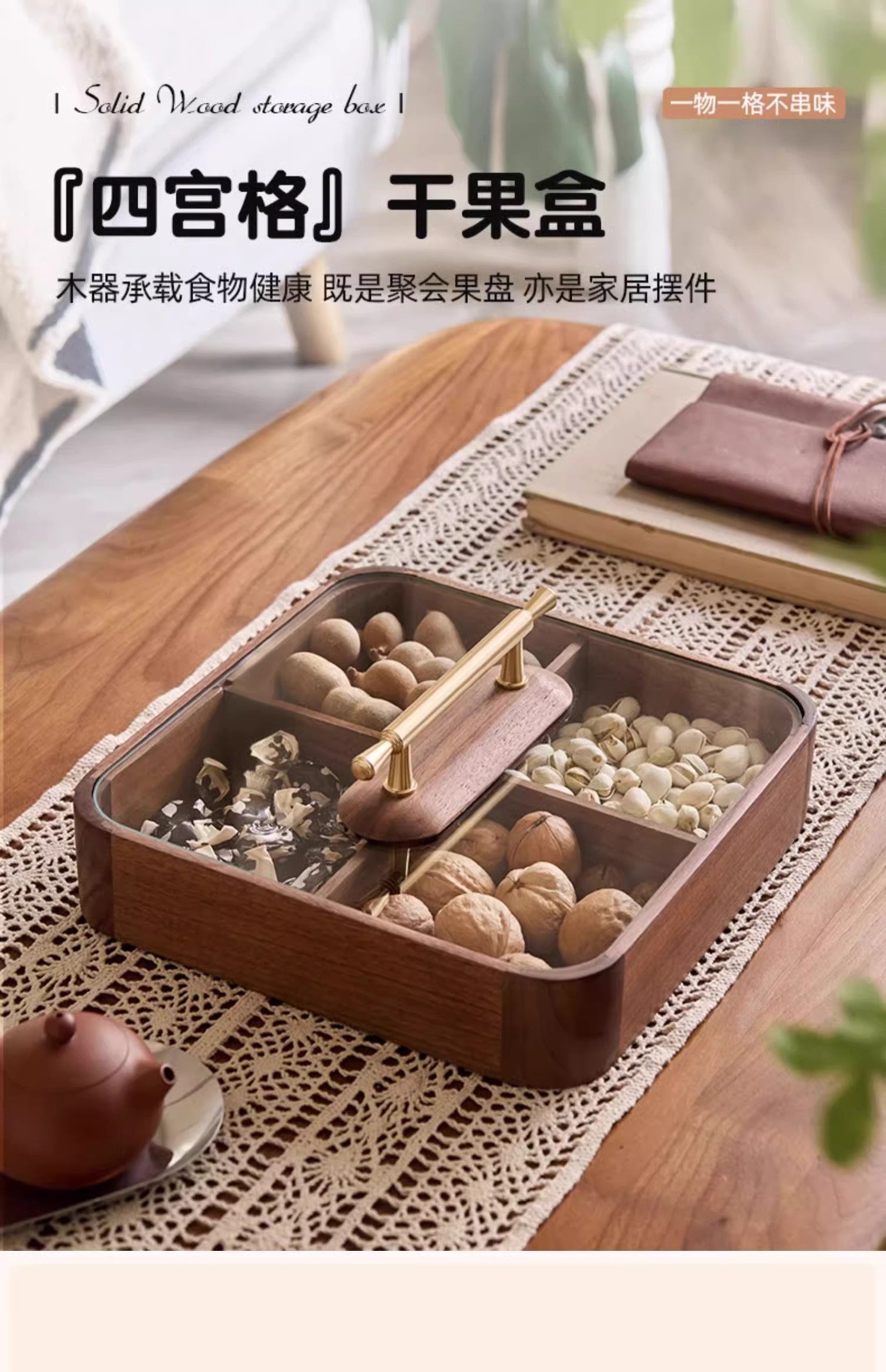 【多样屋专柜】实木方形干果盒高品轻奢家用客厅糖果盘零食坚果收纳盒