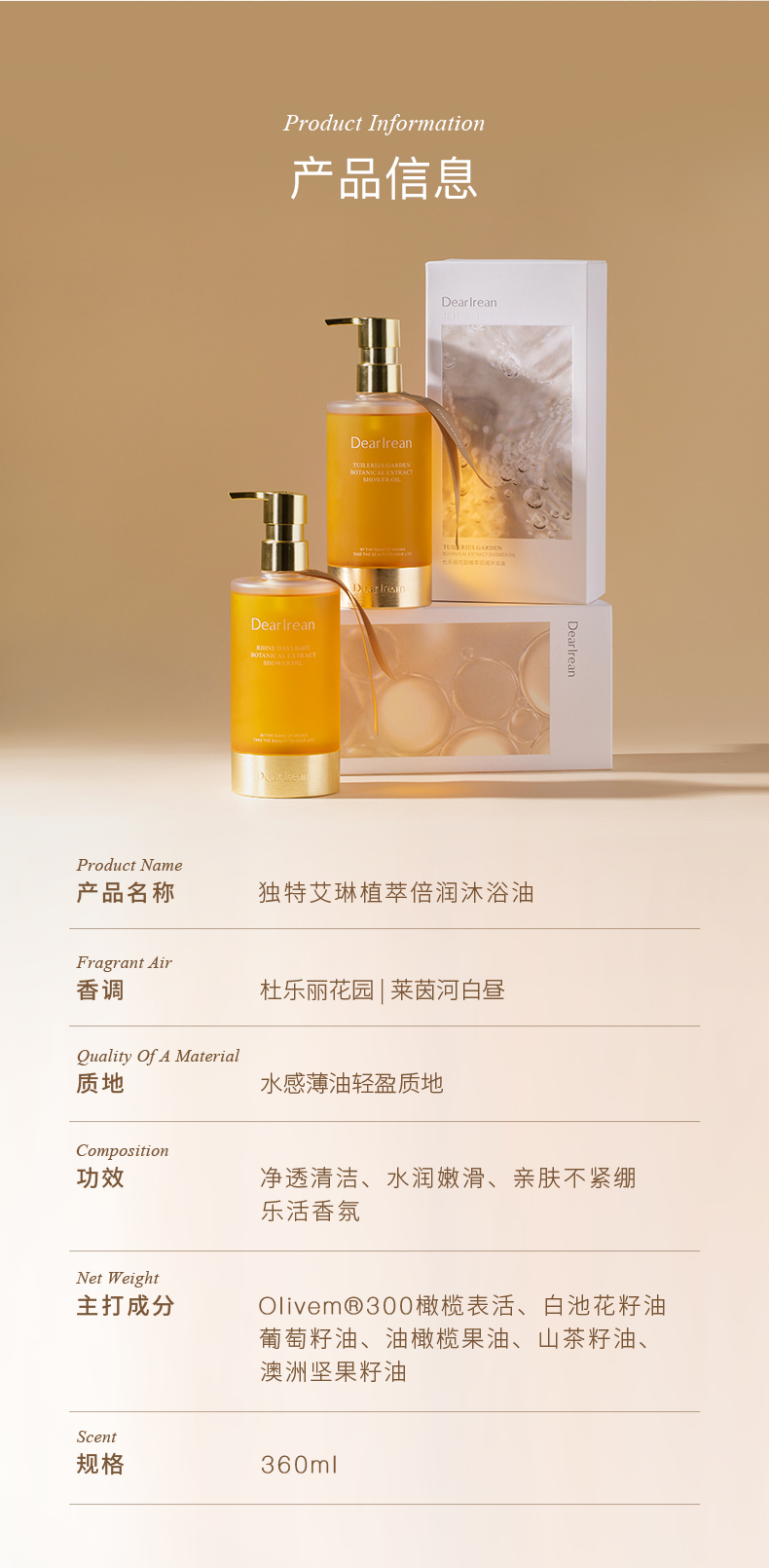 Dear lrean 独特艾琳植萃倍润沐浴油360ml【YW】