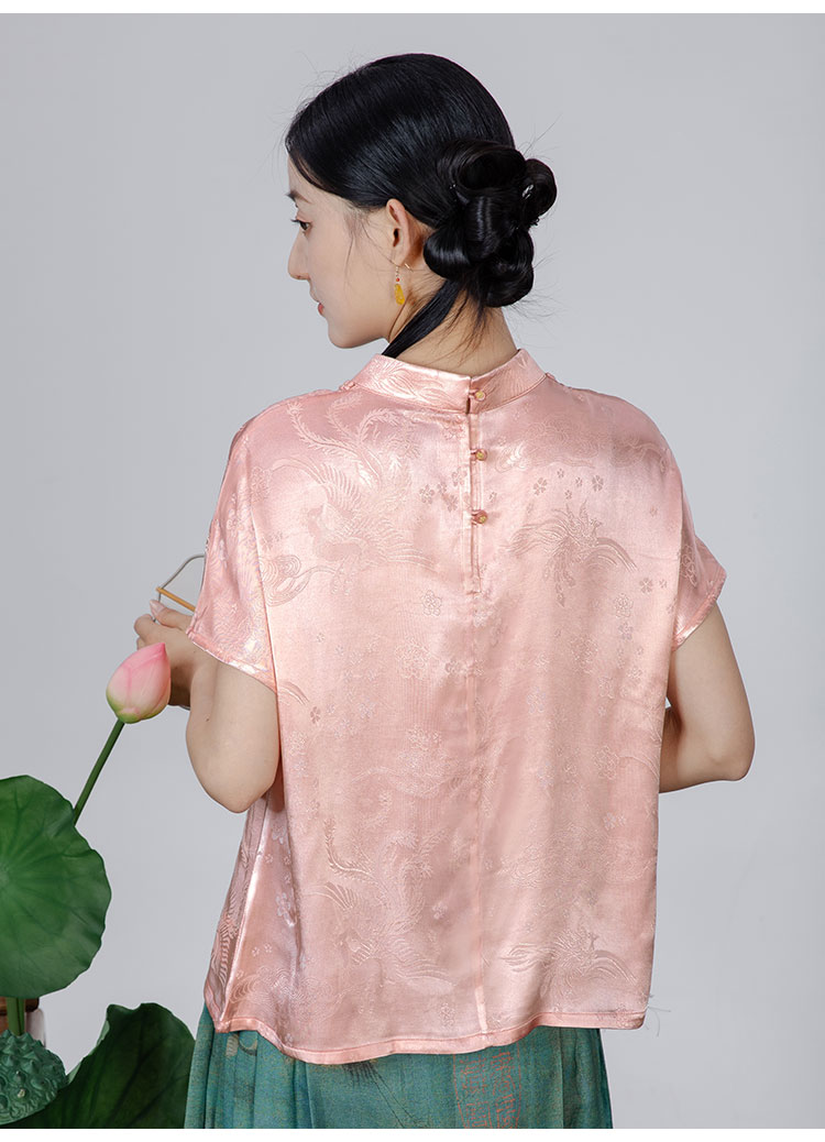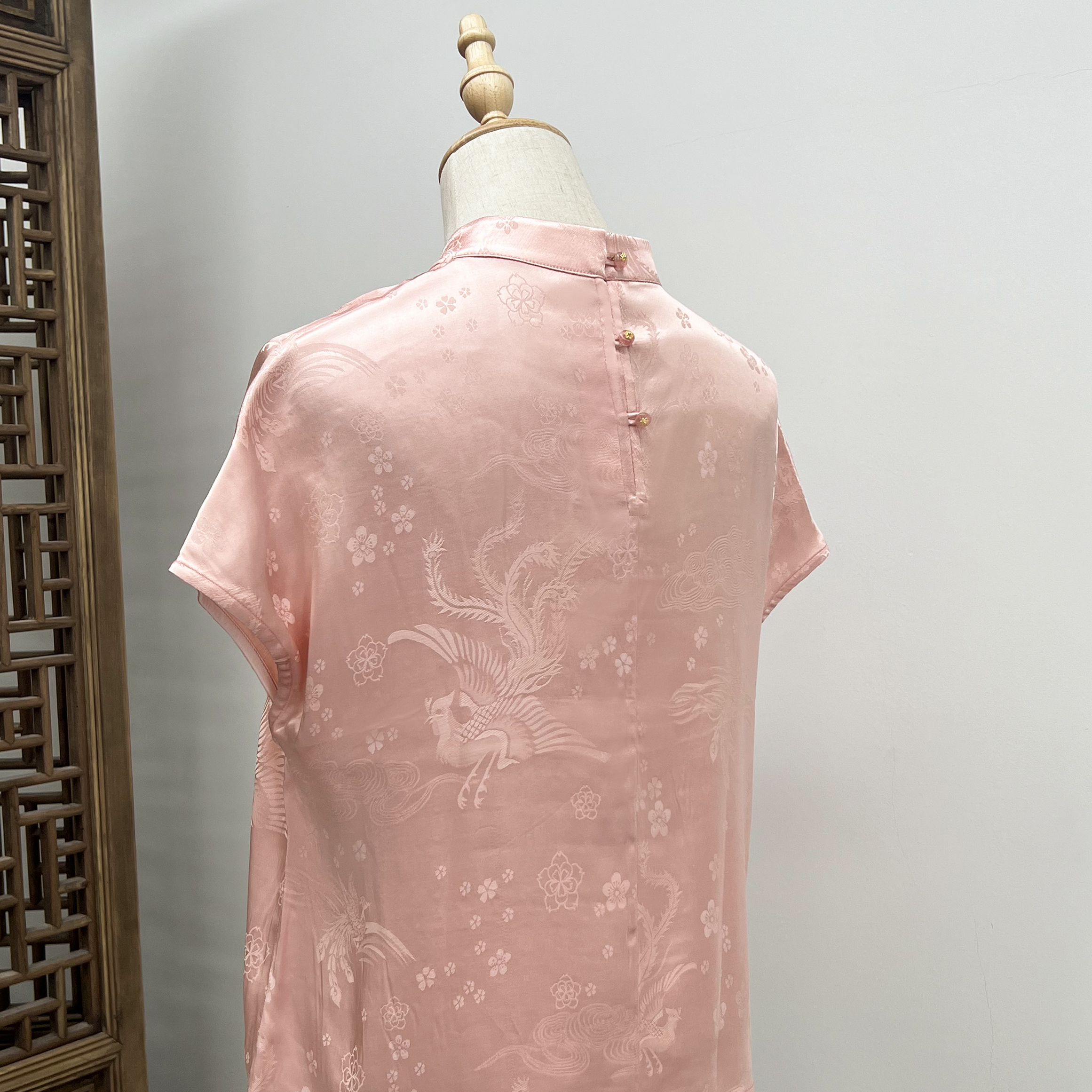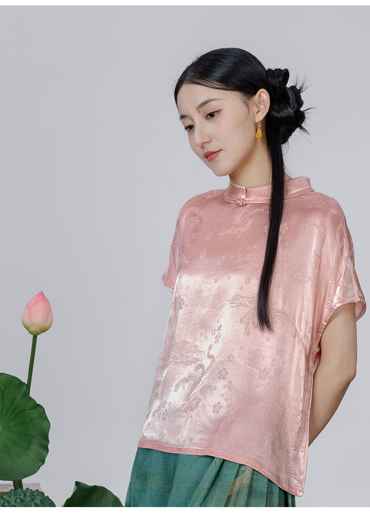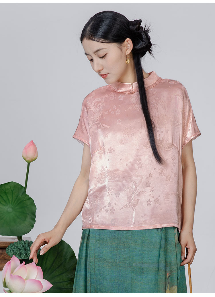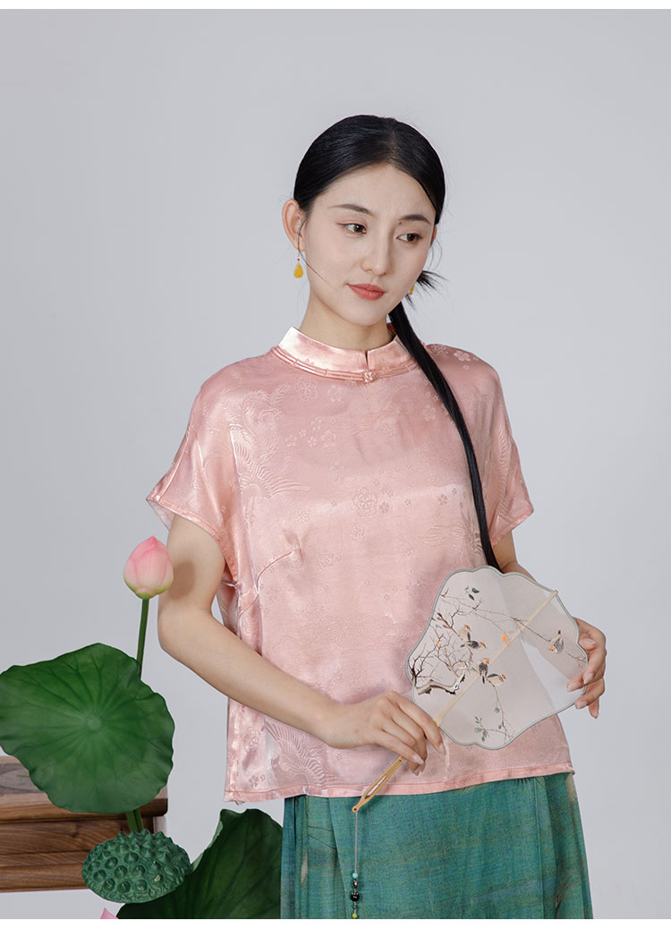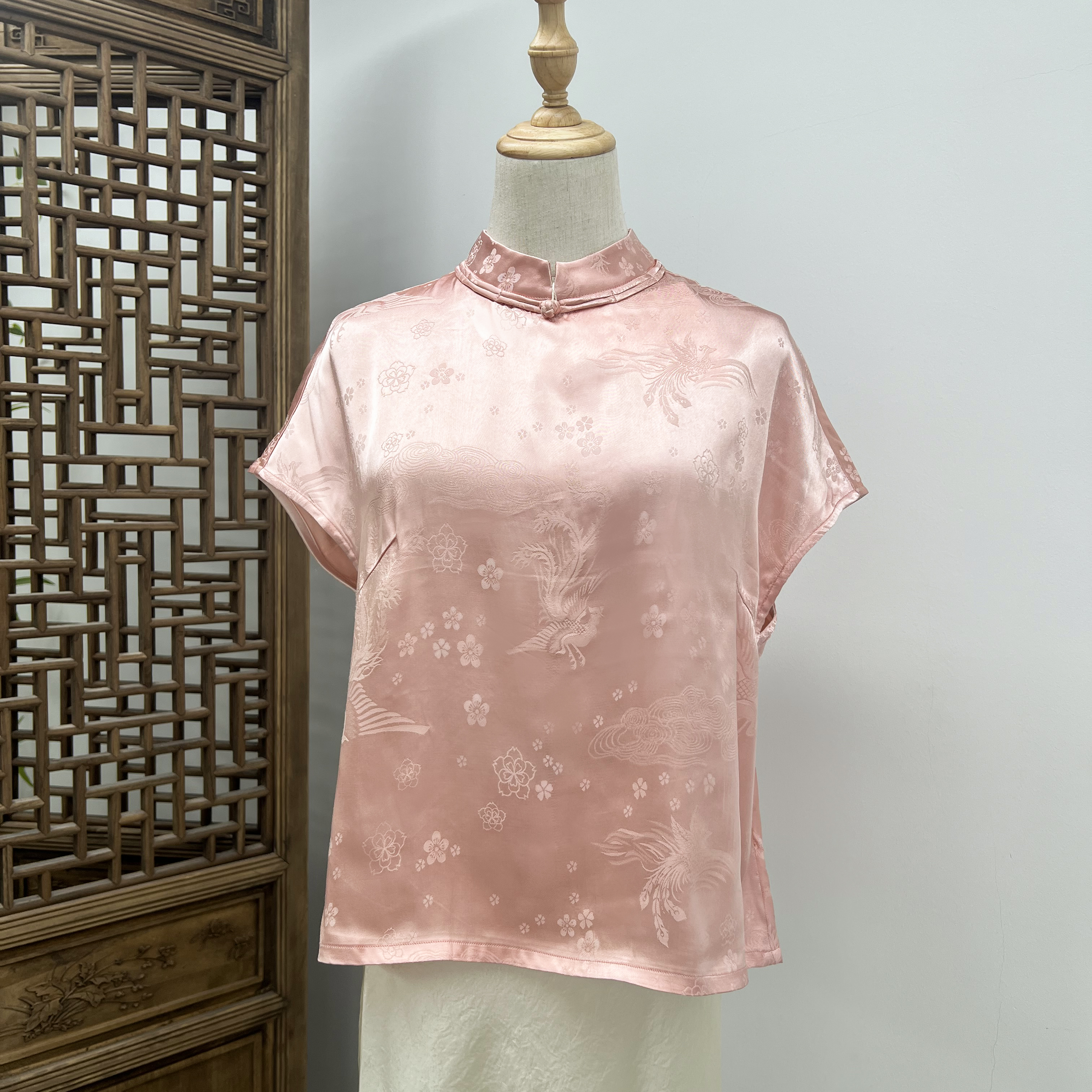 2024年春夏新款新中式国风立领提花短袖上衣XFV246201-T
