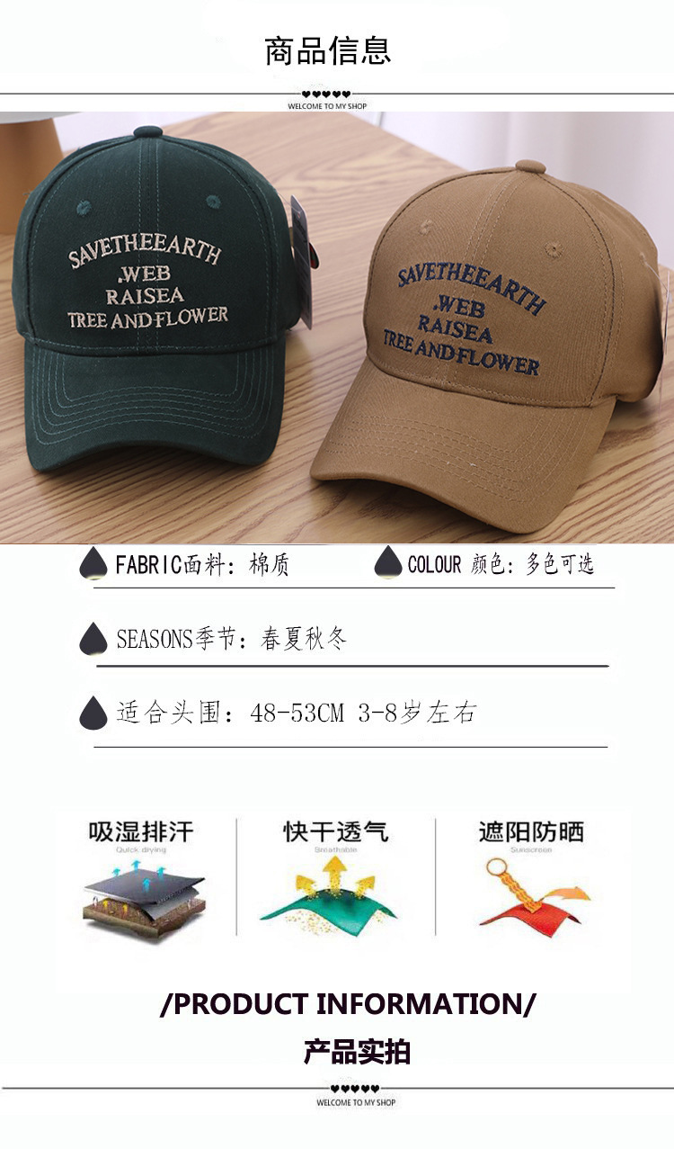 外贸新款帽子儿童鸭舌帽 欧美纯色中大童刺绣棒球帽 夏季街头嘻哈帽