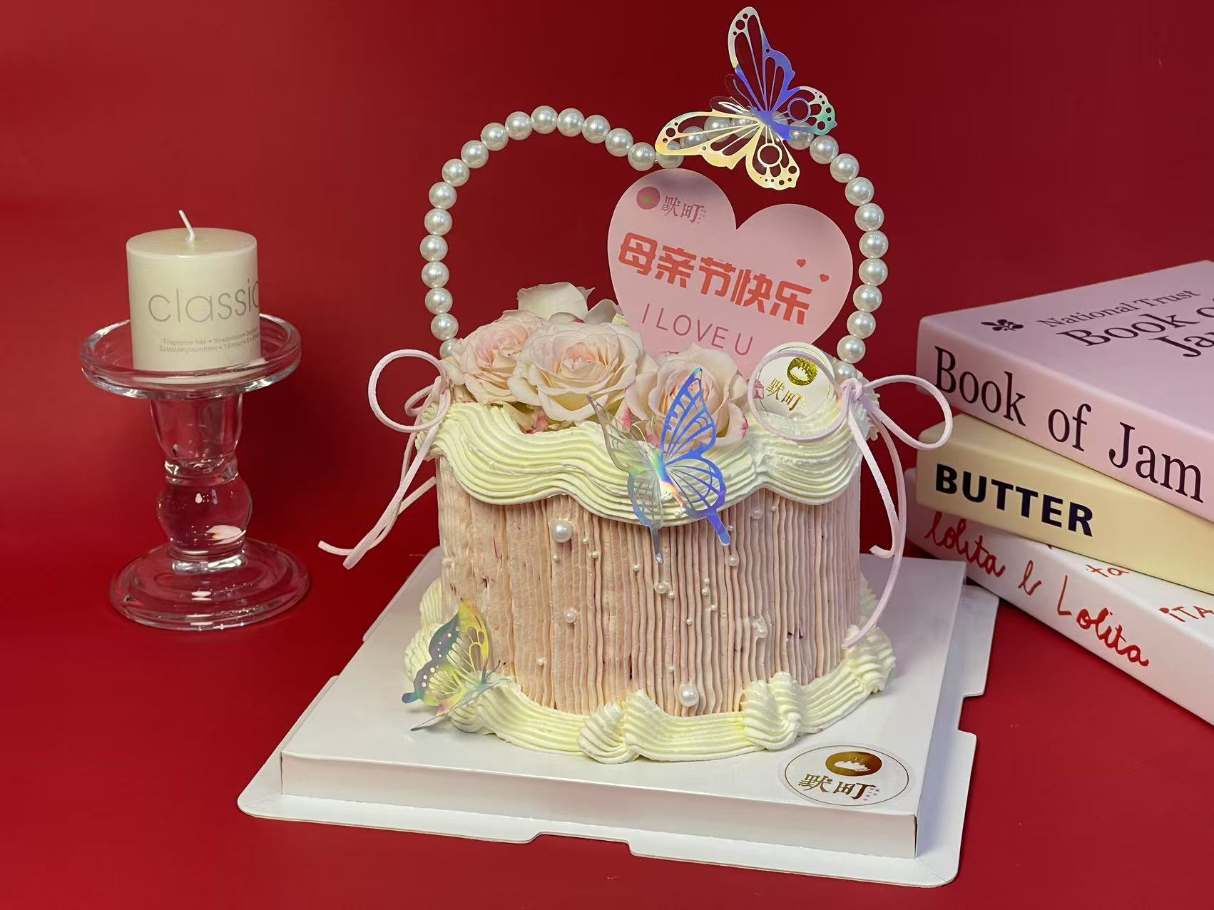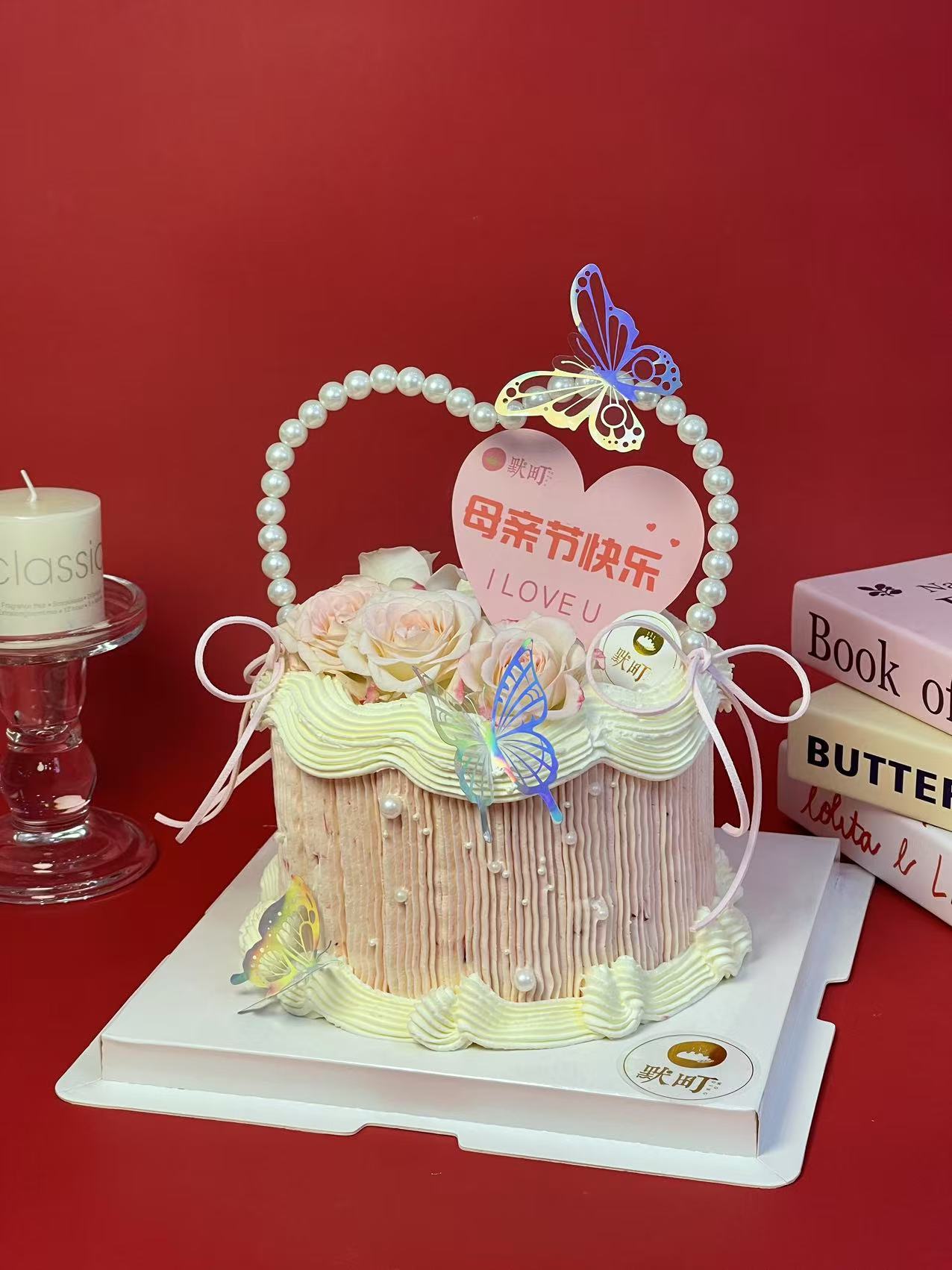 母亲节主题B款珍珠爱心(粉色鲜花款)