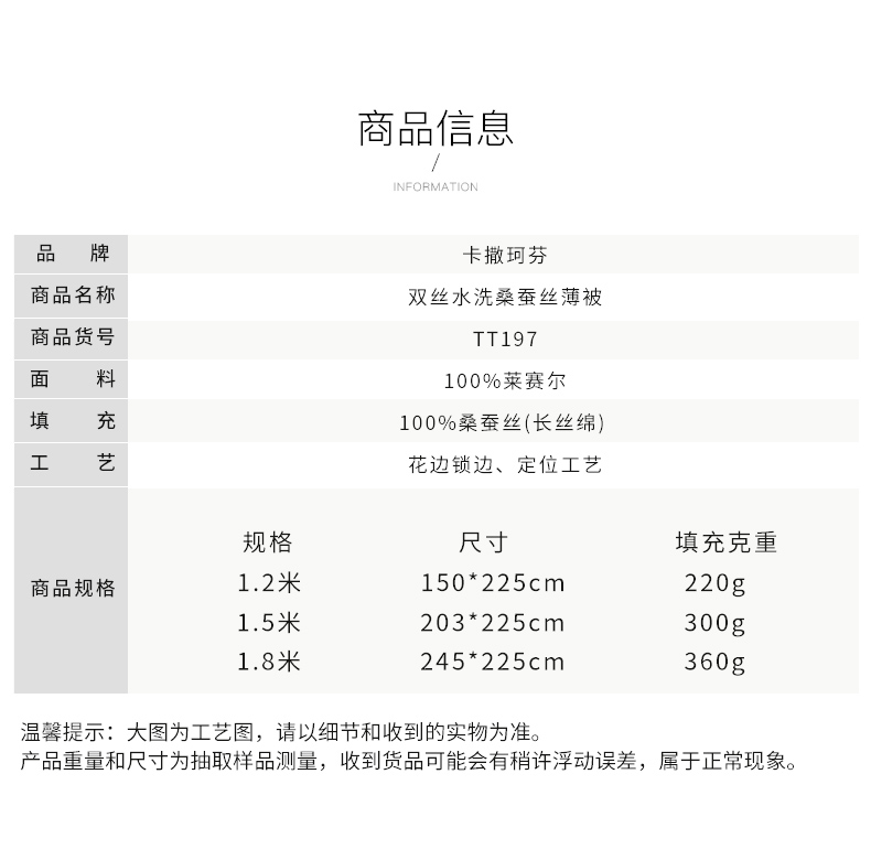 【4月】卡撒天娇 双丝水洗桑蚕丝薄被【7F童床】[广百北京路店]