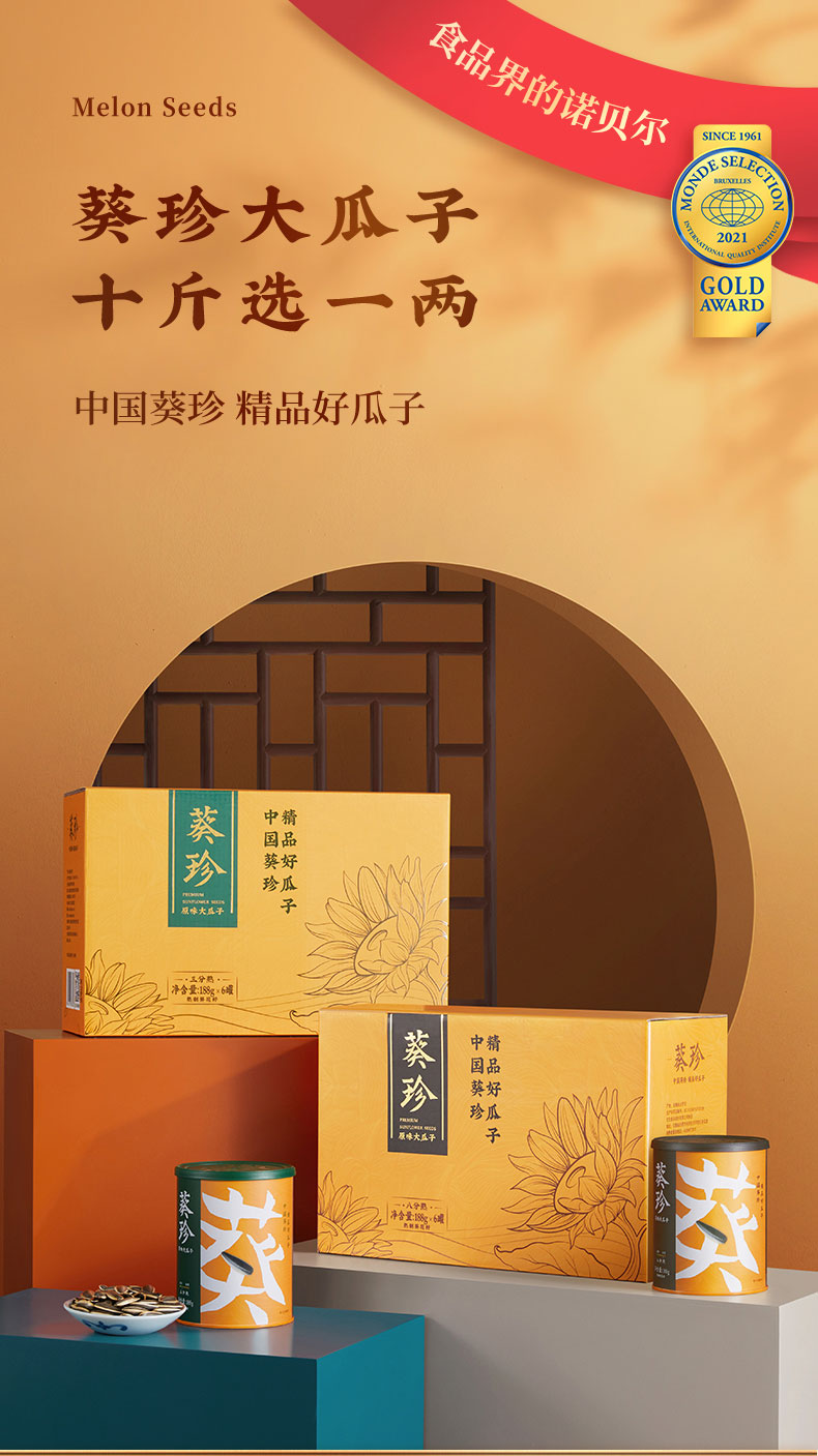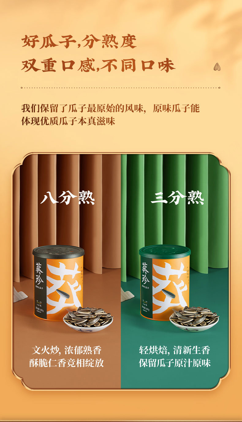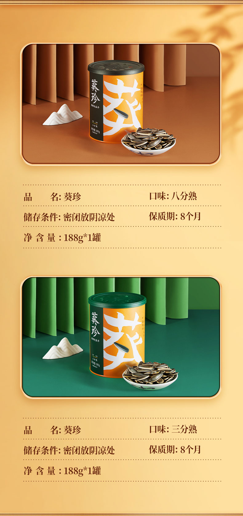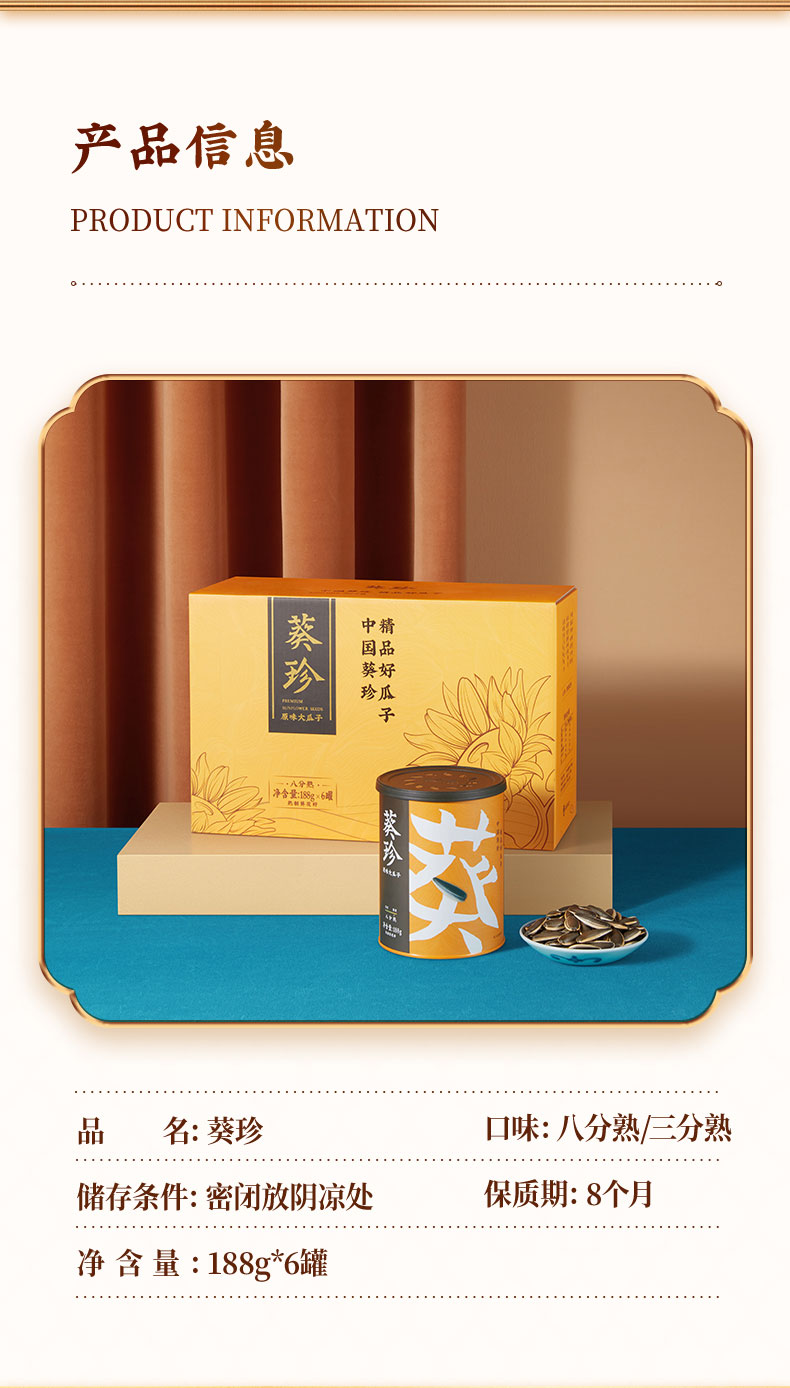 【海底捞同款】葵珍黑金罐八分熟瓜子礼盒188g*6罐(加赠瓜子10g*20包)精选大瓜子