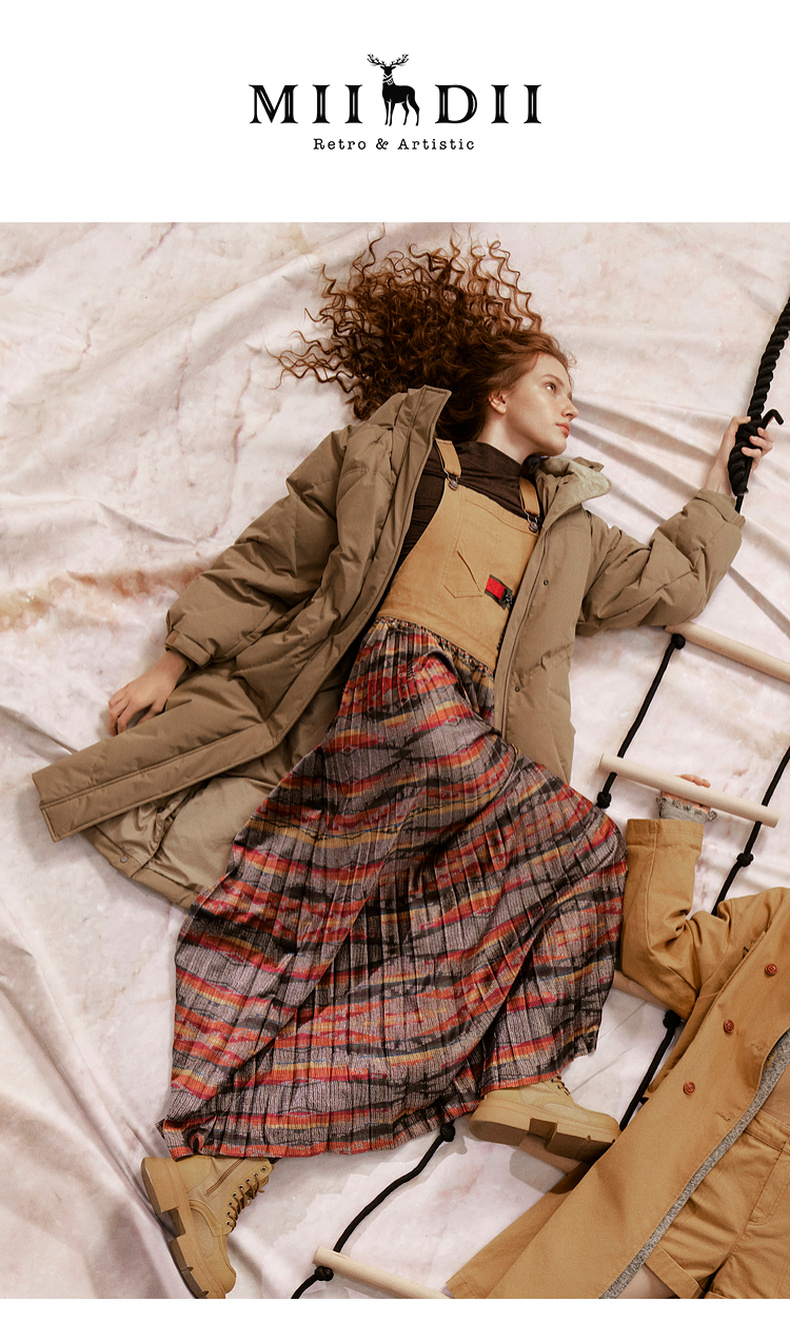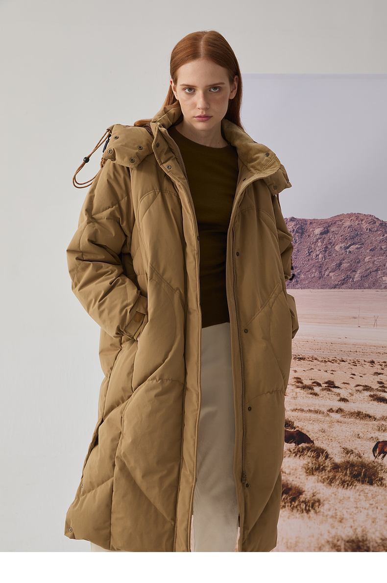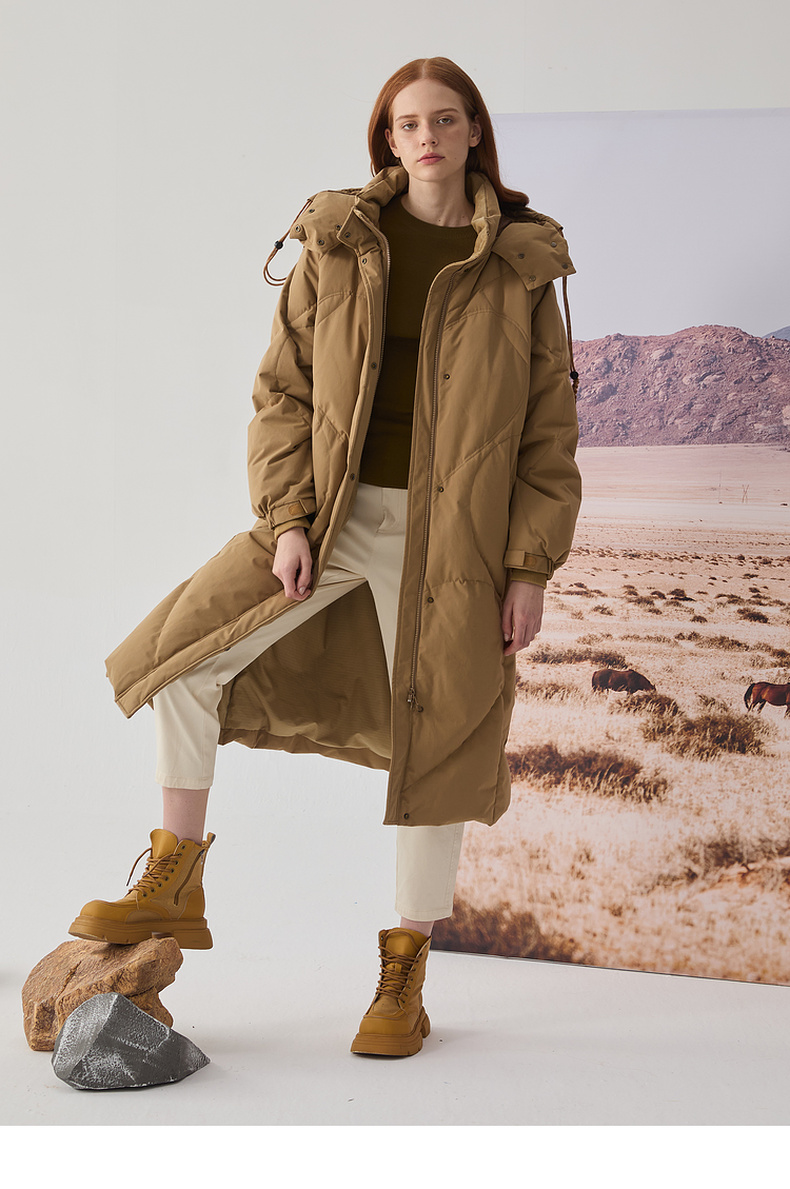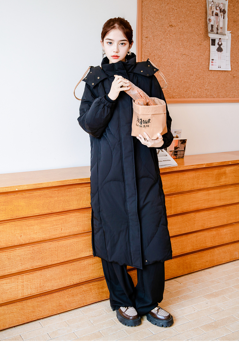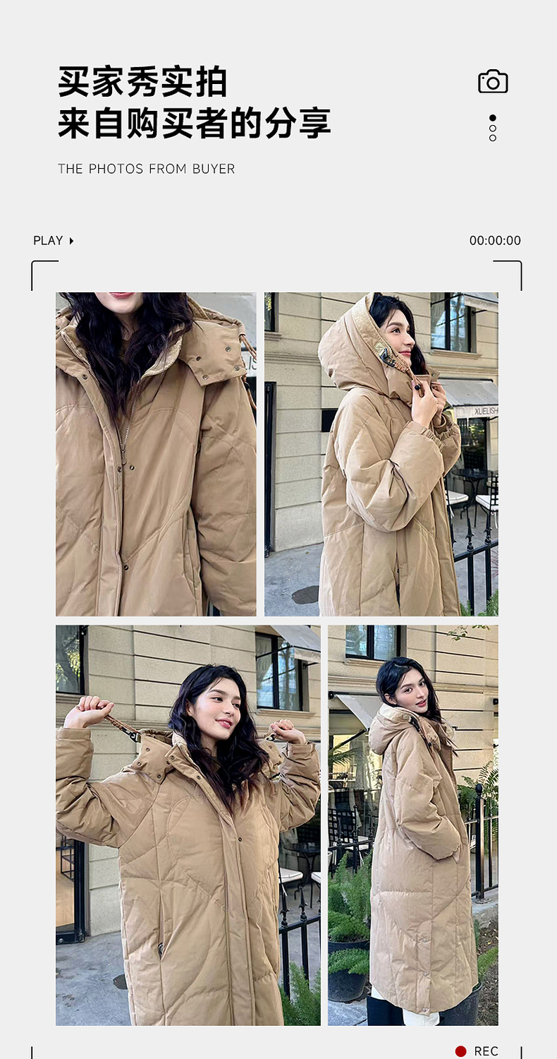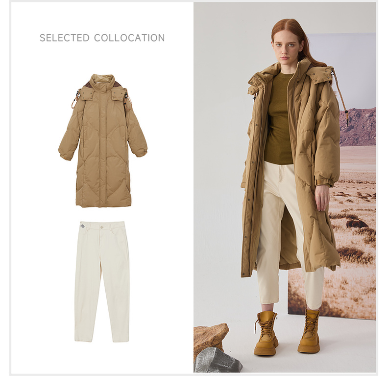 谜底中长款羽绒服女2024冬款连帽加厚款鹅绒保暖面包服244MY1551