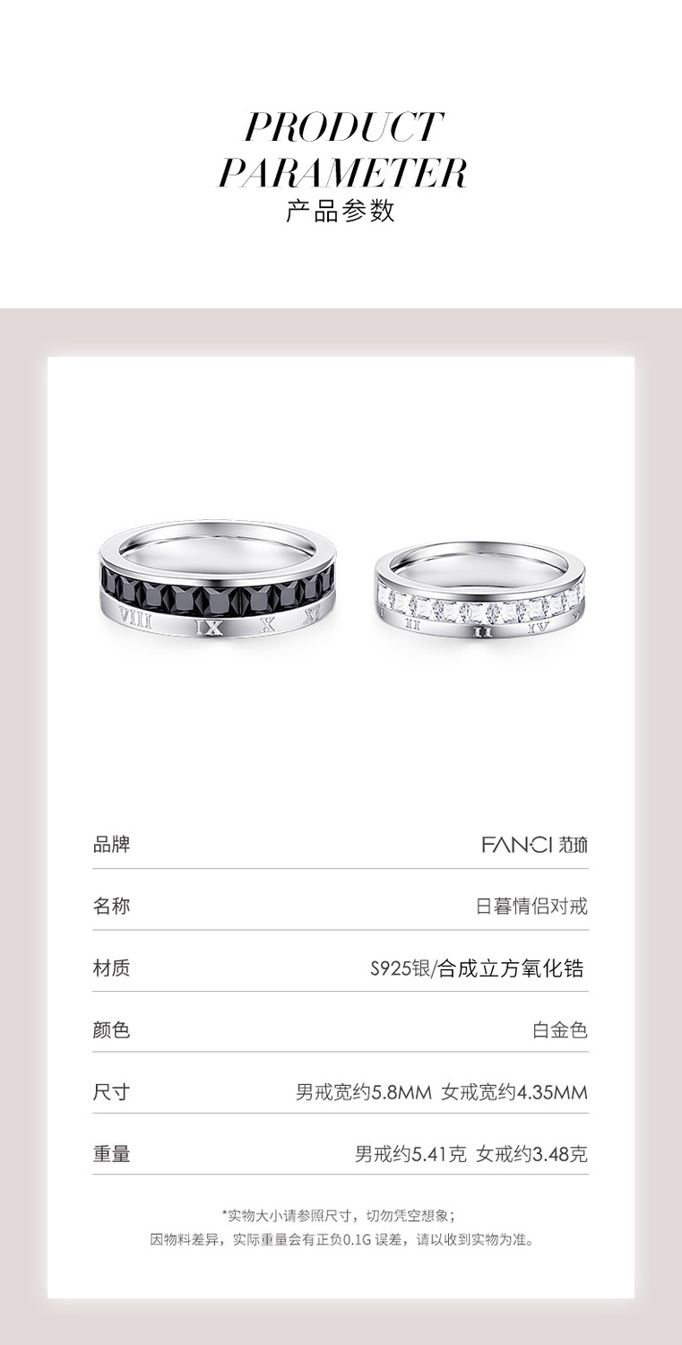 【日暮情侣对戒】Fanci范琦银饰【时光恋人系列】时尚轻奢小众