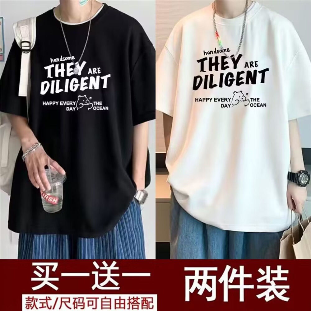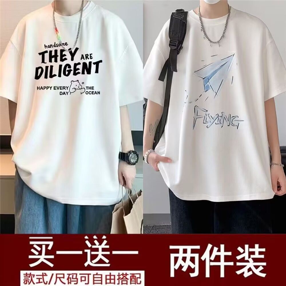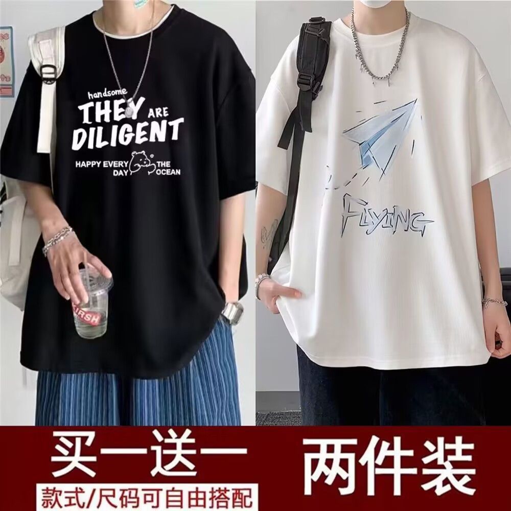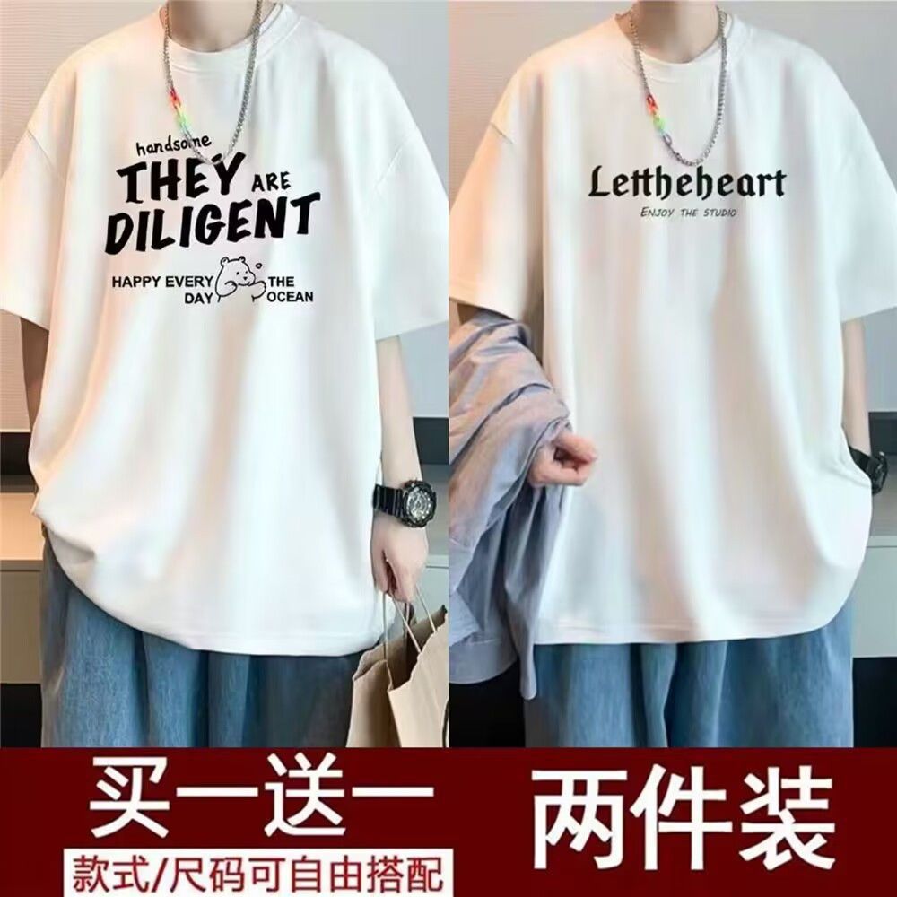 【39.9抢2件❗️百搭港风短袖T恤】轻薄透气,舒适柔软,夏季无感,男士夏季新款五分袖衣服潮牌半袖男体恤父亲节礼物新年礼盒年货礼盒