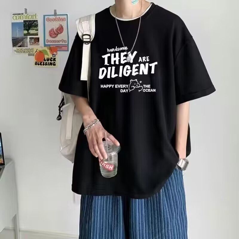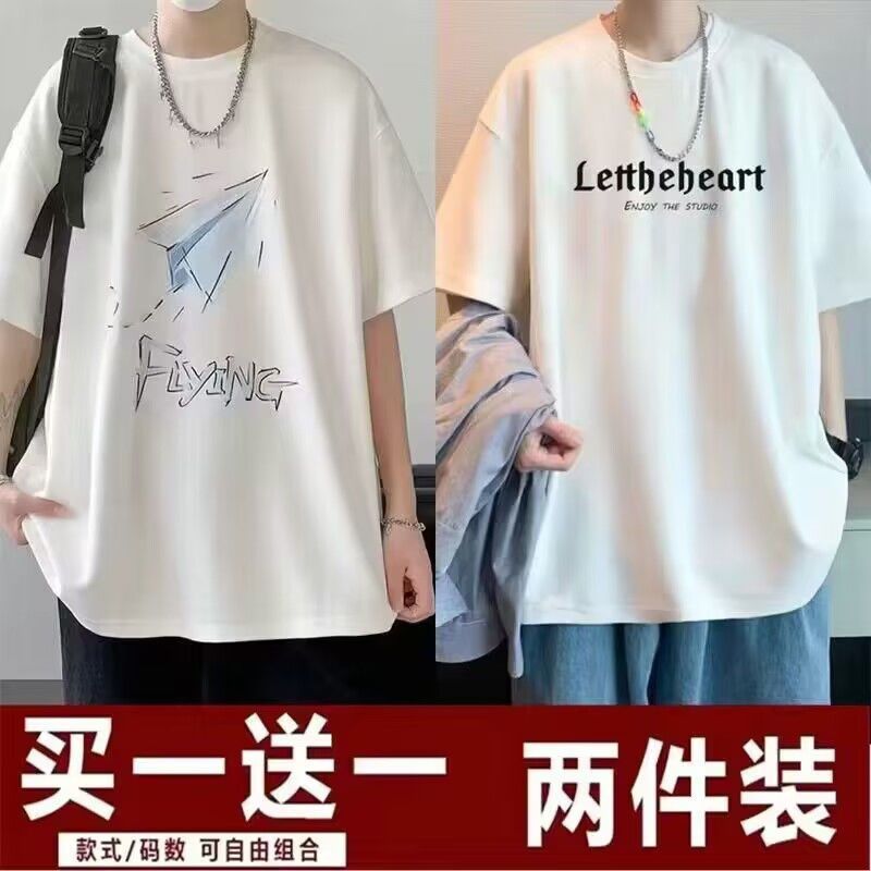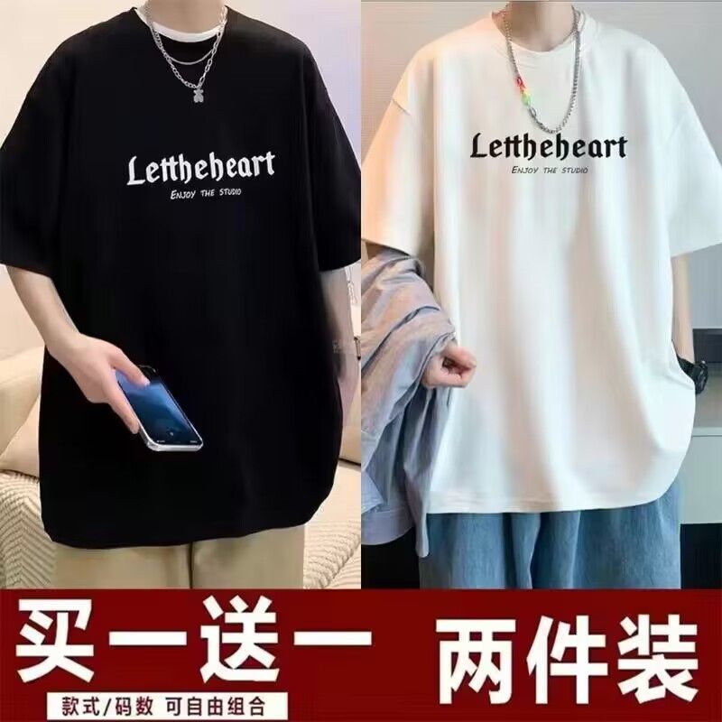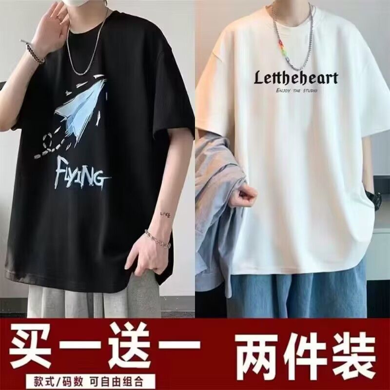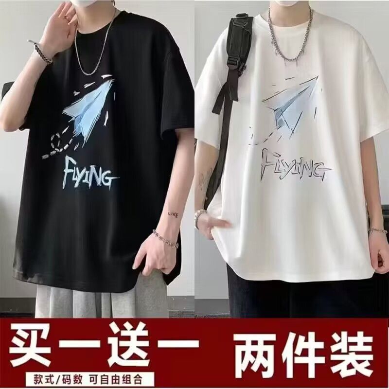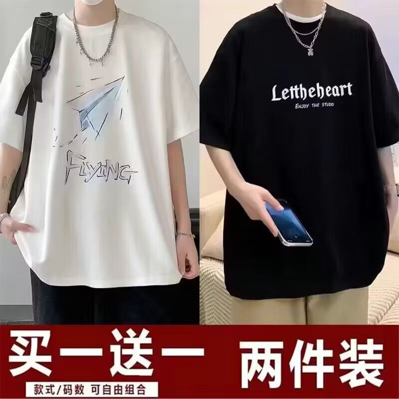 【39.9抢2件❗️百搭港风短袖T恤】轻薄透气,舒适柔软,夏季无感,男士夏季新款五分袖衣服潮牌半袖男体恤父亲节礼物新年礼盒年货礼盒