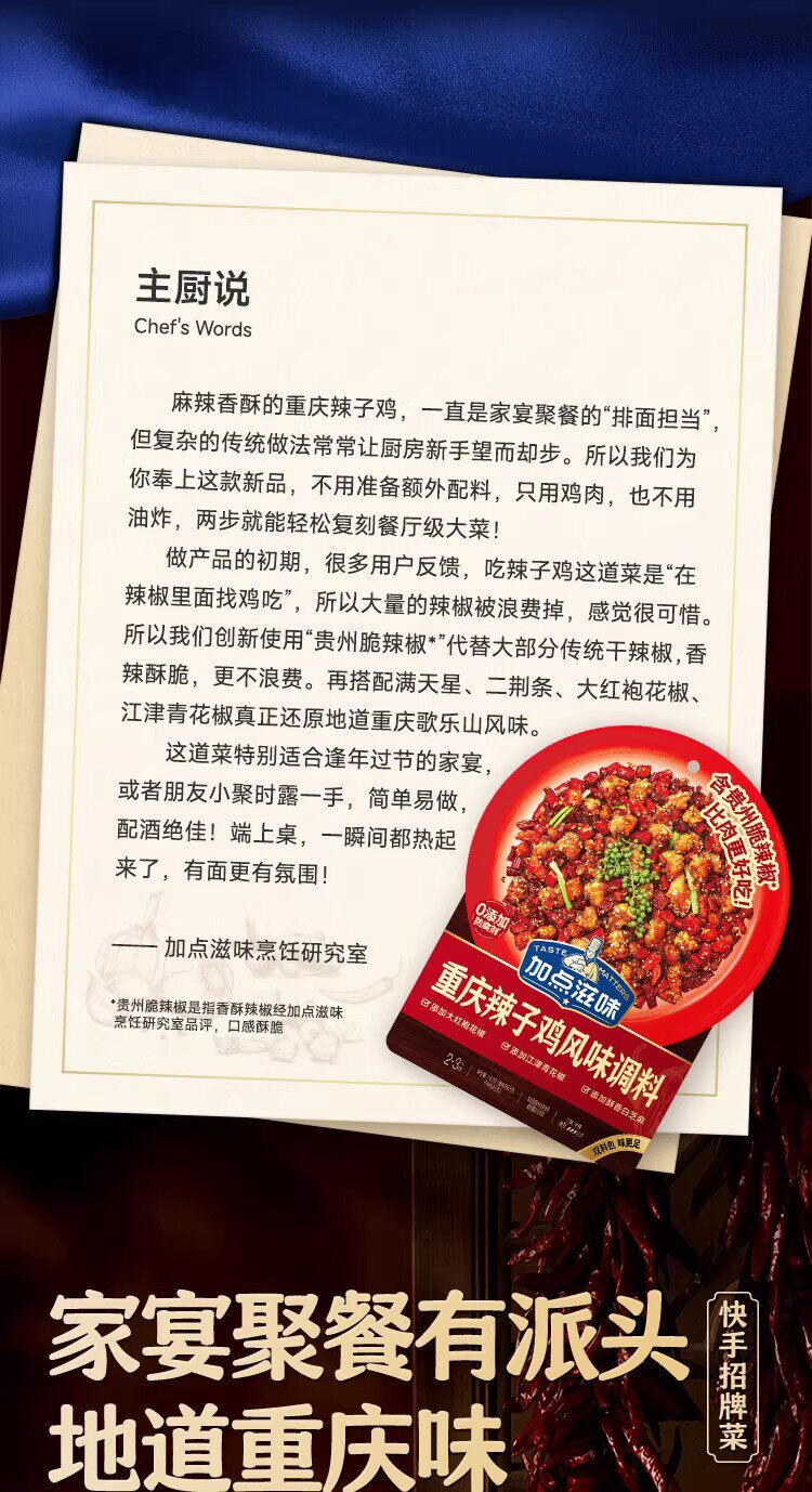 加点滋味辣子鸡调料包肉蟹煲避风塘炒虾松饼亚麻籽芝麻盐重庆系列 商品缩略图0 加点滋味辣子鸡调料包肉蟹煲避风塘炒虾松饼亚麻籽芝麻盐重庆系列 商品缩略图1 加点滋味辣子鸡调料包肉蟹煲避风塘炒虾松饼亚麻籽芝麻盐重庆系列 商品缩略图2 加点滋味辣子鸡调料包肉蟹煲避风塘炒虾松饼亚麻籽芝麻盐重庆系列 商品缩略图3 加点滋味辣子鸡调料包肉蟹煲避风塘炒虾松饼亚麻籽芝麻盐重庆系列 商品缩略图4