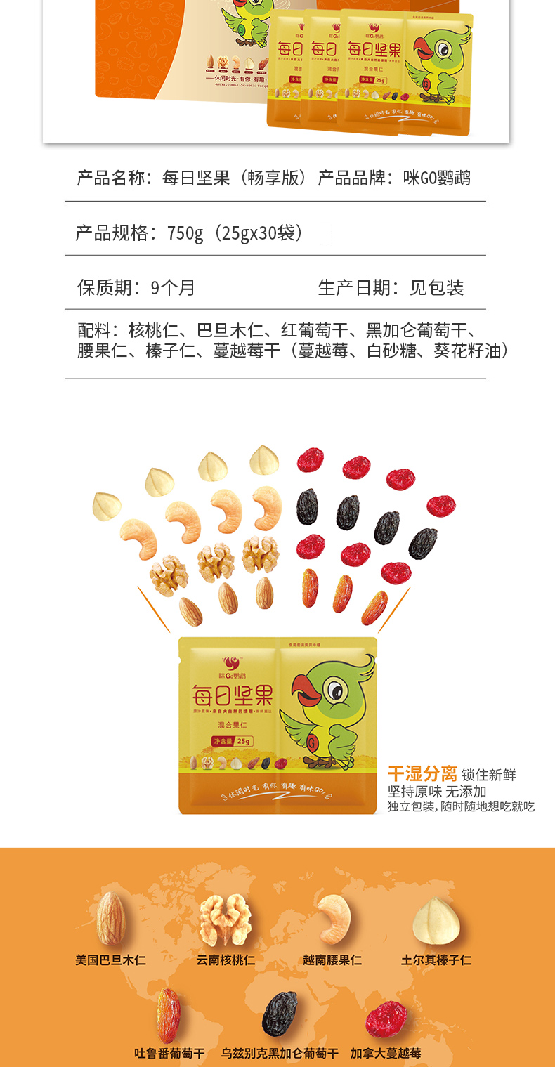 【广西帮扶】咪GO鹦鹉丨每日坚果(畅享装) 750g(25g*30袋)