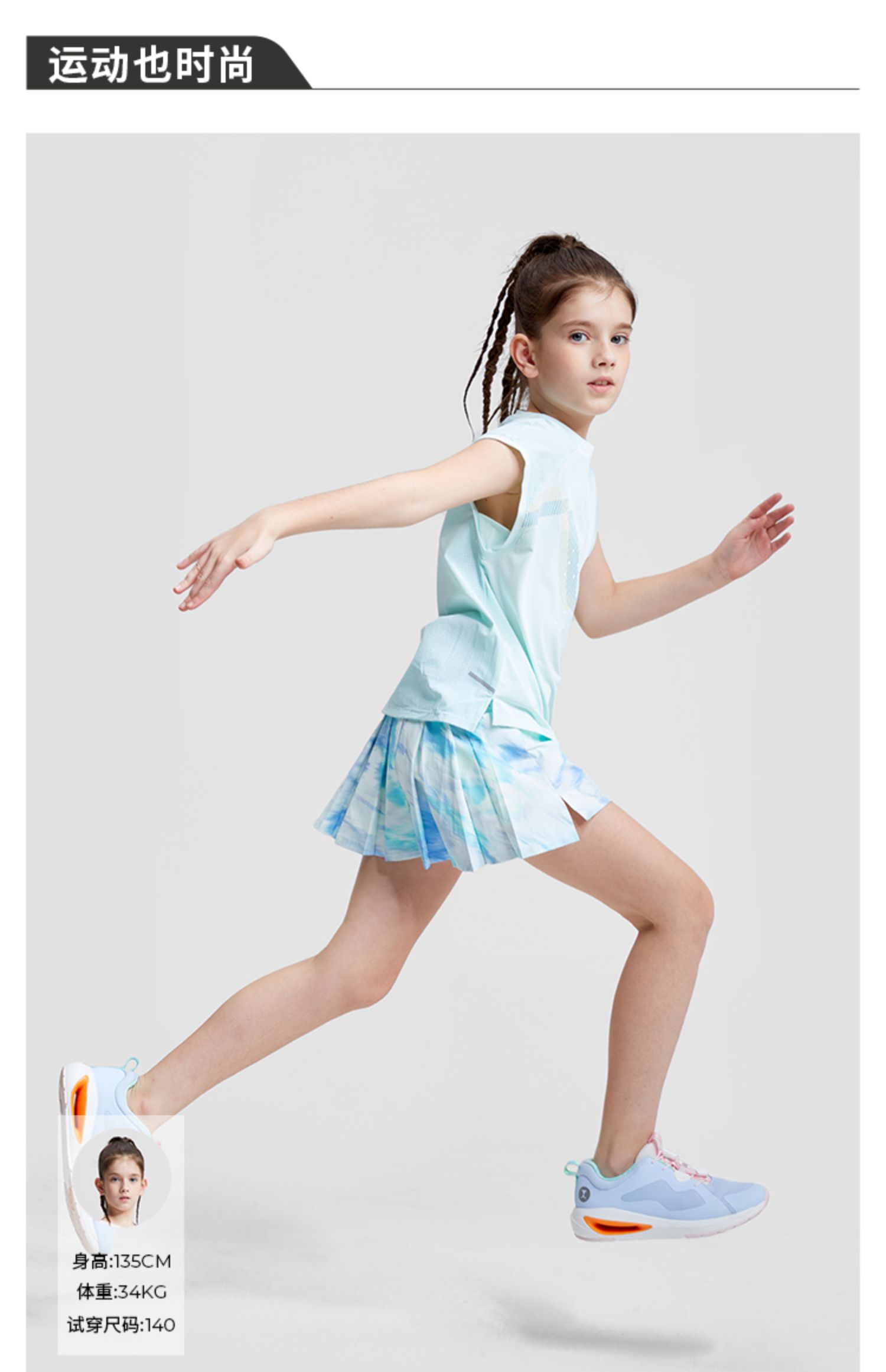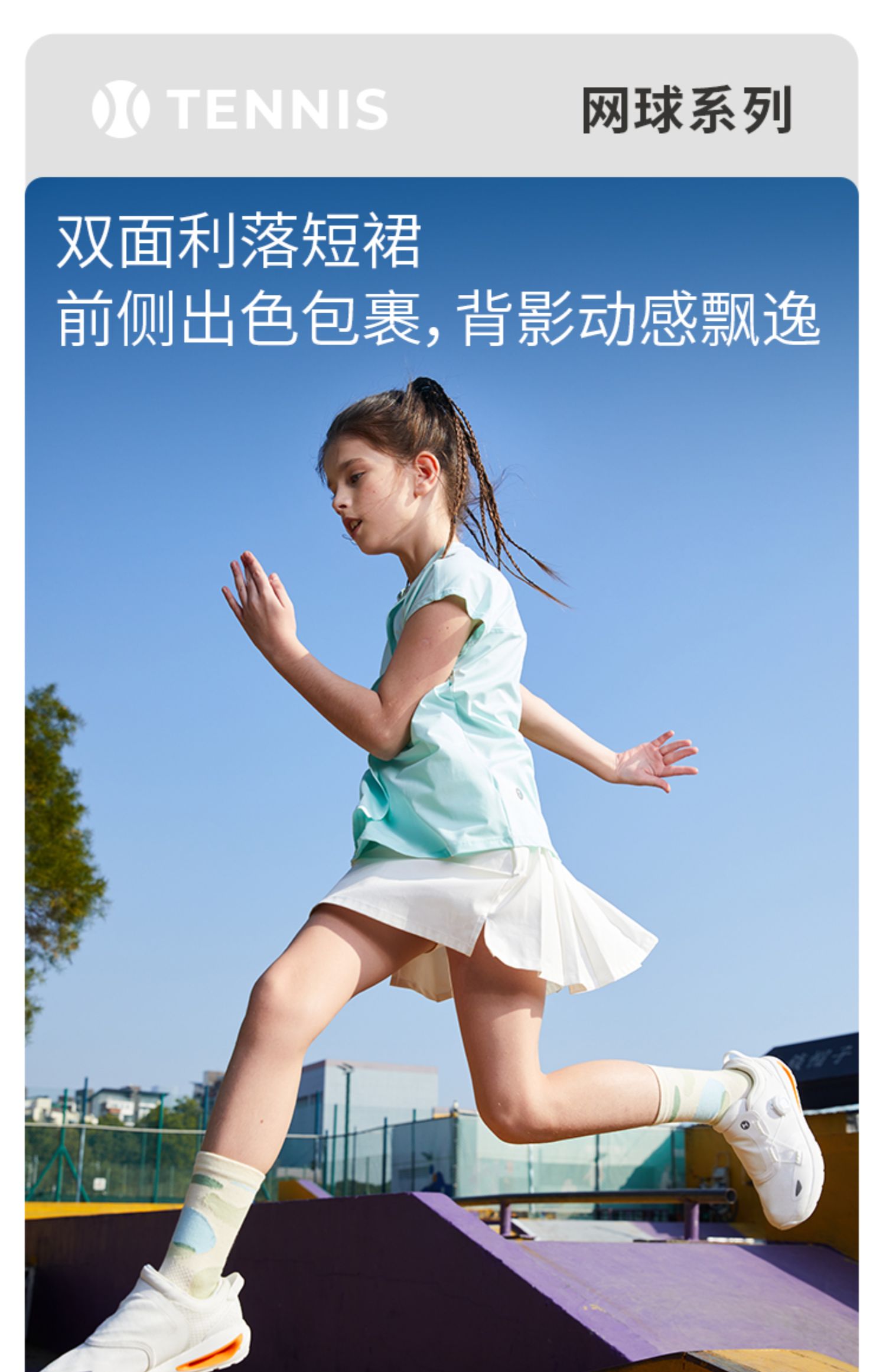 【专属】网球系列moodytiger女童短裙2023夏新款防走光百褶运动半身裙M32211803