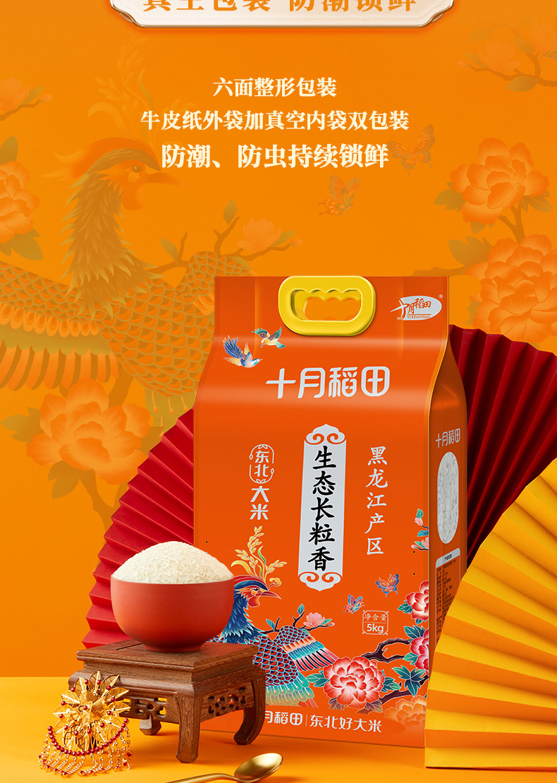 十月稻田 生态长粒香米5kg 口感顺滑 粒粒分明