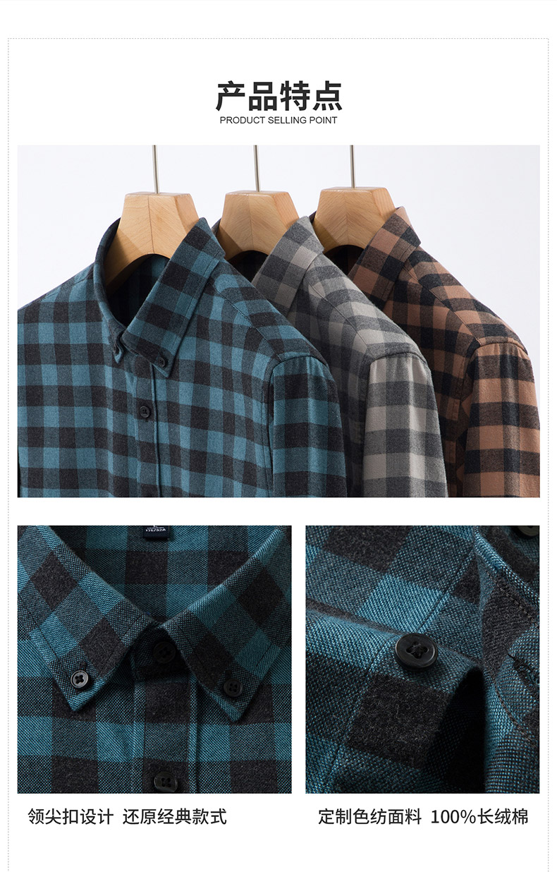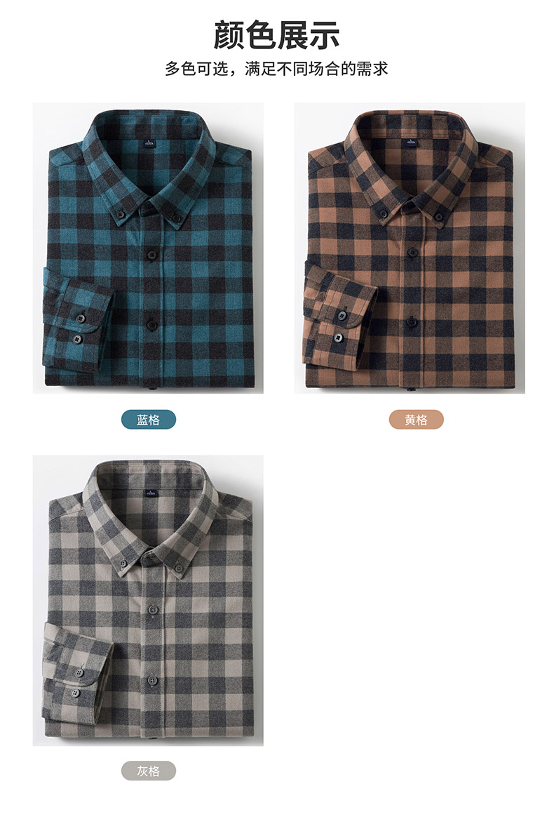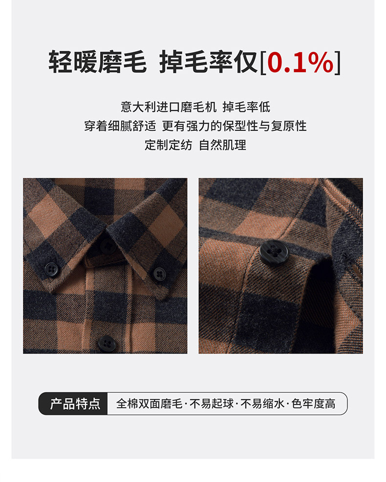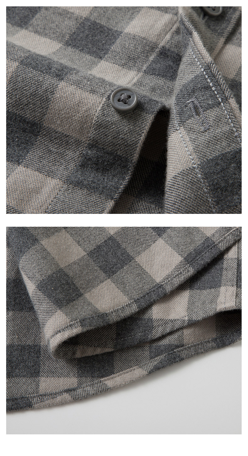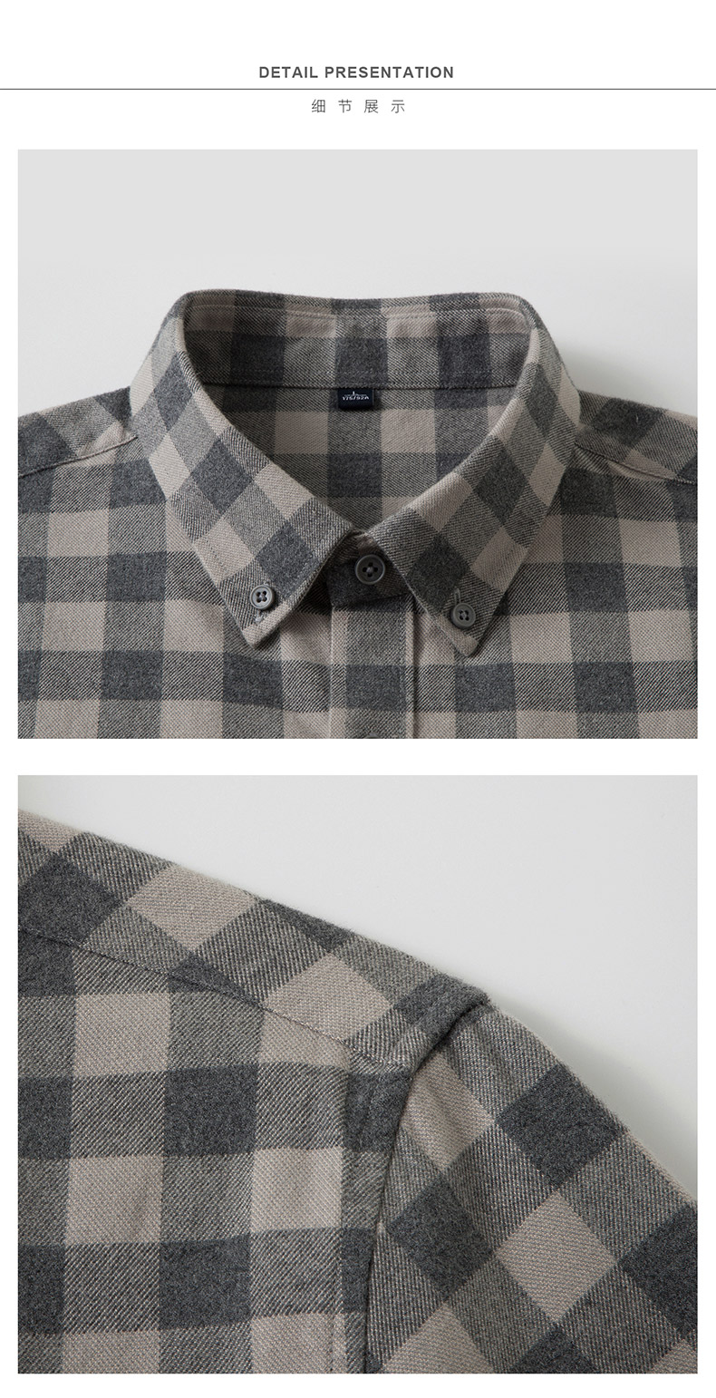 【全棉】罗蒙秋冬格子长袖衬衫男士纯棉厚款舒适亲肤百搭休闲男士长袖衬衣