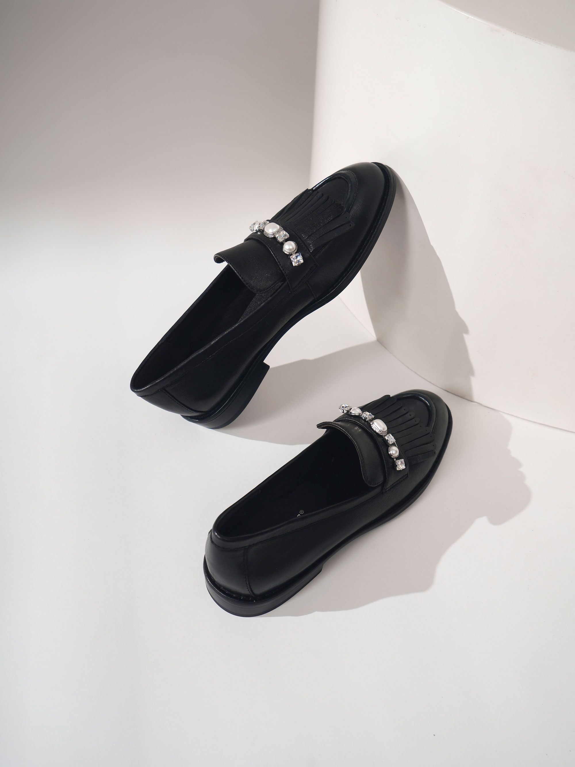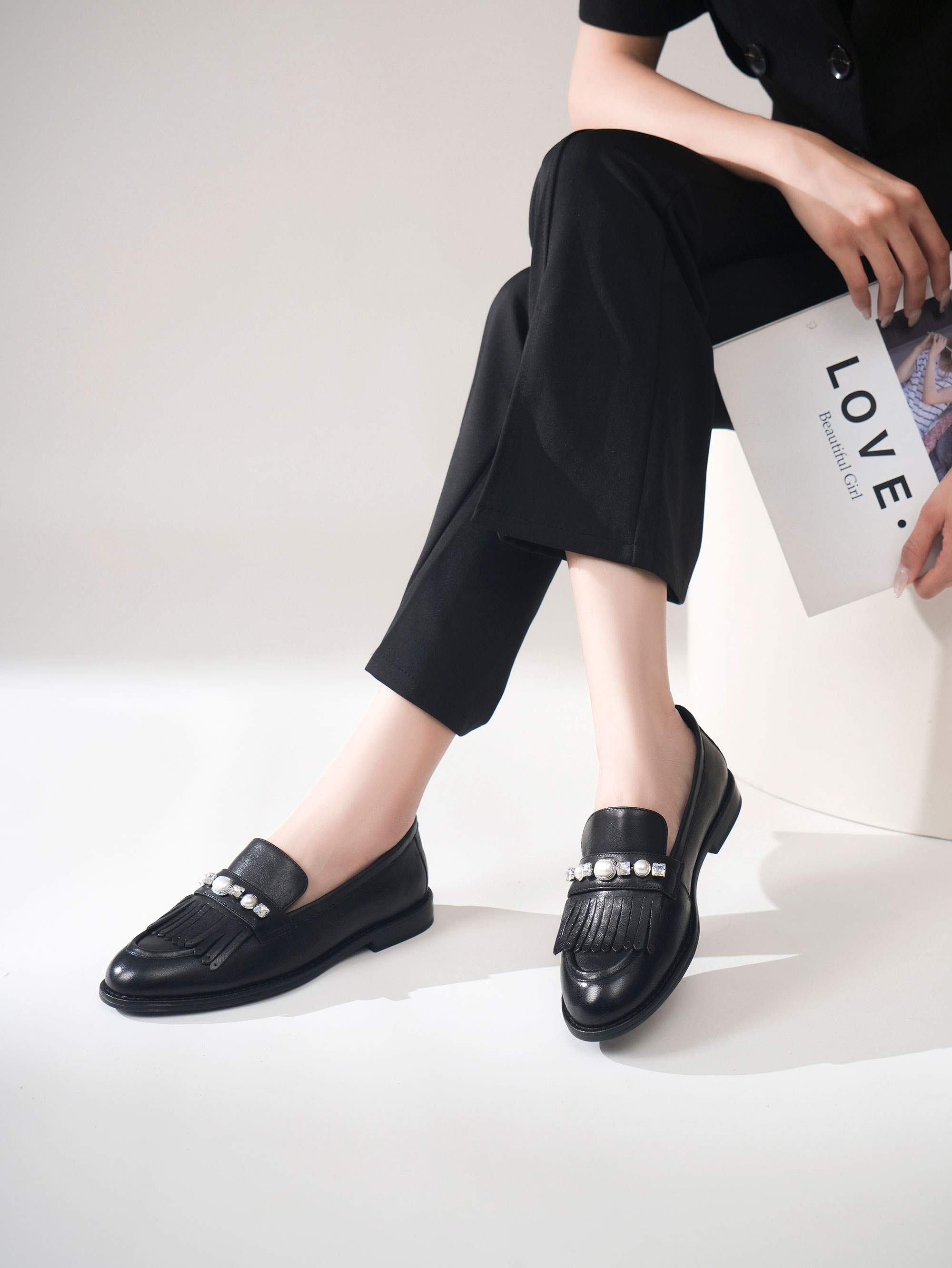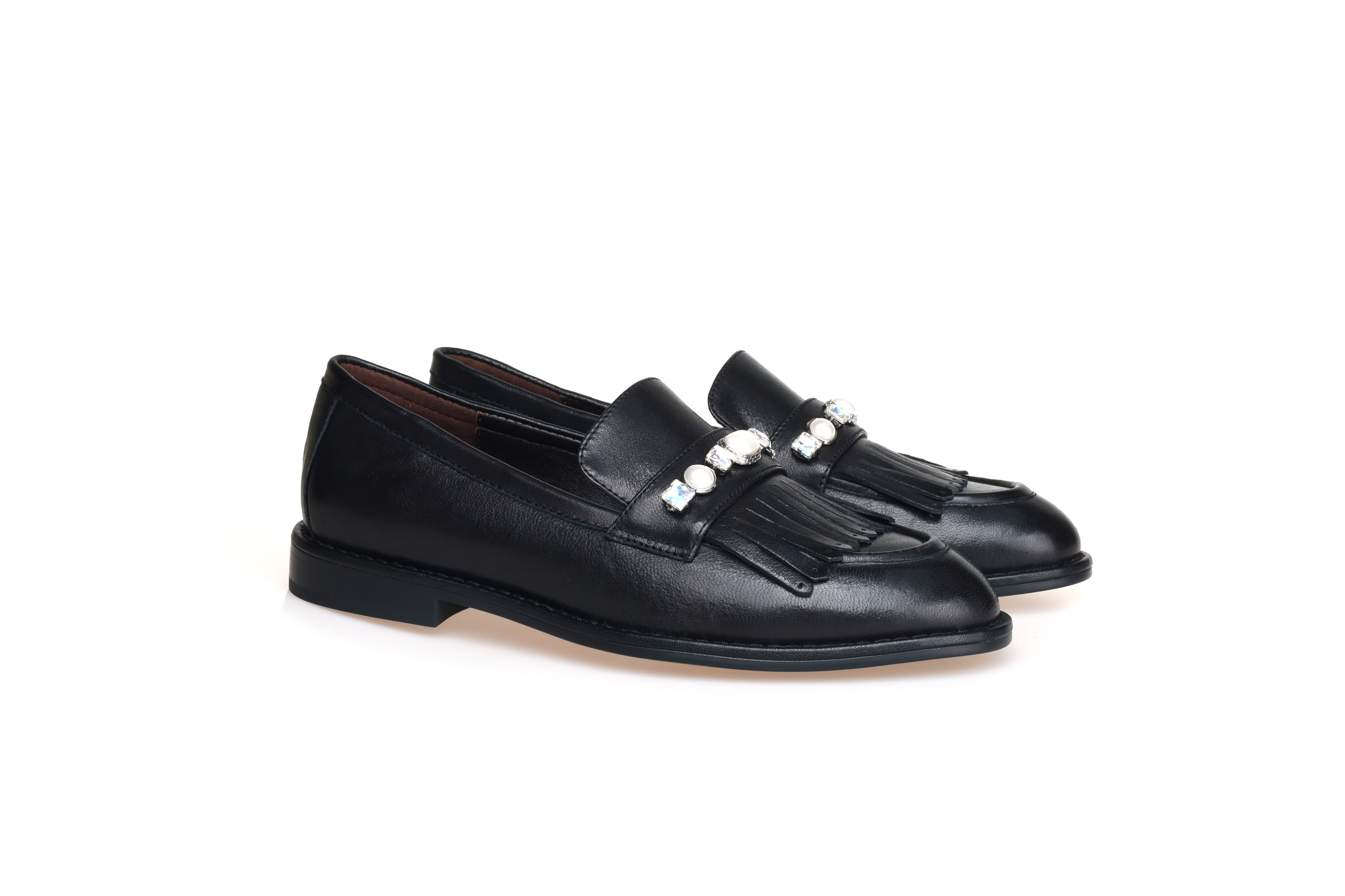 豪麟名鞋迪嘉女鞋乐福鞋羊皮革DJHJA52WS002黑色